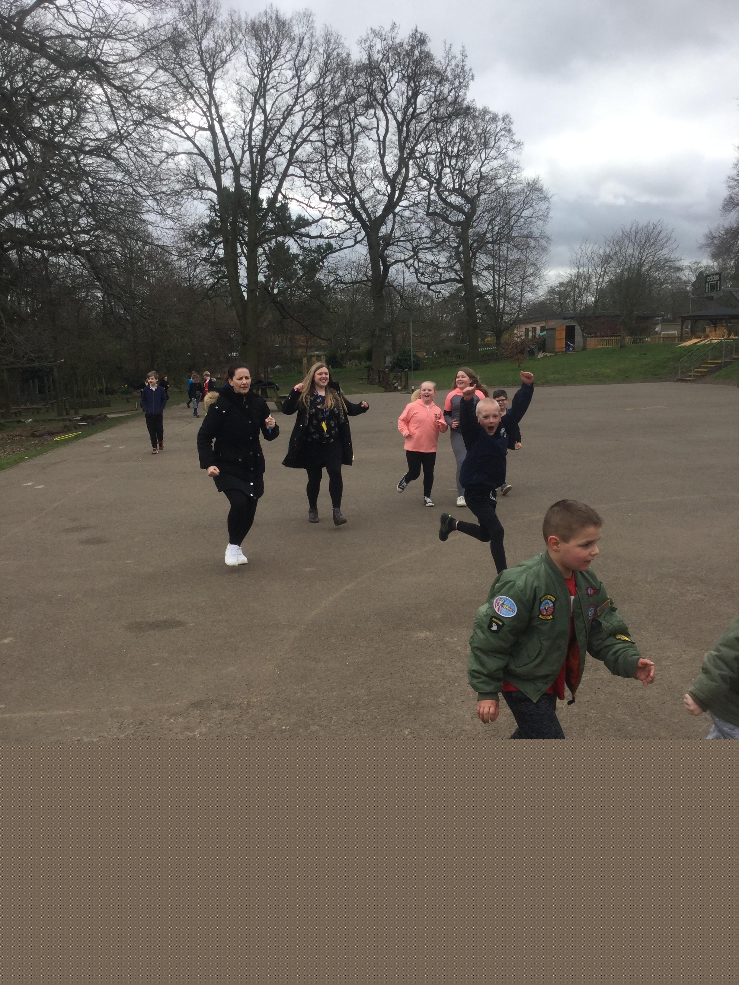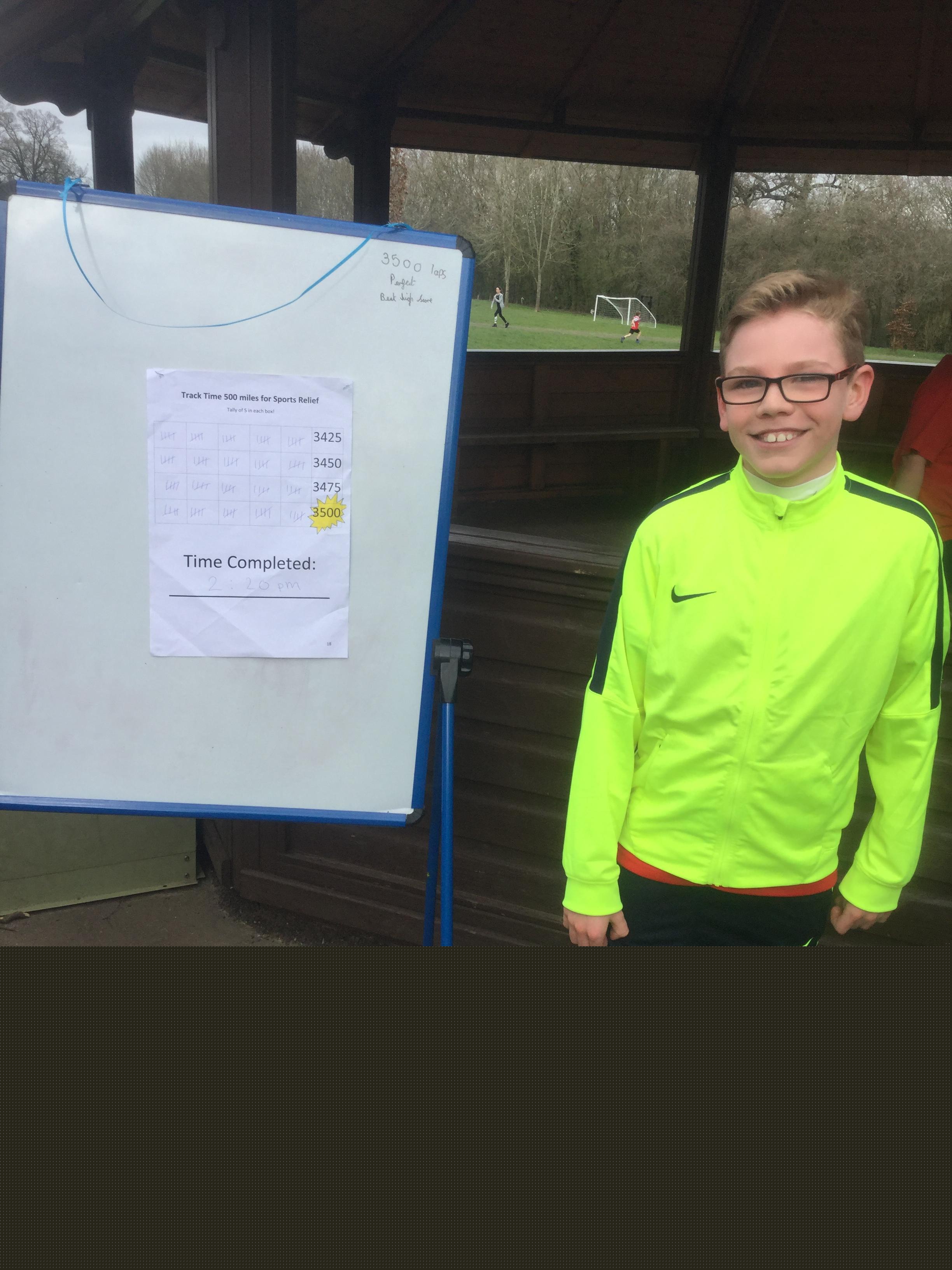 This year we challenged the children, parents and staff in school to run, jog or walk 500 miles (3500 laps of our Daily Mile track).  The track was open from 8am and by 2:20pm we had beaten our target from last year.  Oliver completed the last 3500th lap.  Great Work!