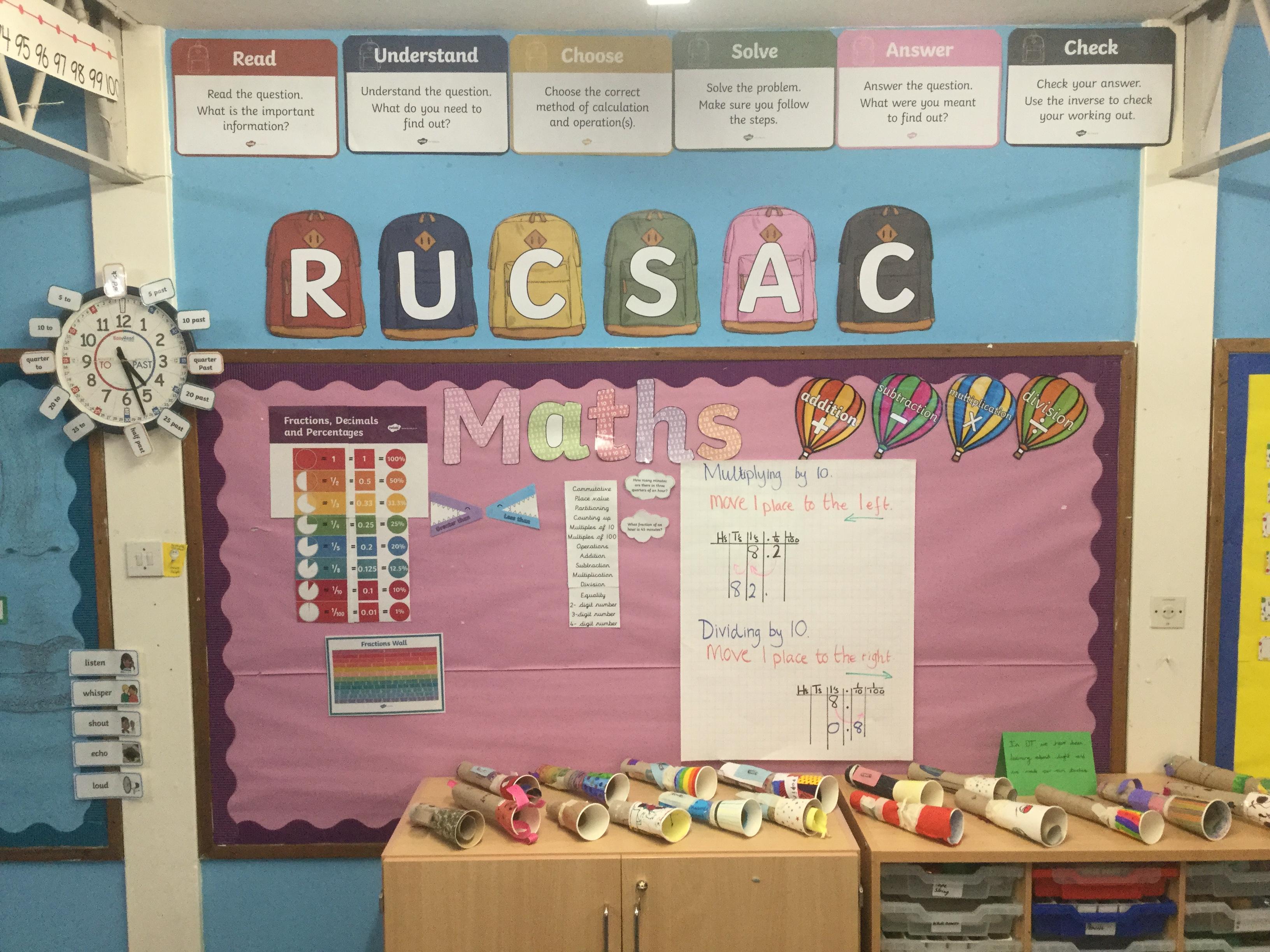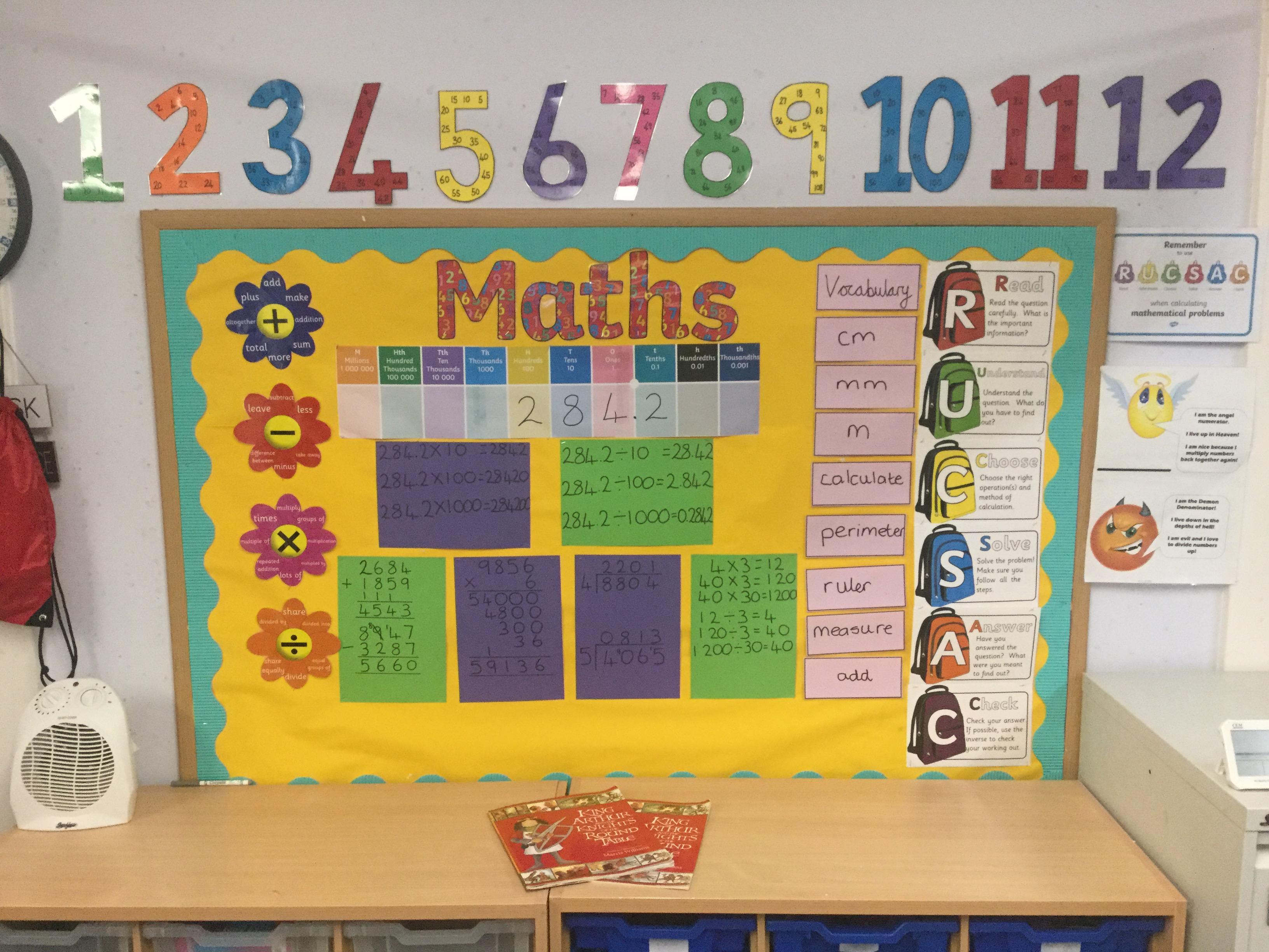 The Year 6 maths 'Working Wall' is full of content to help the pupils become more confident.
