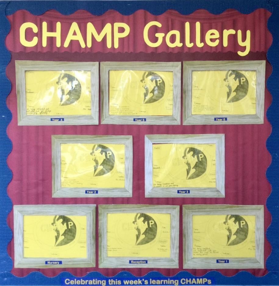 CHAMP is at the core of our school ethos. It has an extremely high profile and is interwoven in all aspects of school life. It has been cohesively built in to lessons, assemblies, displays, communication with parents, daily rewards, physical areas – the list is endless.