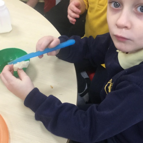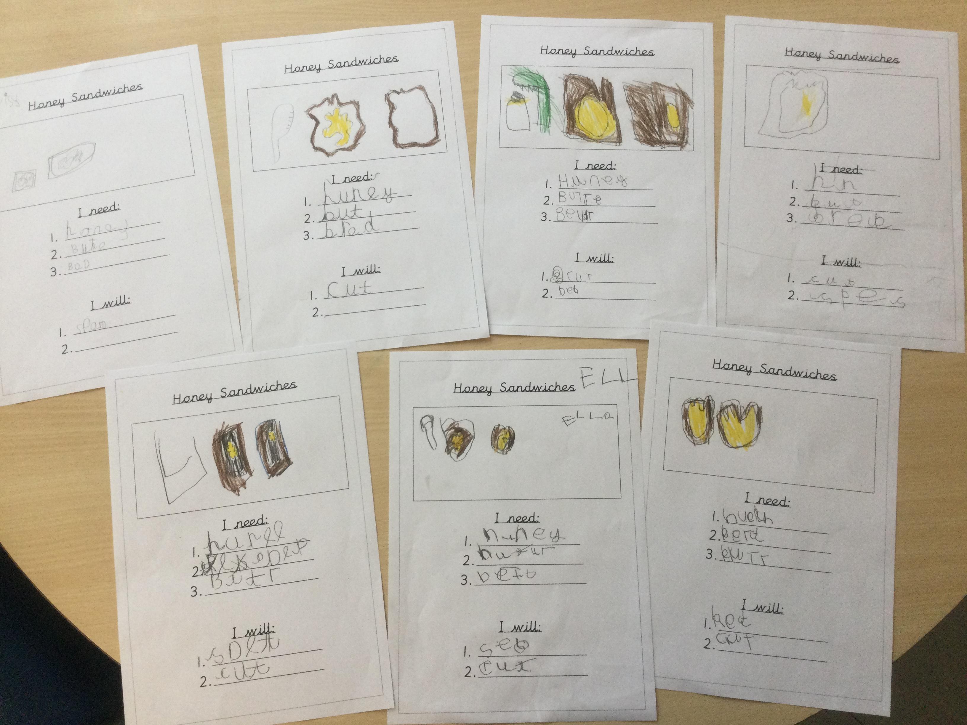In Reception, the pupils wrote instructions about how to make honey sandwiches. They were very attentive!