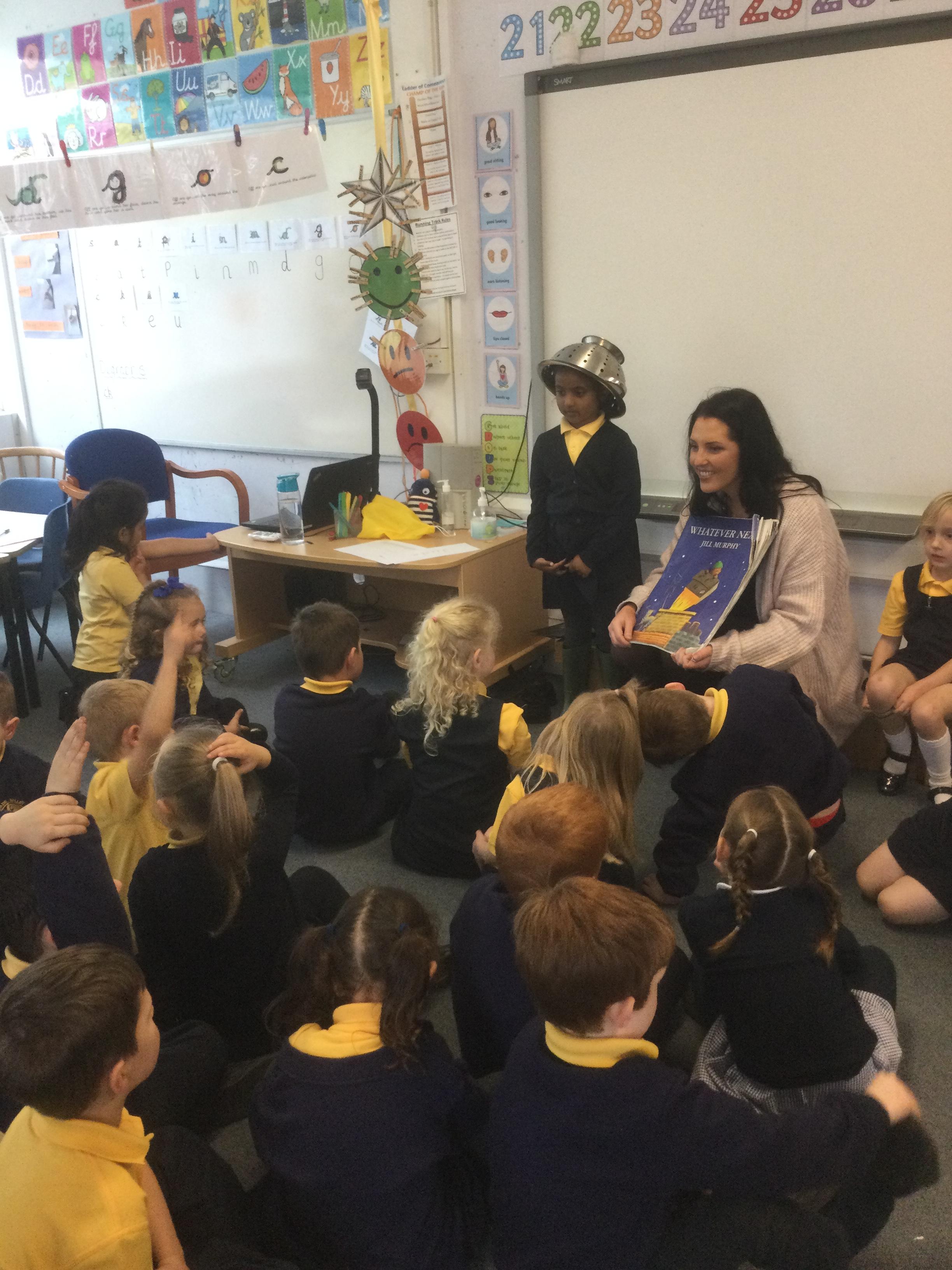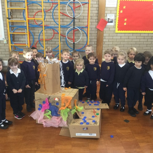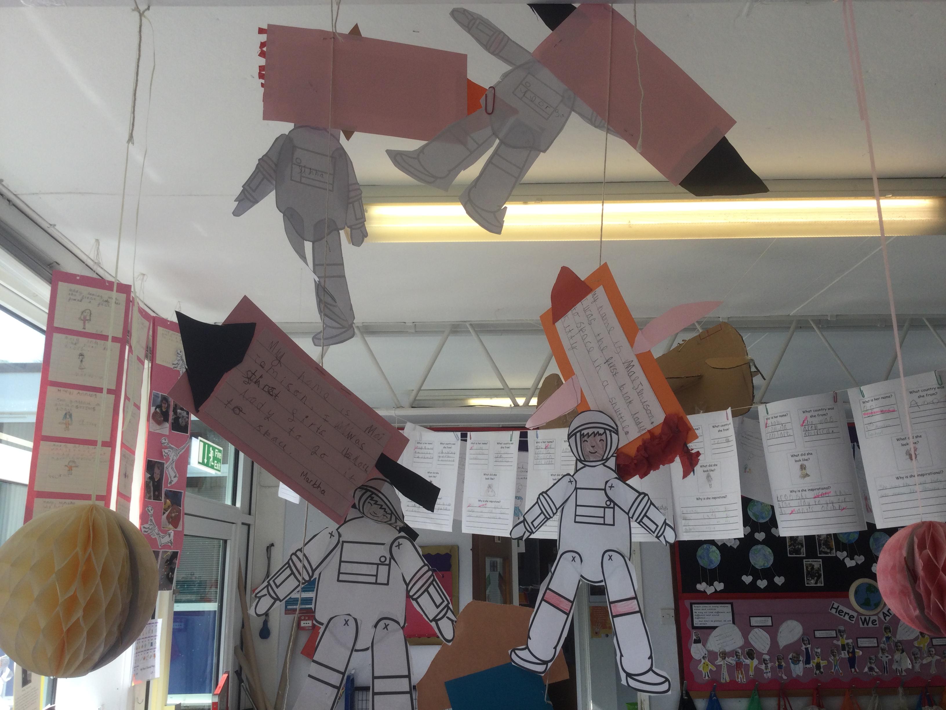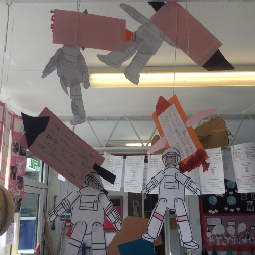 In Reception, during International Space Week, the pupils read the book ‘Whatever Next’ by Jill Murphy. They enjoyed role playing as Baby Bear, using wellington boots as their ‘space shoes’, a colander for a ‘space helmet’ and a cardboard box as a ‘rocket’.