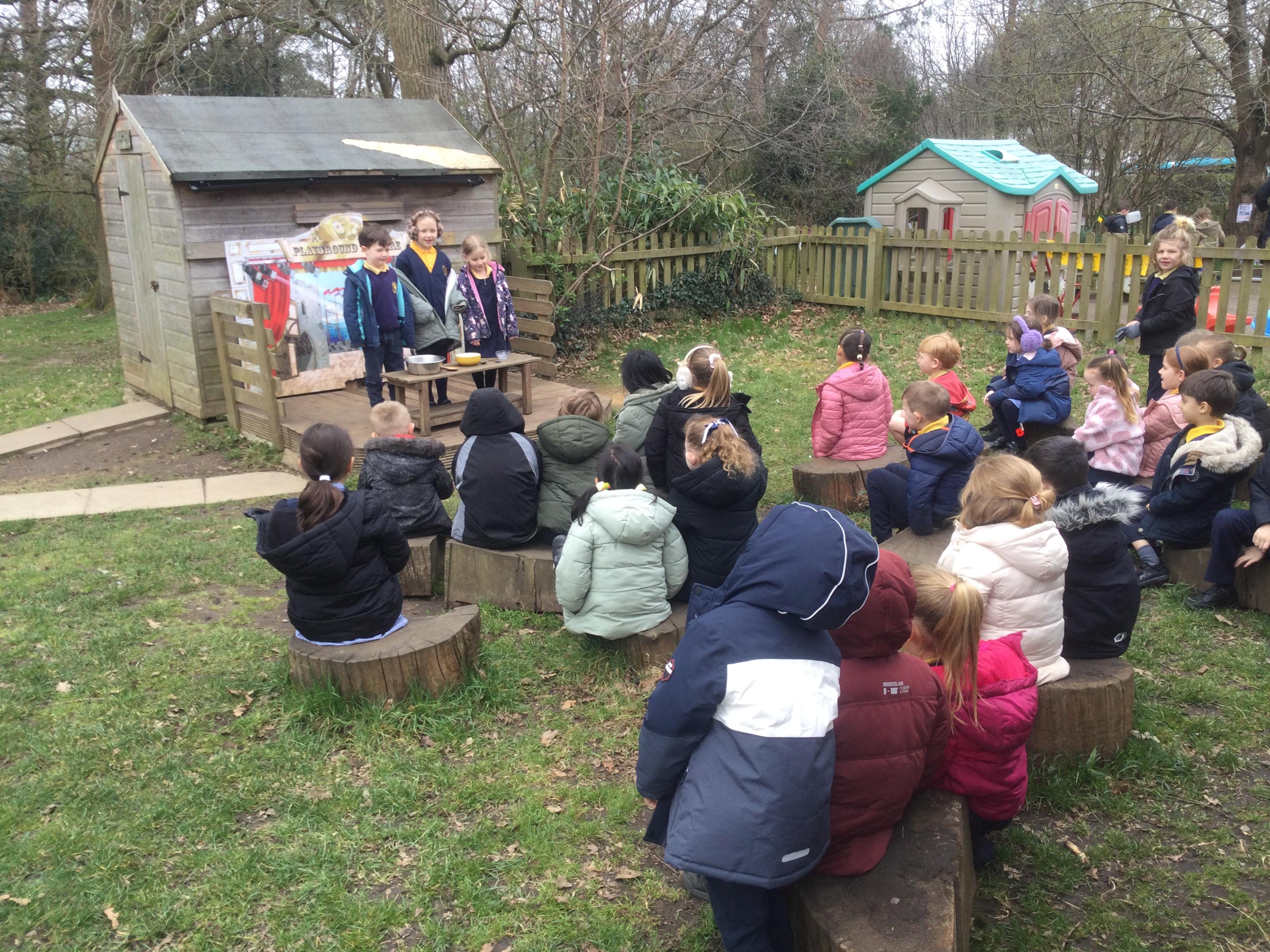 The pupils thoroughly enjoyed watching a special performance of Goldilocks and the Three Bears by the Chaplins Panto company.