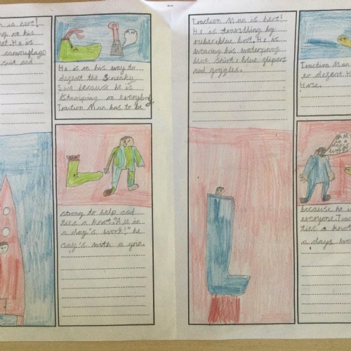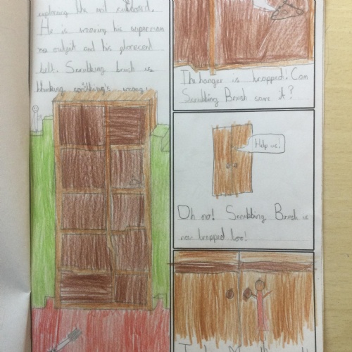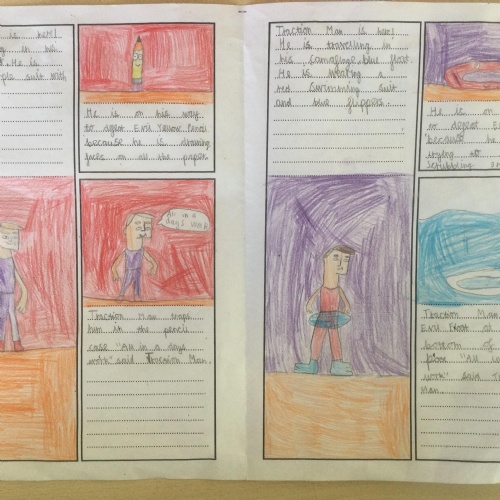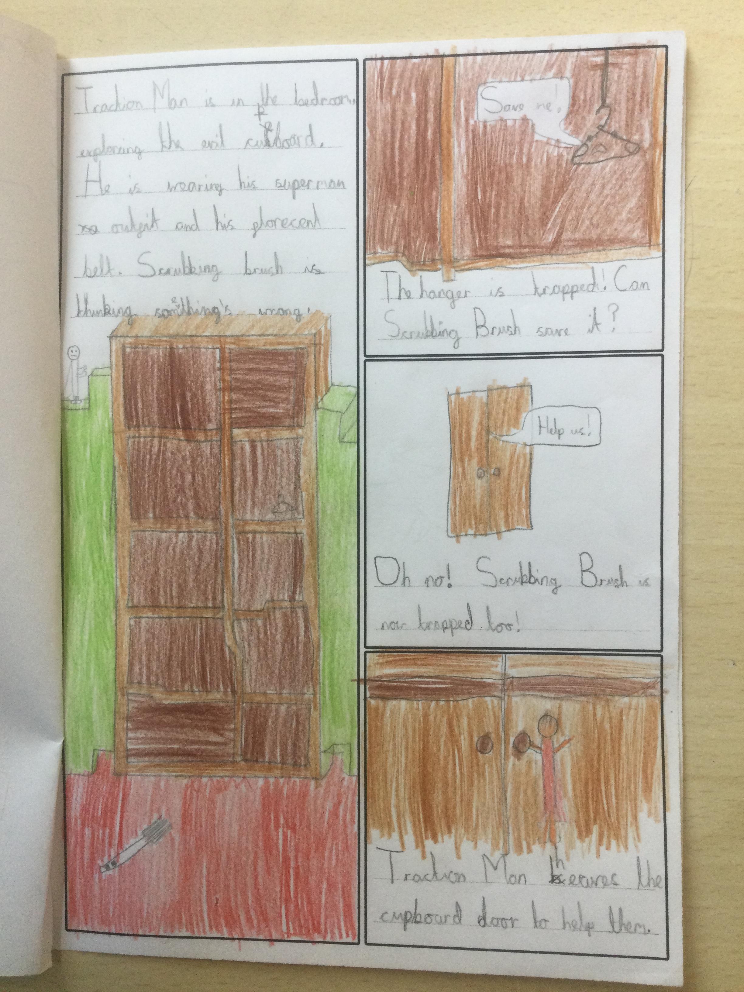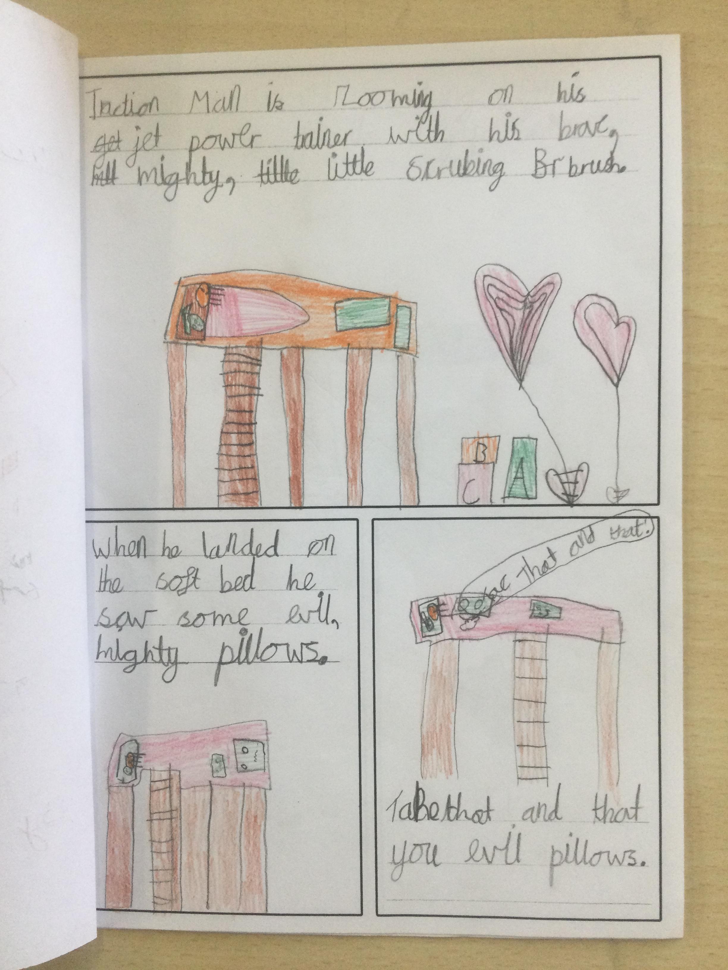 Using inspiration from the book 'Traction Man', Year 2 created their own Traction Man adventure books. They tried to use lots of description to make their stories engaging for the reader.
