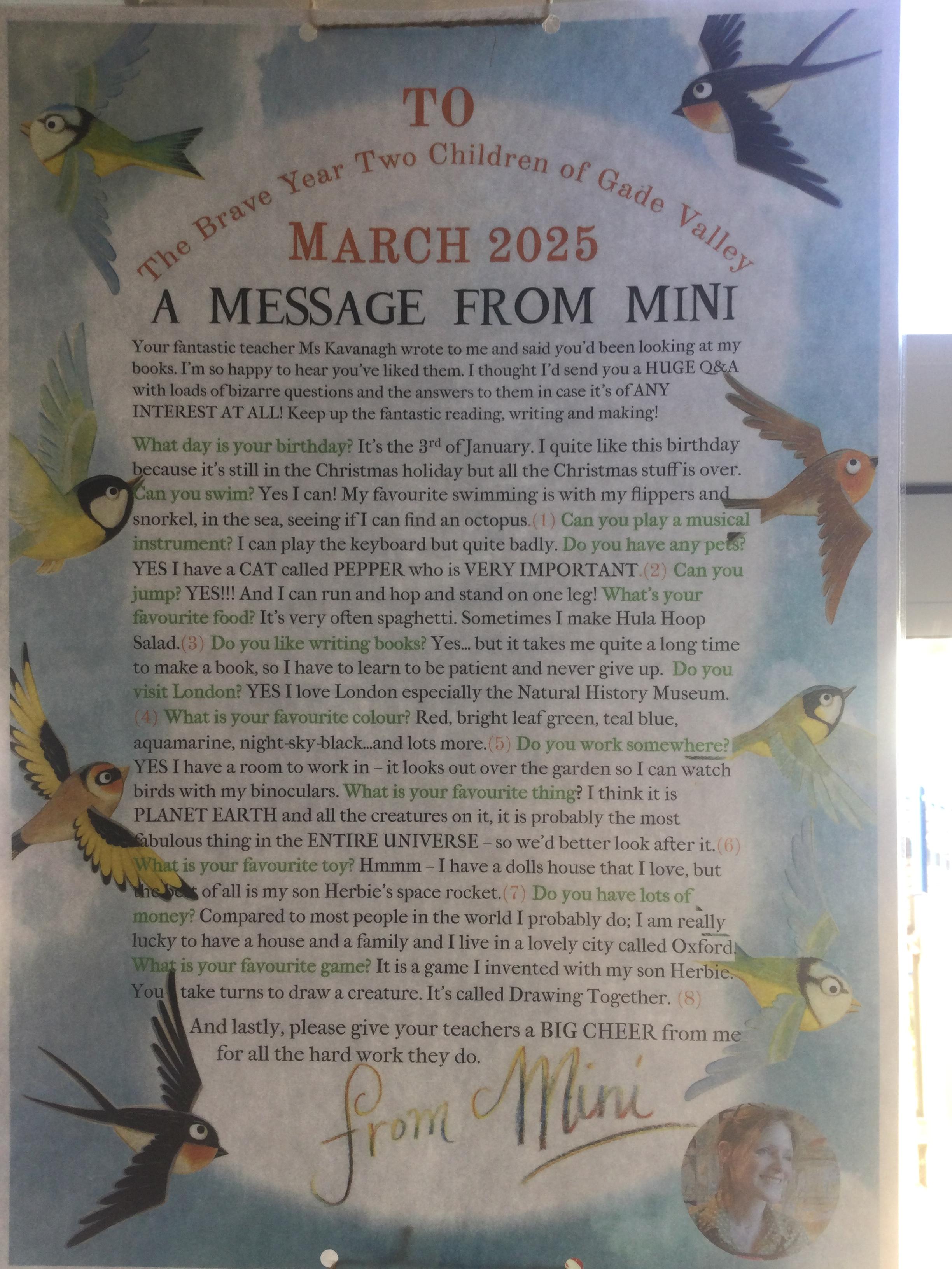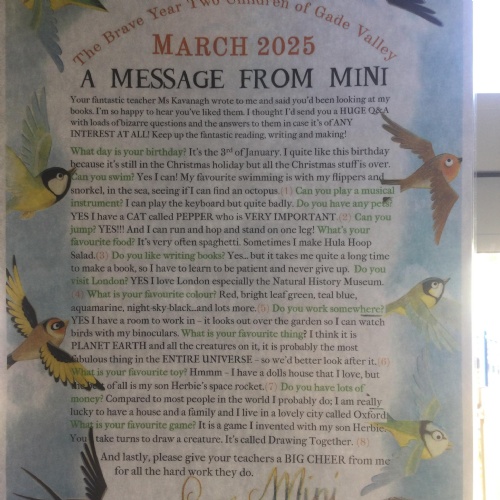 In Year 2 the pupils have written their own Traction Man stories inspired by Mini Grey. They even wrote to her and received a personalised letter back!