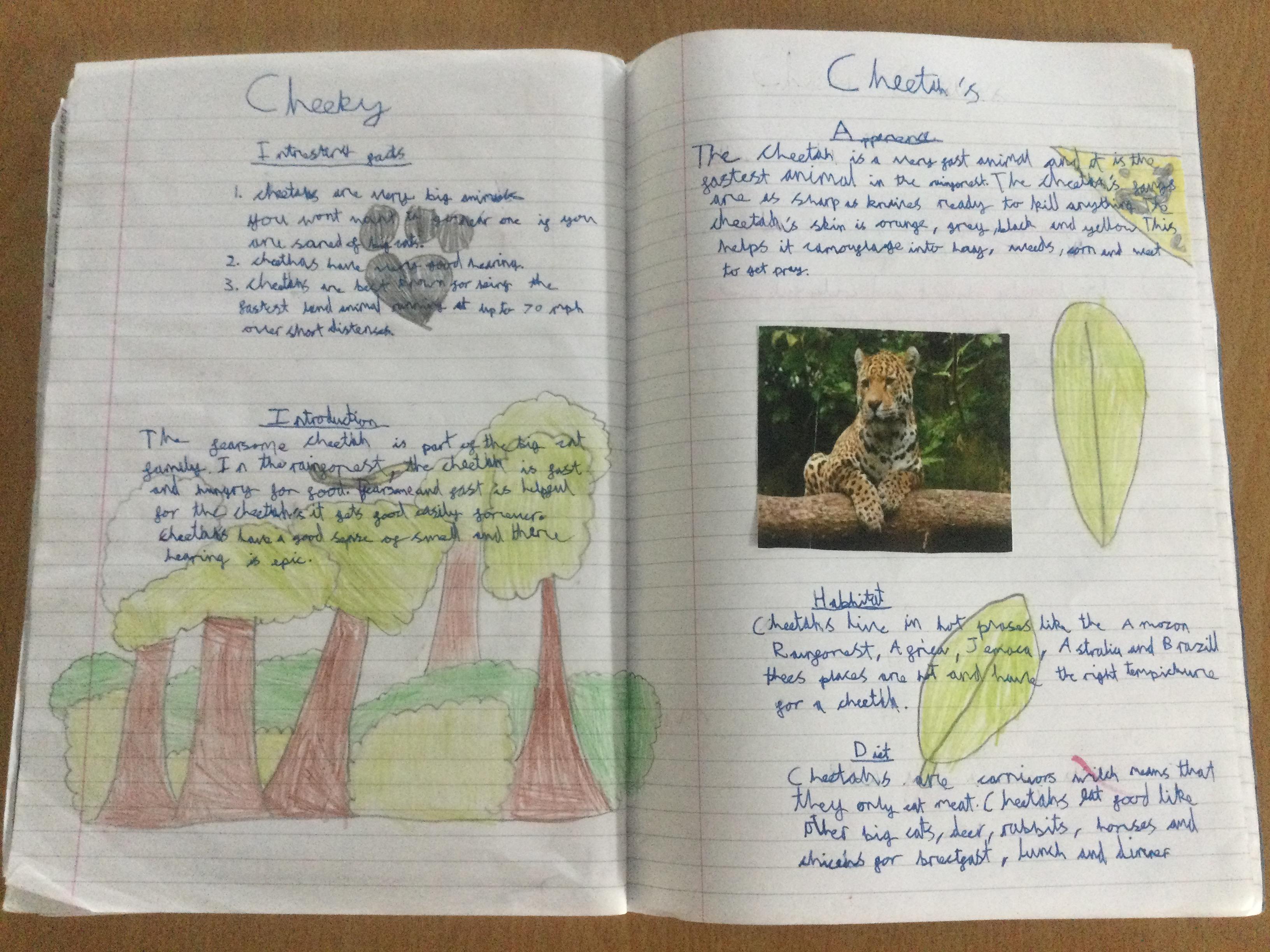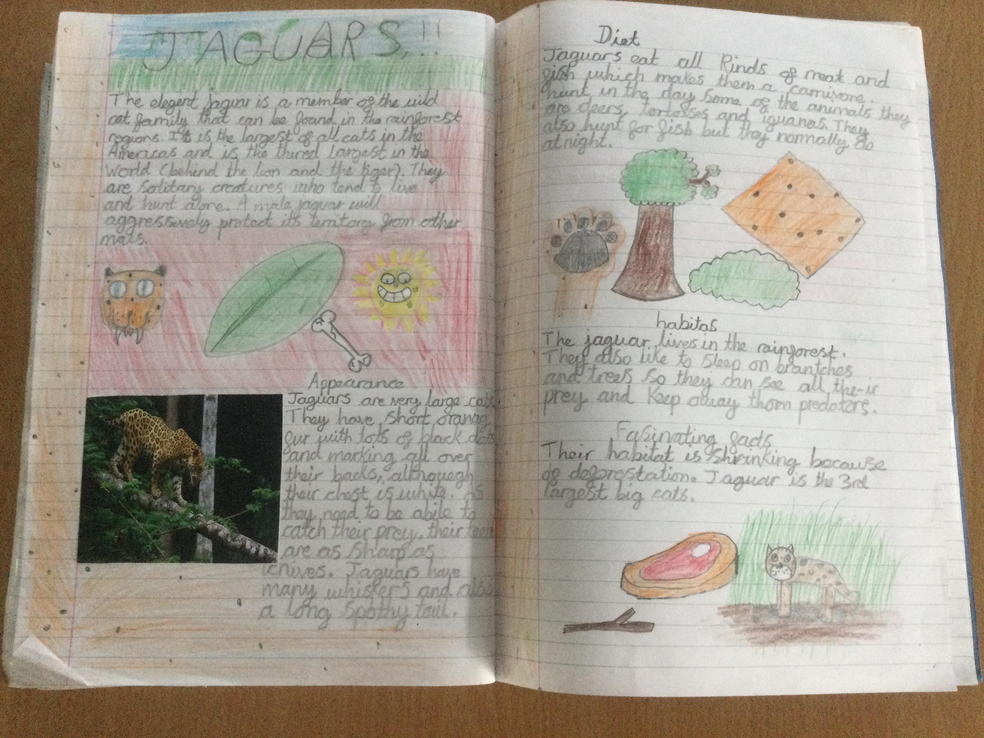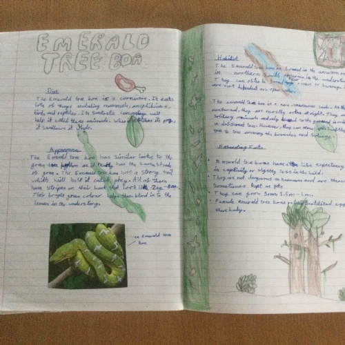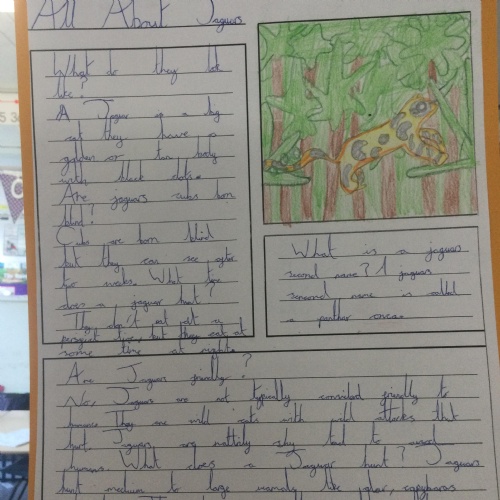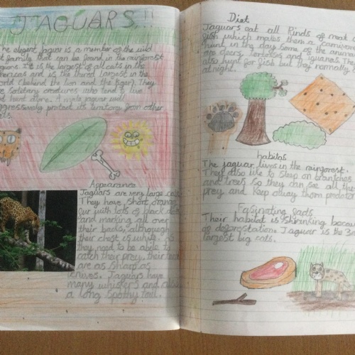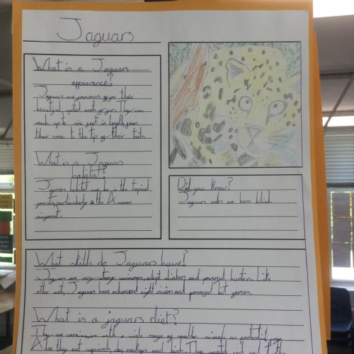 In Year 3 the pupils have been writing non chronological reports about animals in the rainforest. They have linked this to their Geography learning.