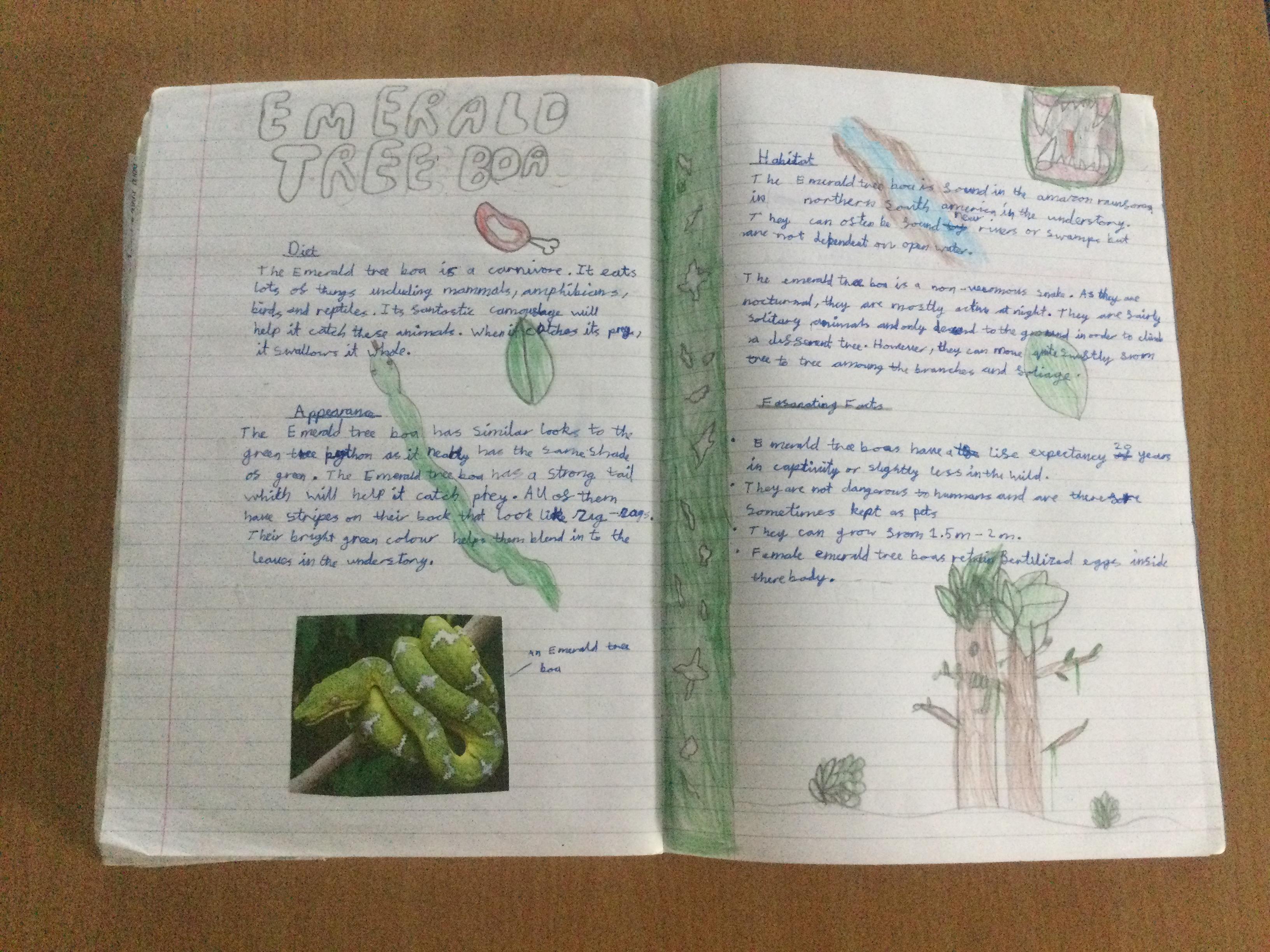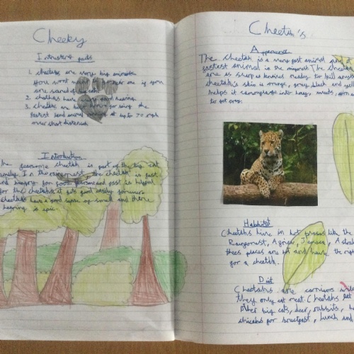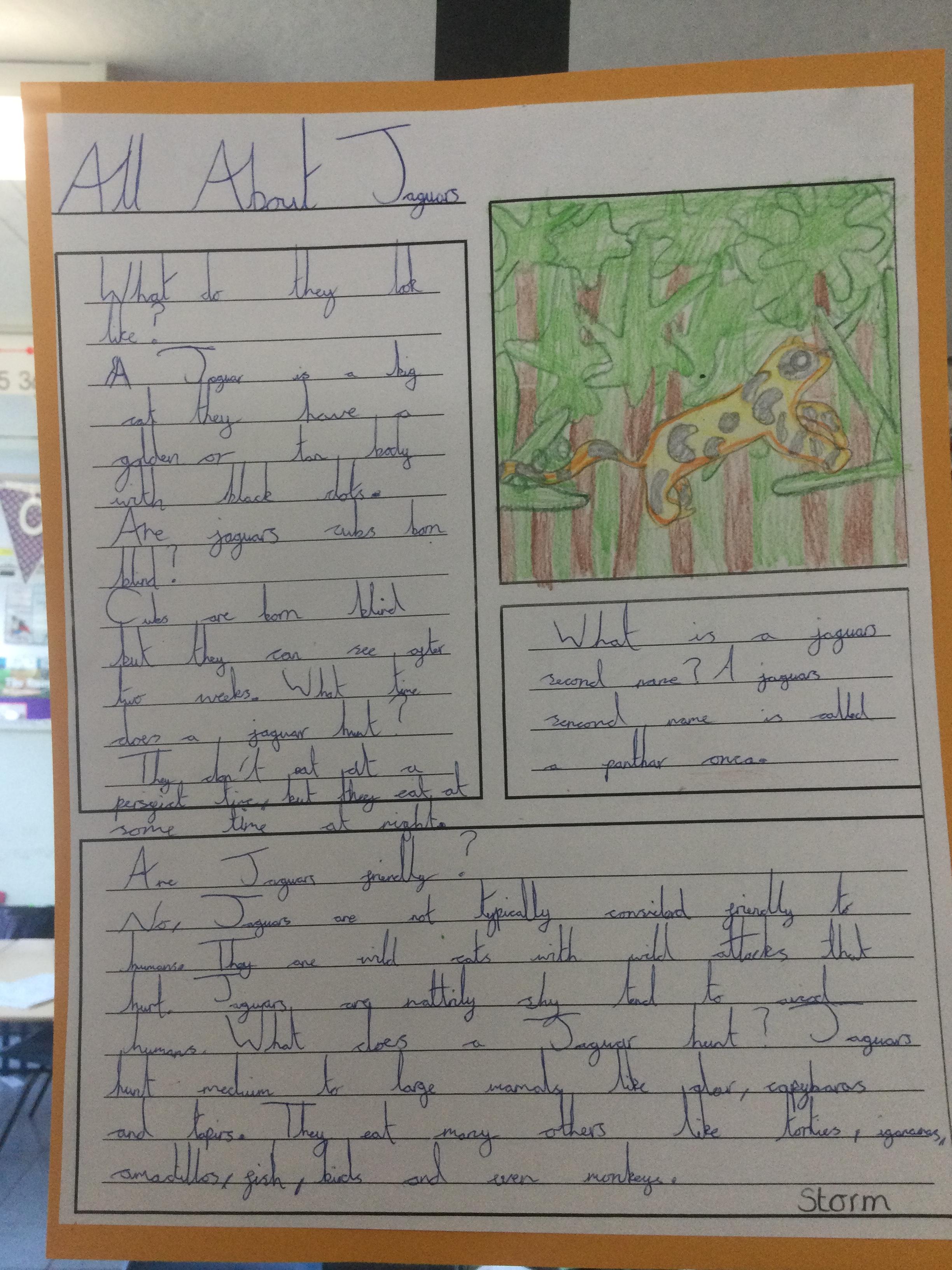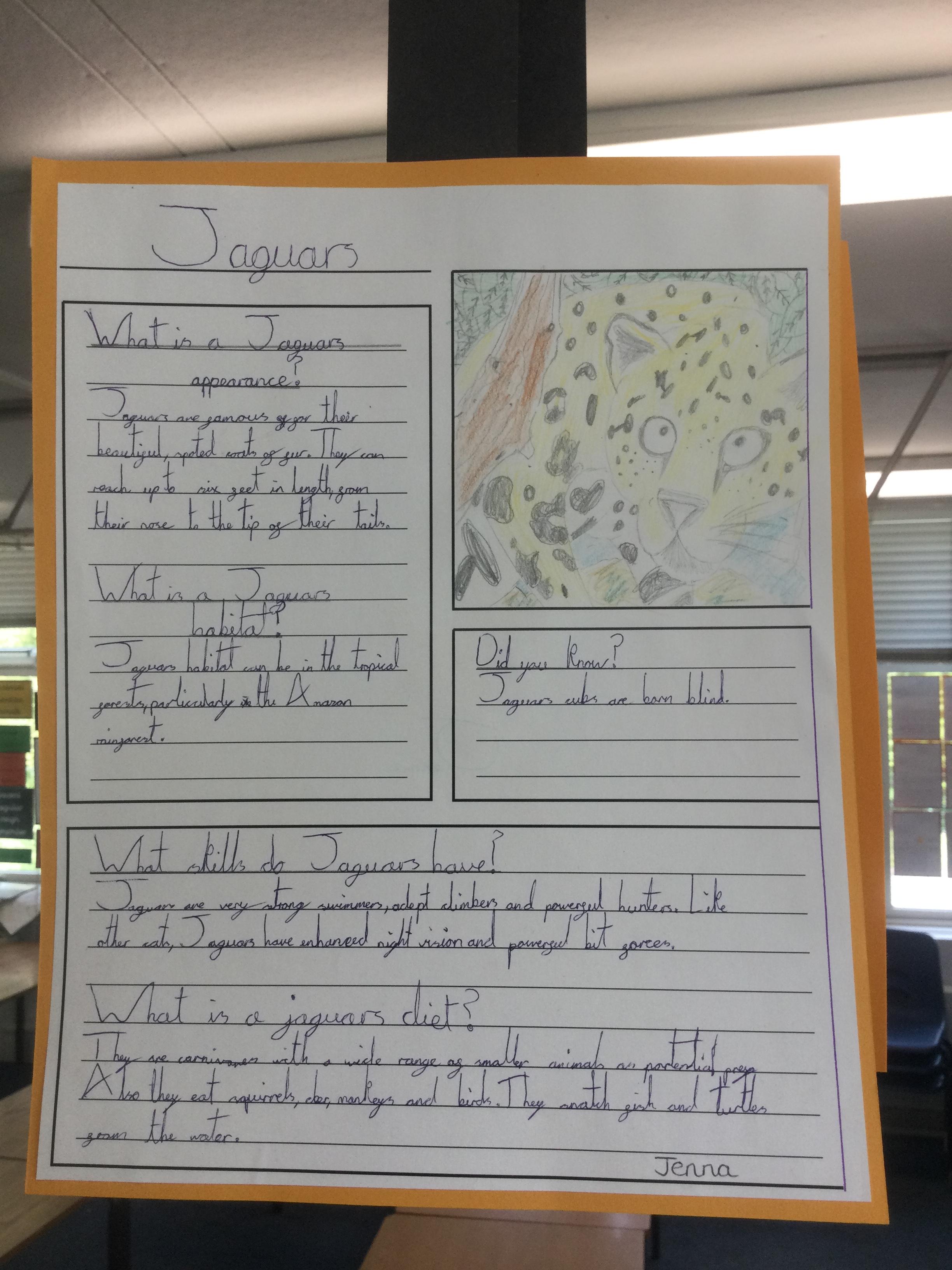 In Year 3 the pupils have been writing non chronological reports about animals in the rainforest. They have linked this to their Geography learning.