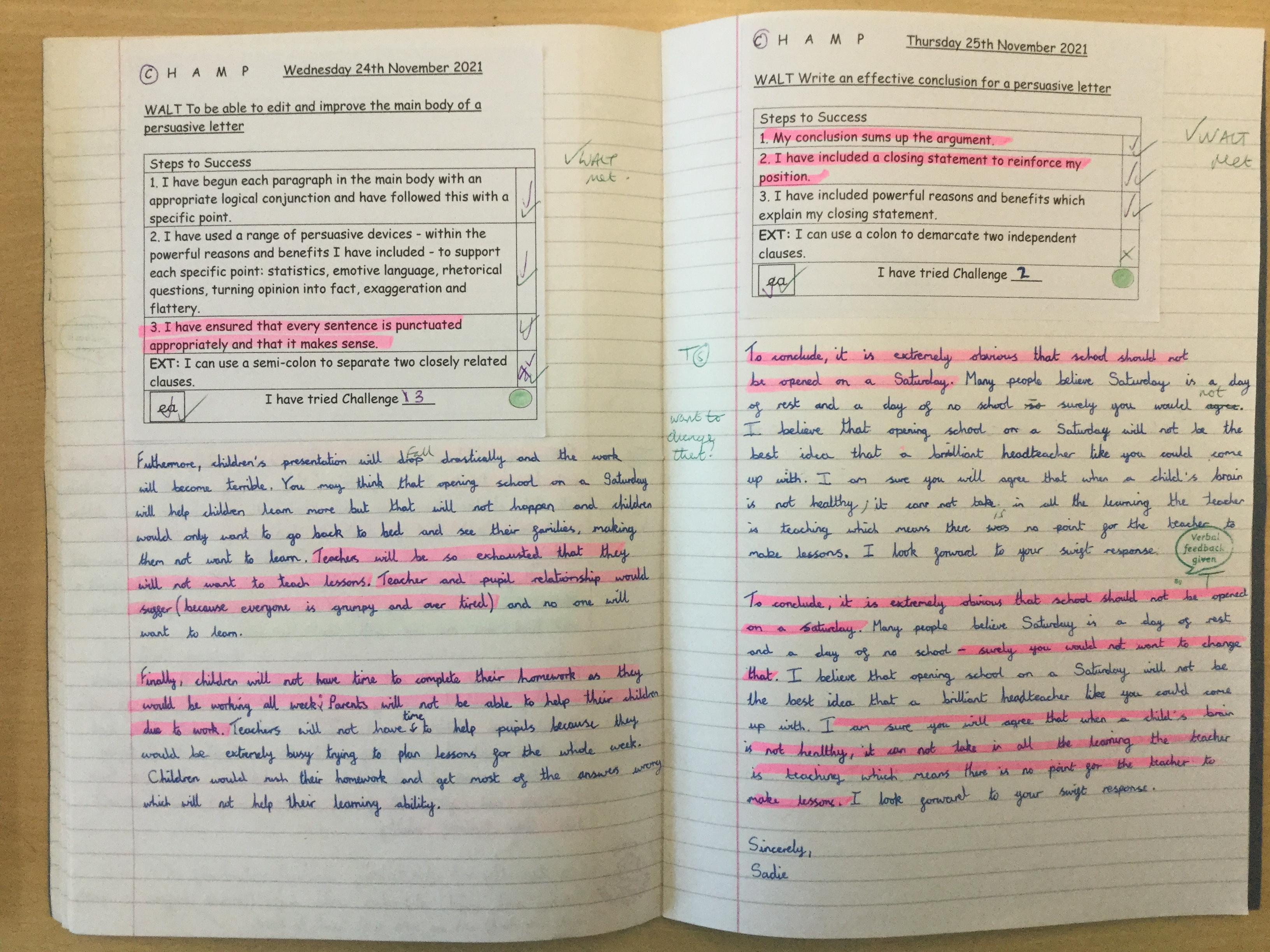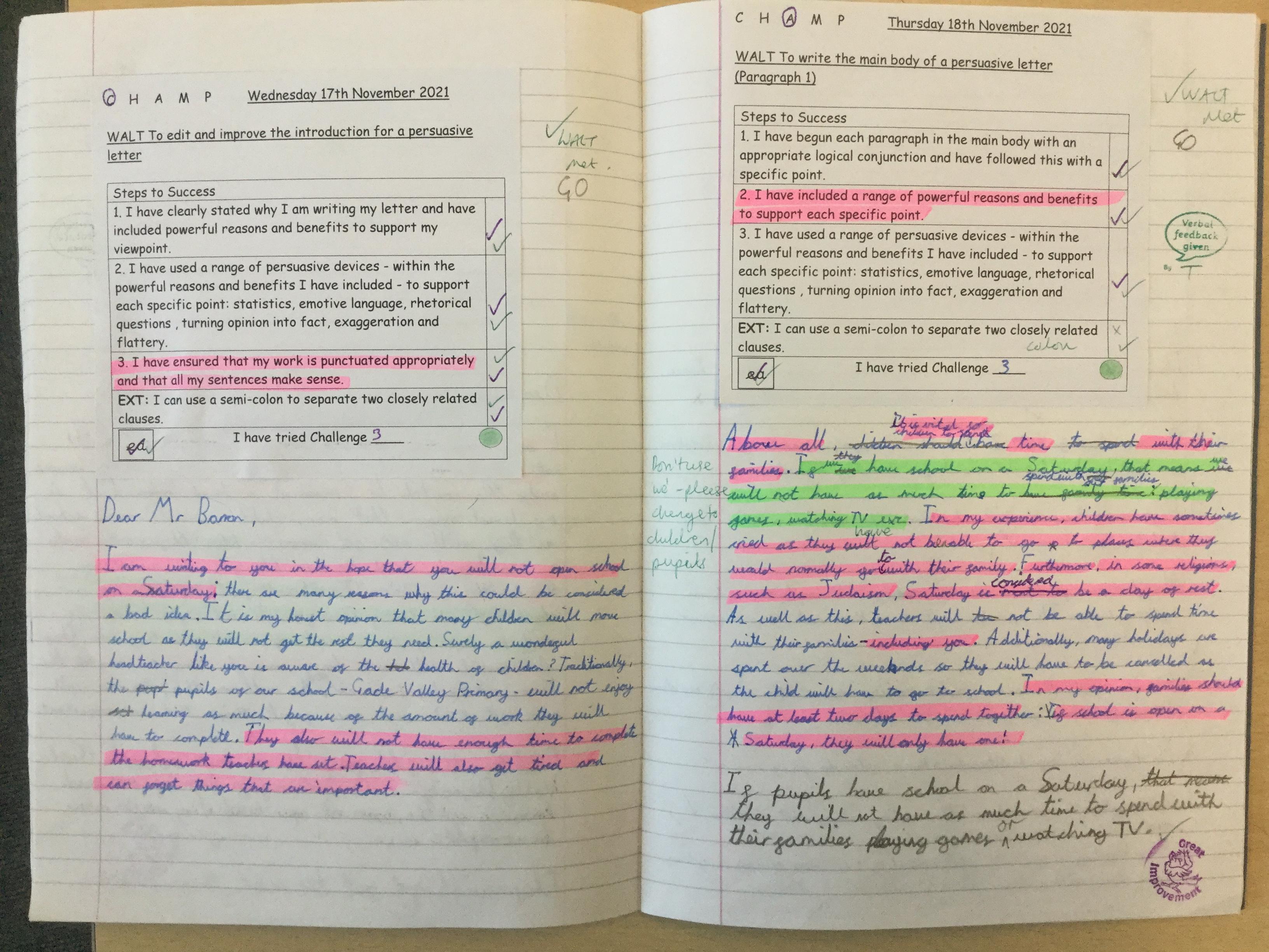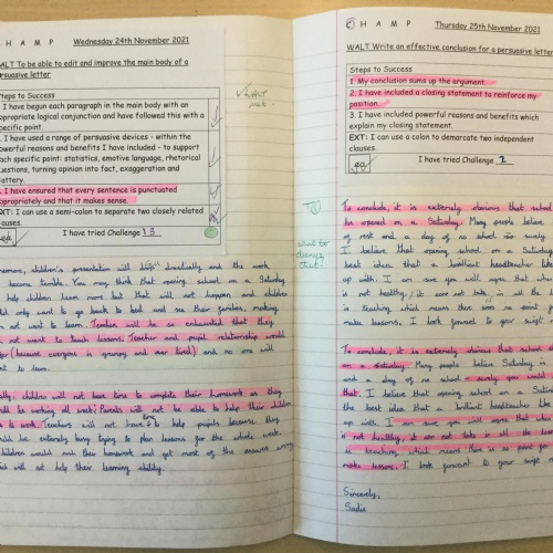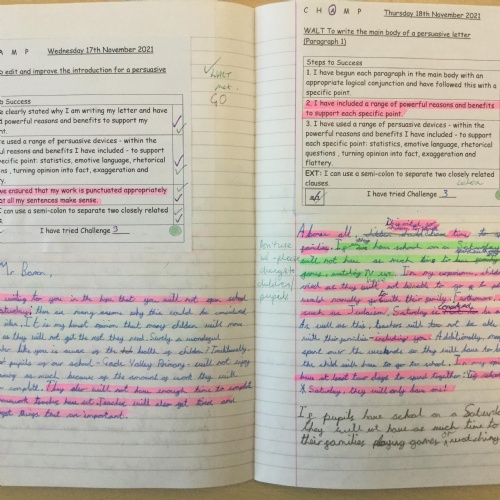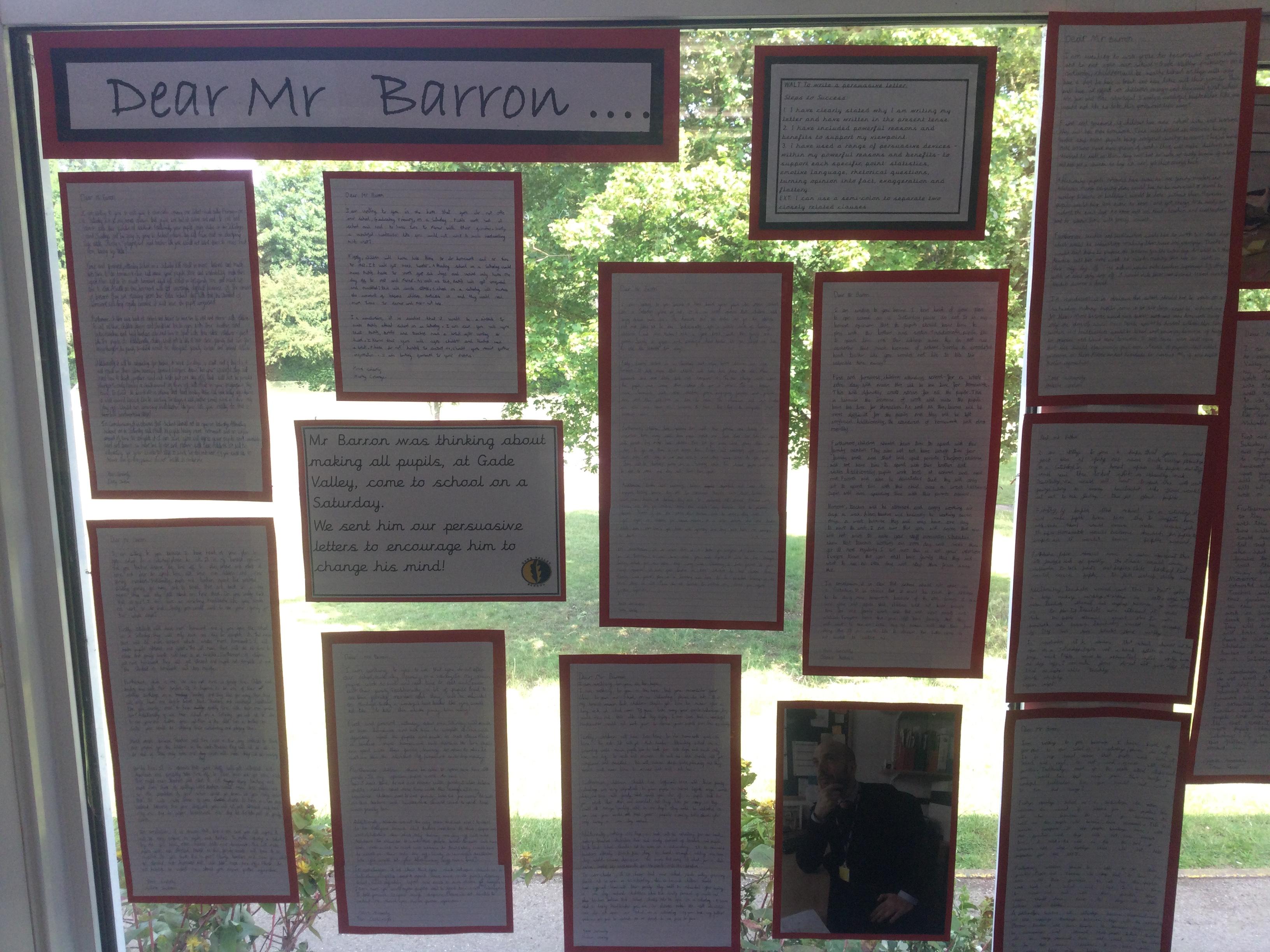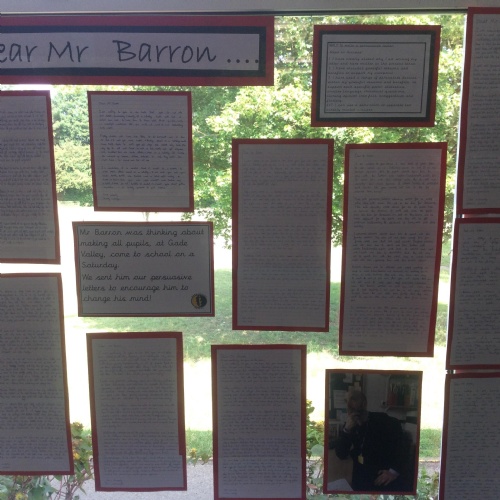In  Year 6 the pupils wrote persuasive letters to Mr Barron not to open school on a Saturday.