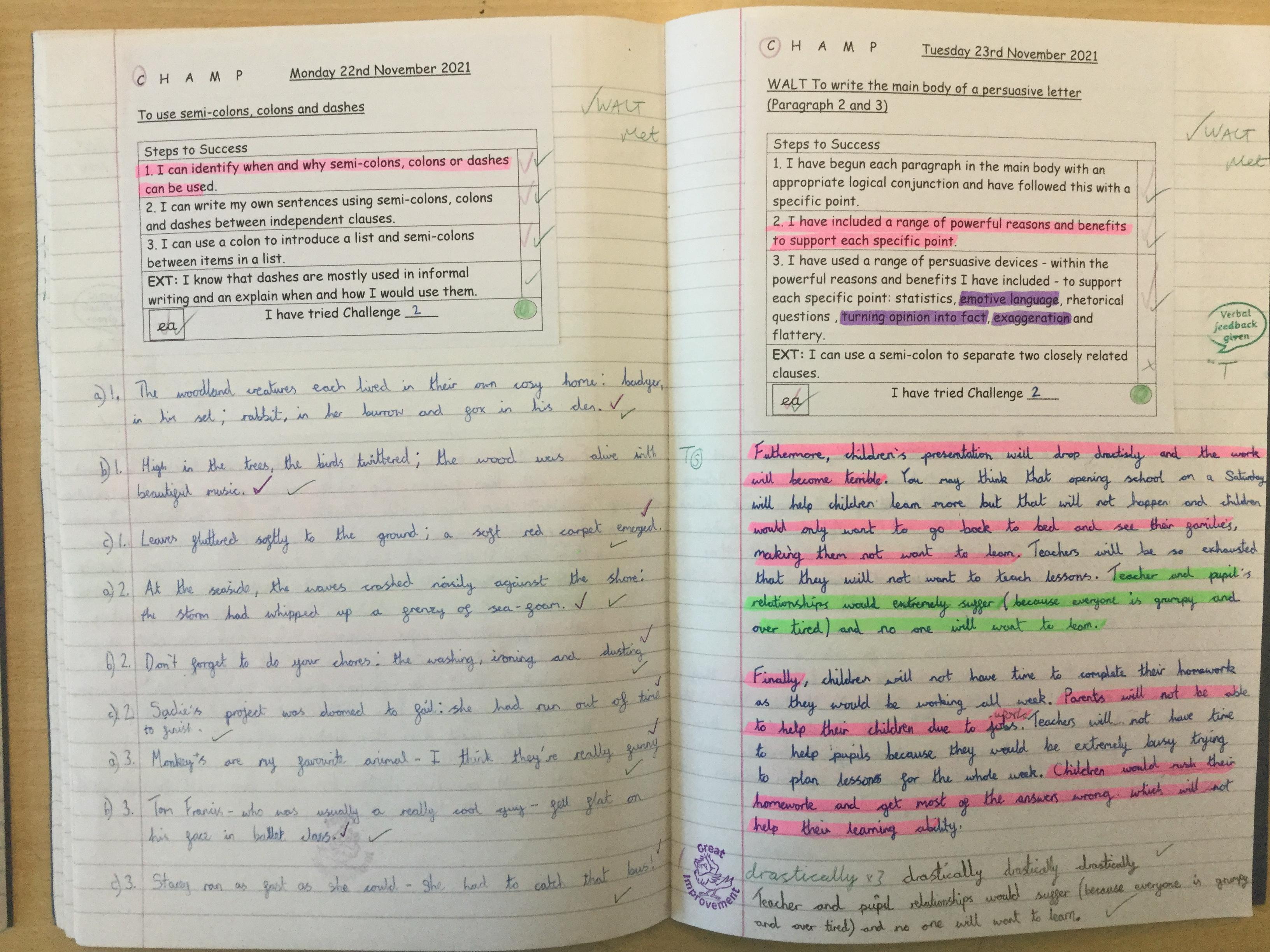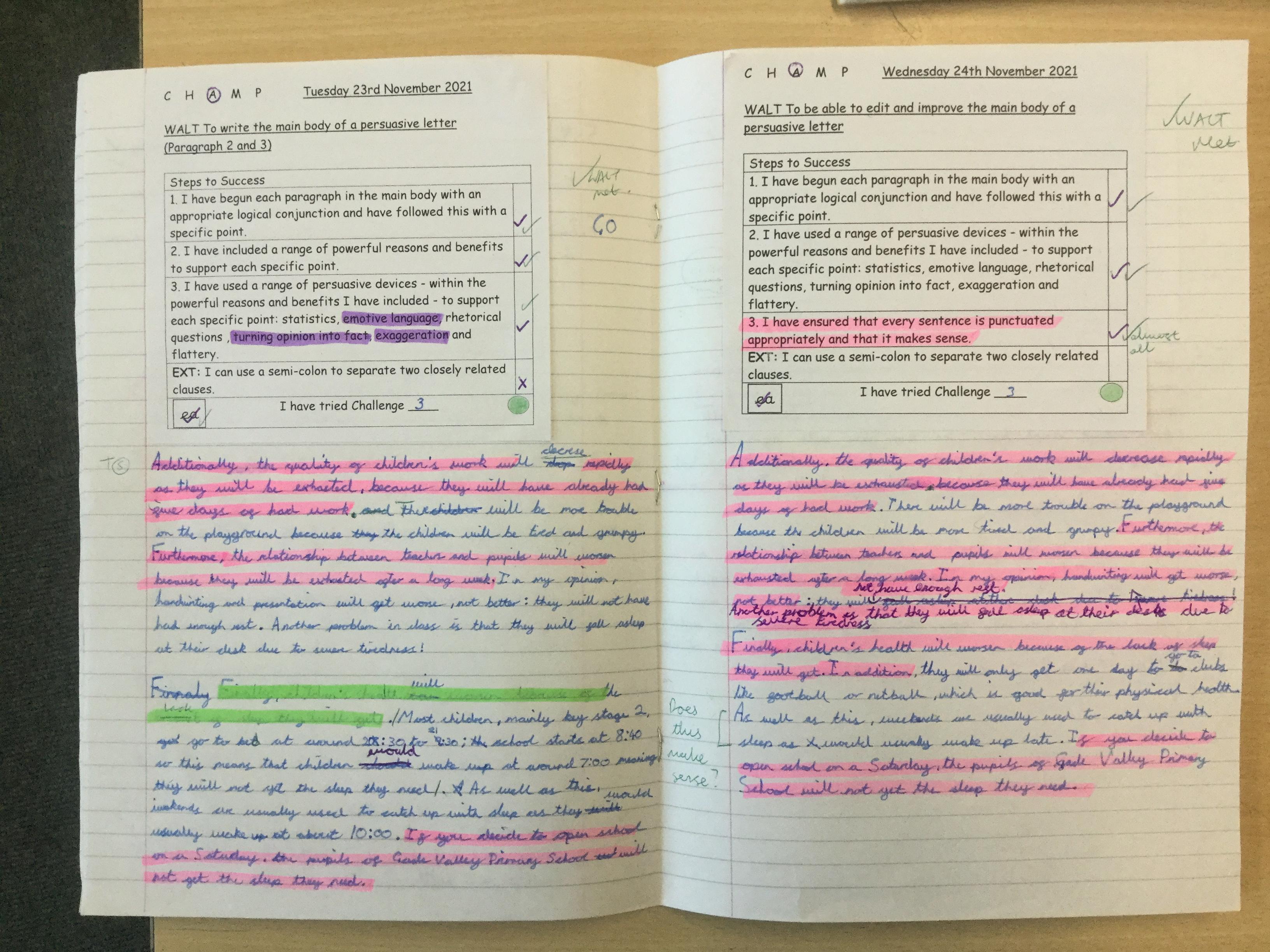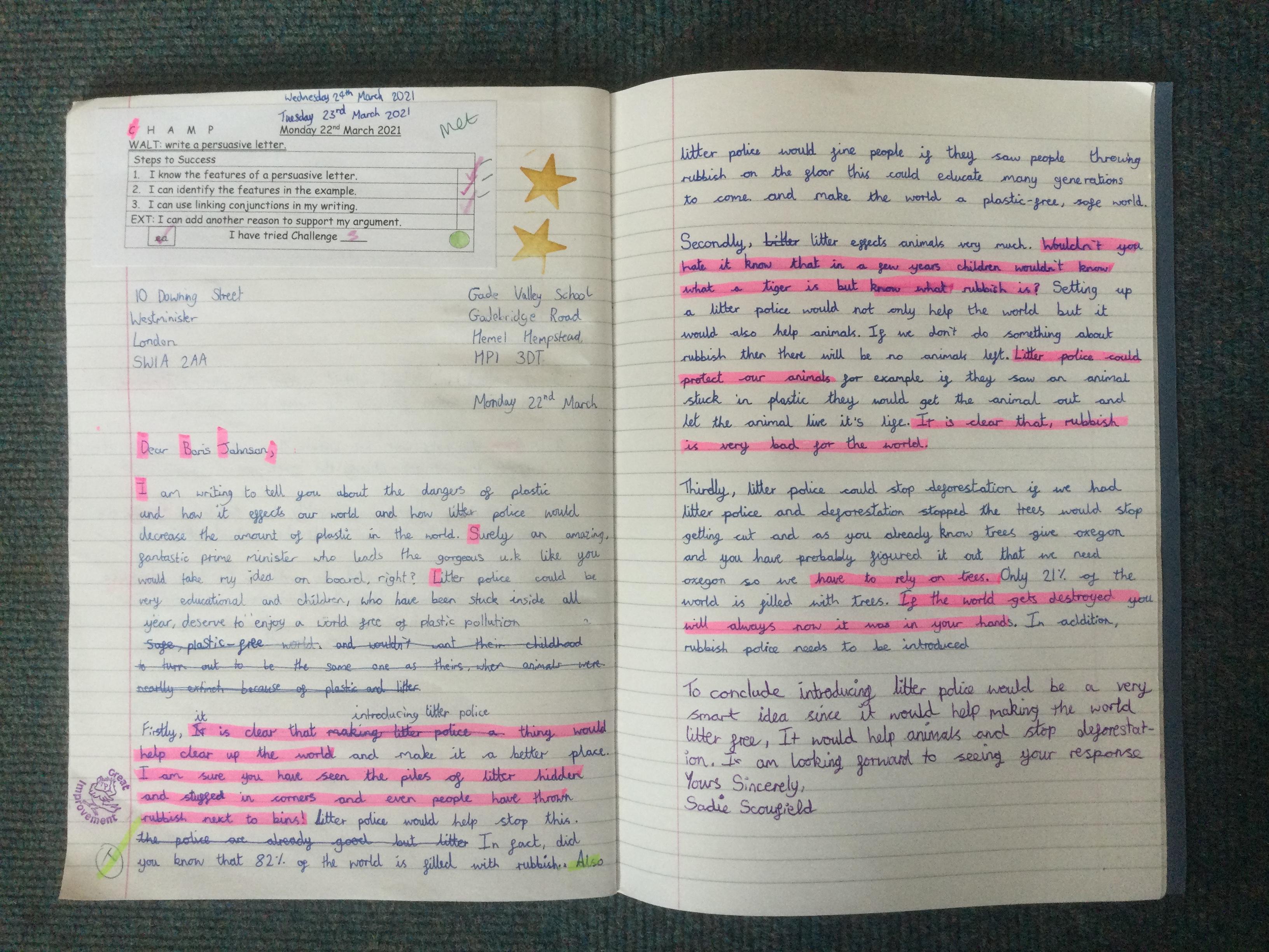 In  Year 6 the pupils wrote persuasive letters to Mr Barron not to open school on a Saturday.