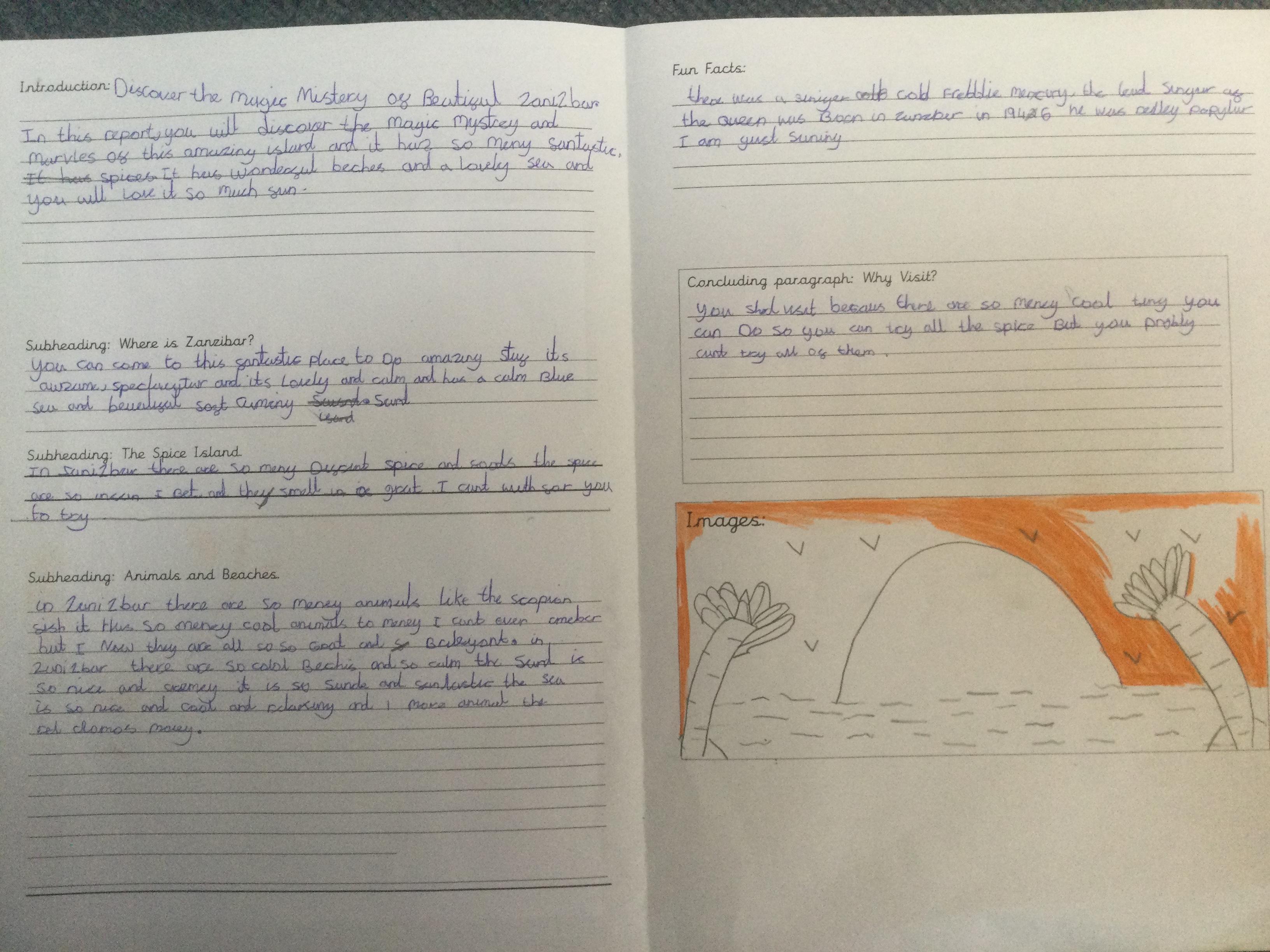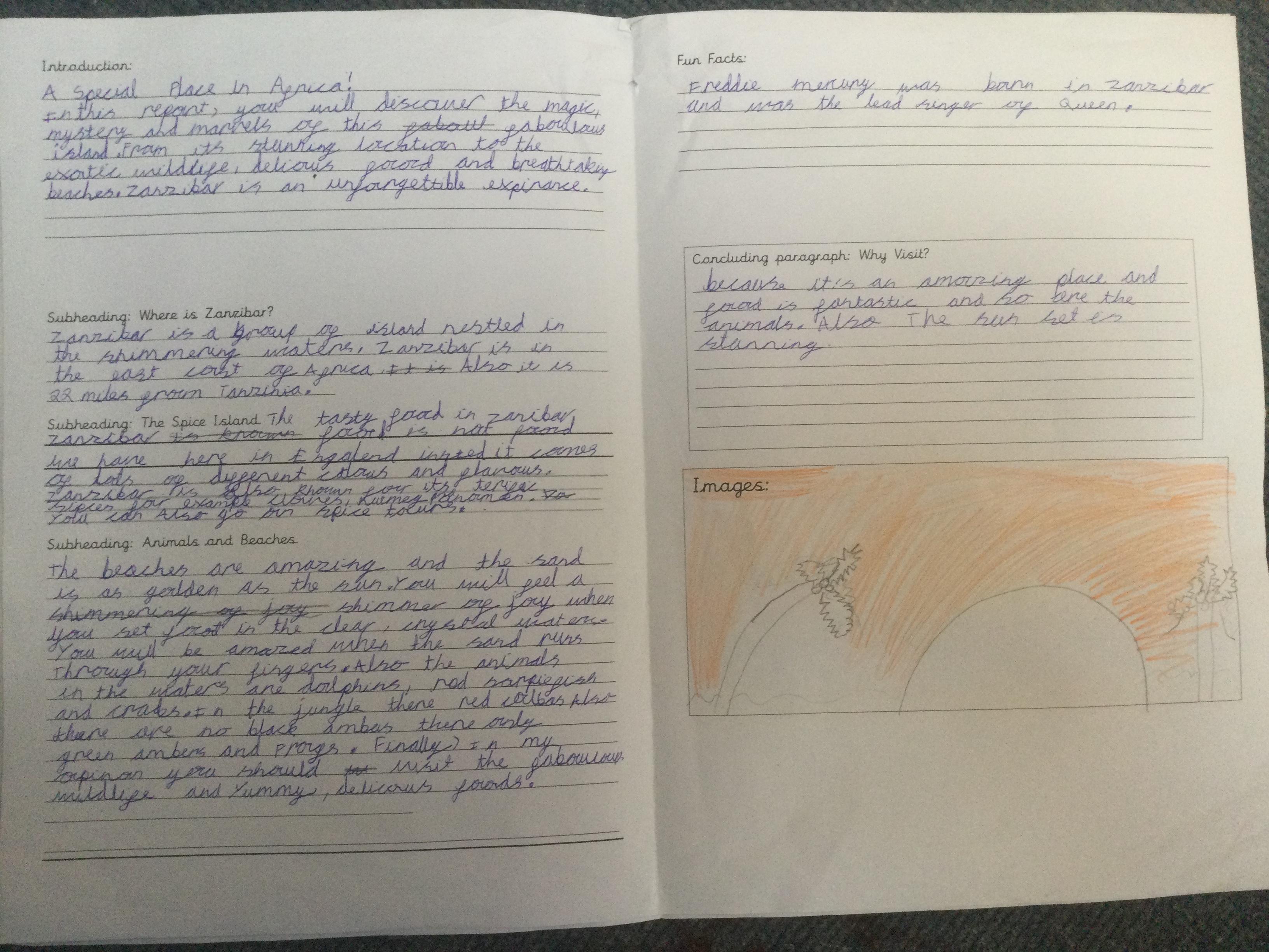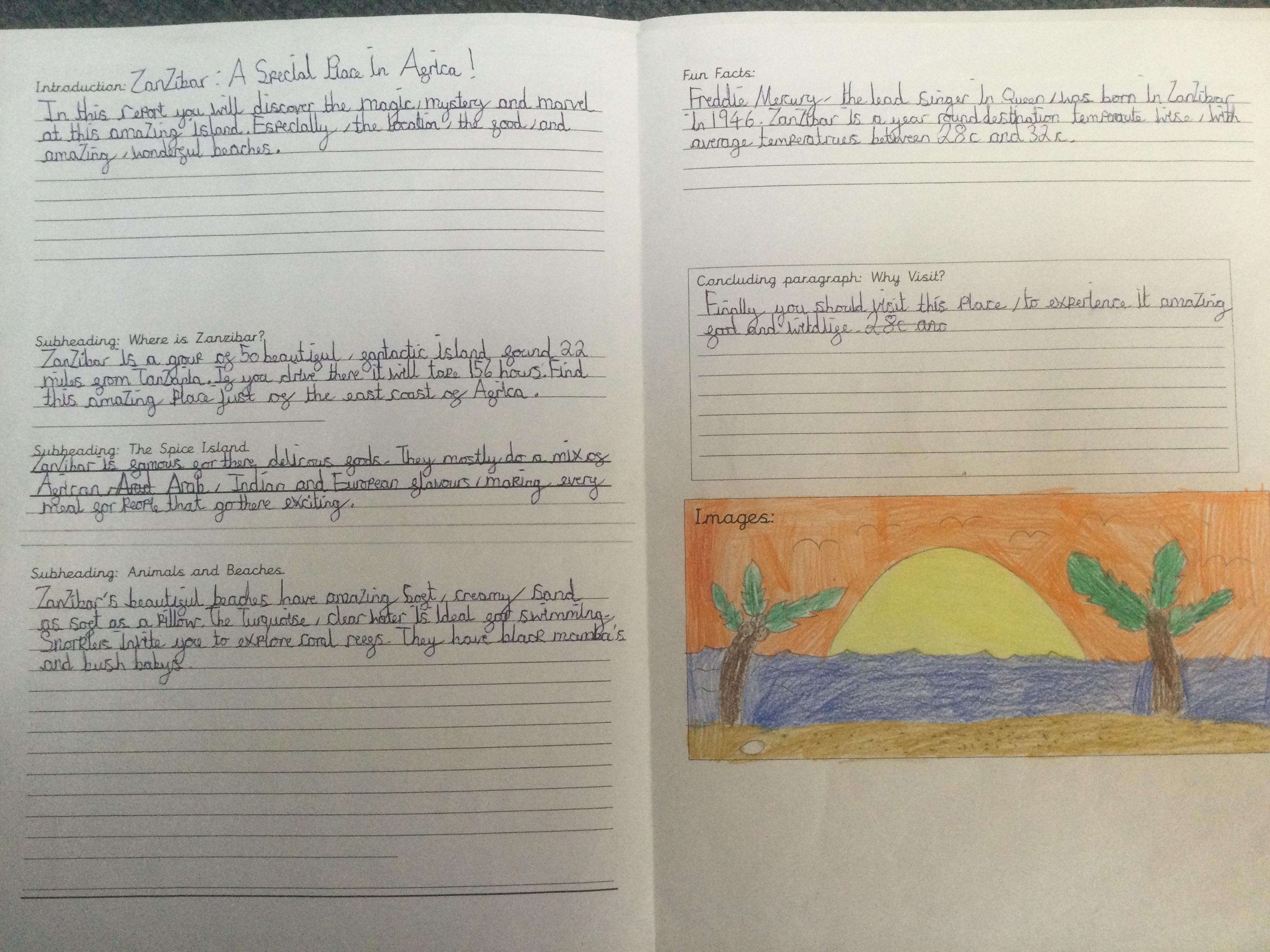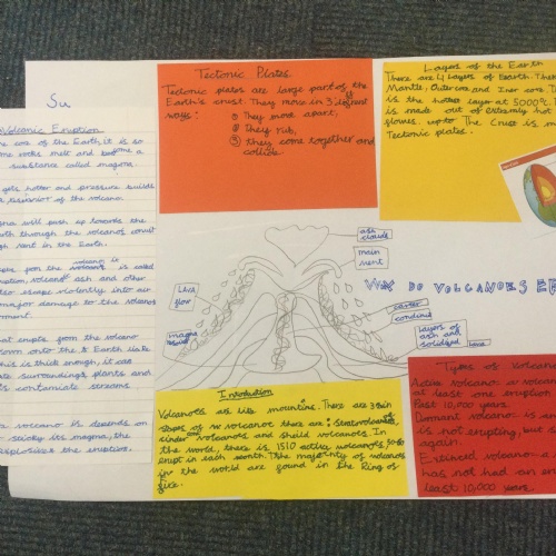 In Year 3, the pupils created their own explanation texts about volcanoes. They included all the key layout features including sub titles and diagrams. They tried to use lots of subject specific vocabulary and design a layout to interest the reader.