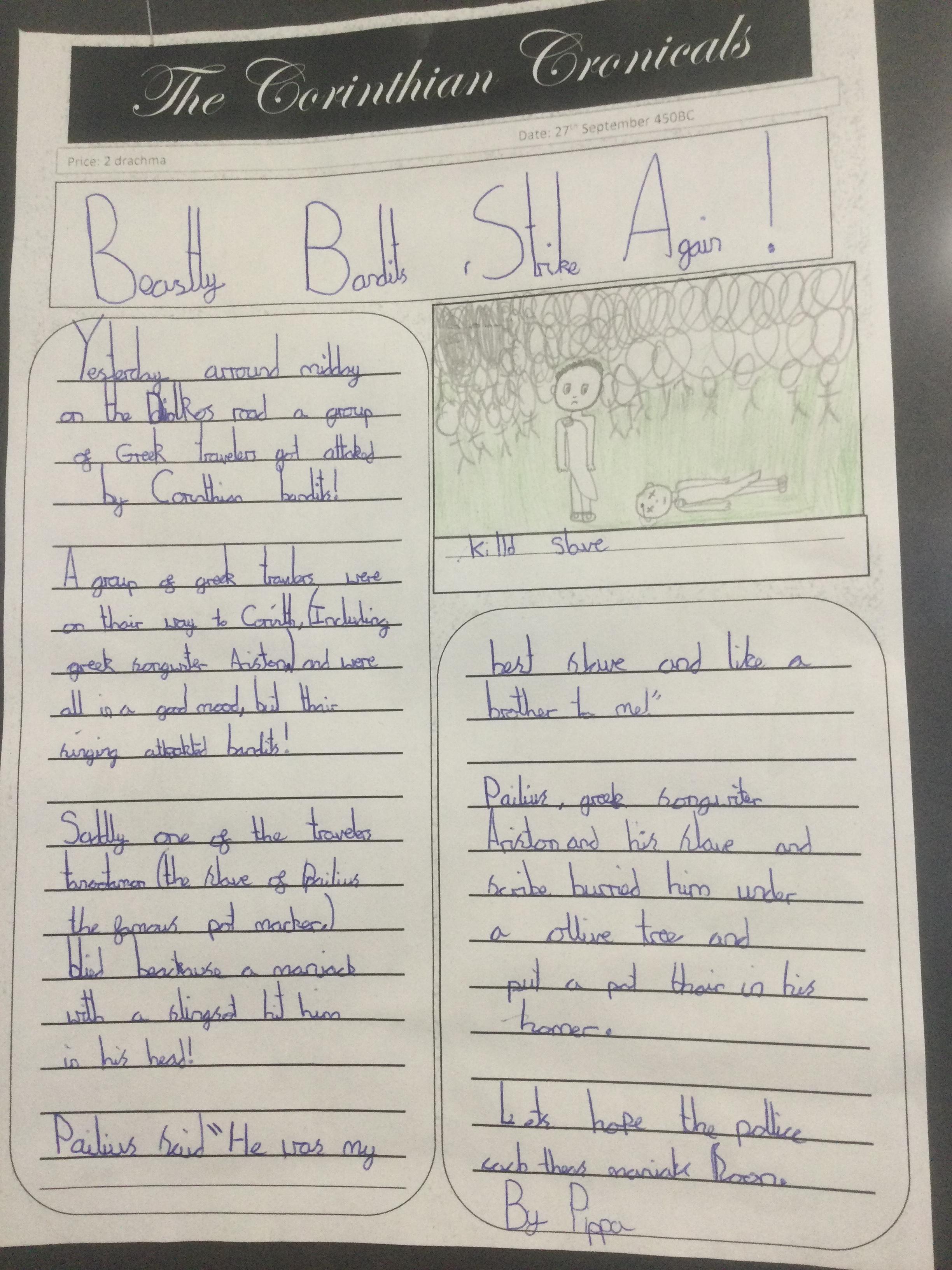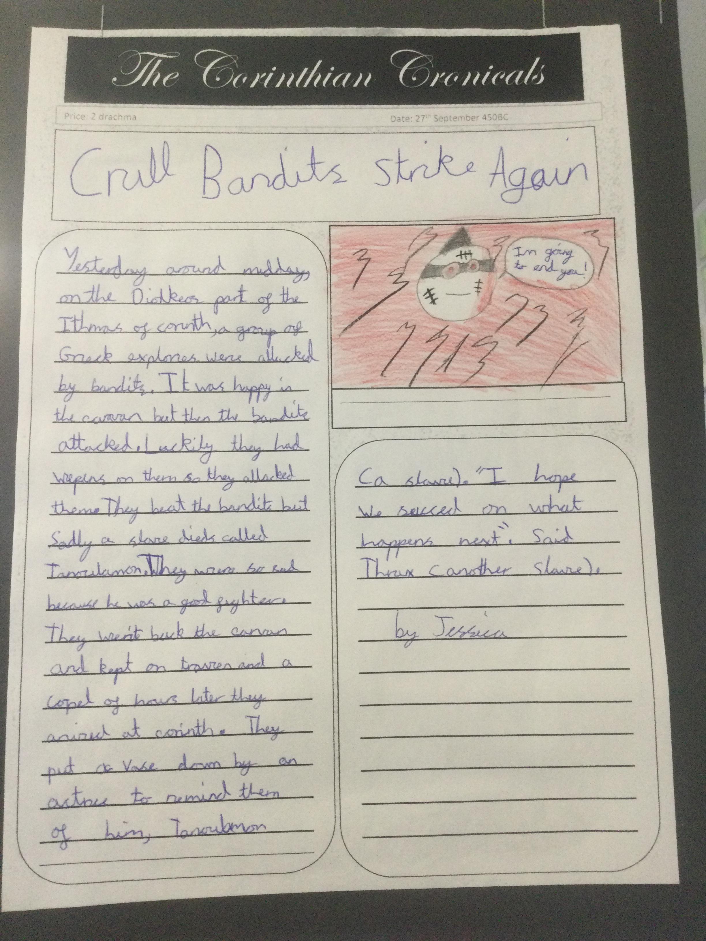 In Year 4, the pupils wrote recounts about their trip to Hudnall Park. They also created character descriptions for their own bandits. For both pieces of writing, they were extremely motivated!