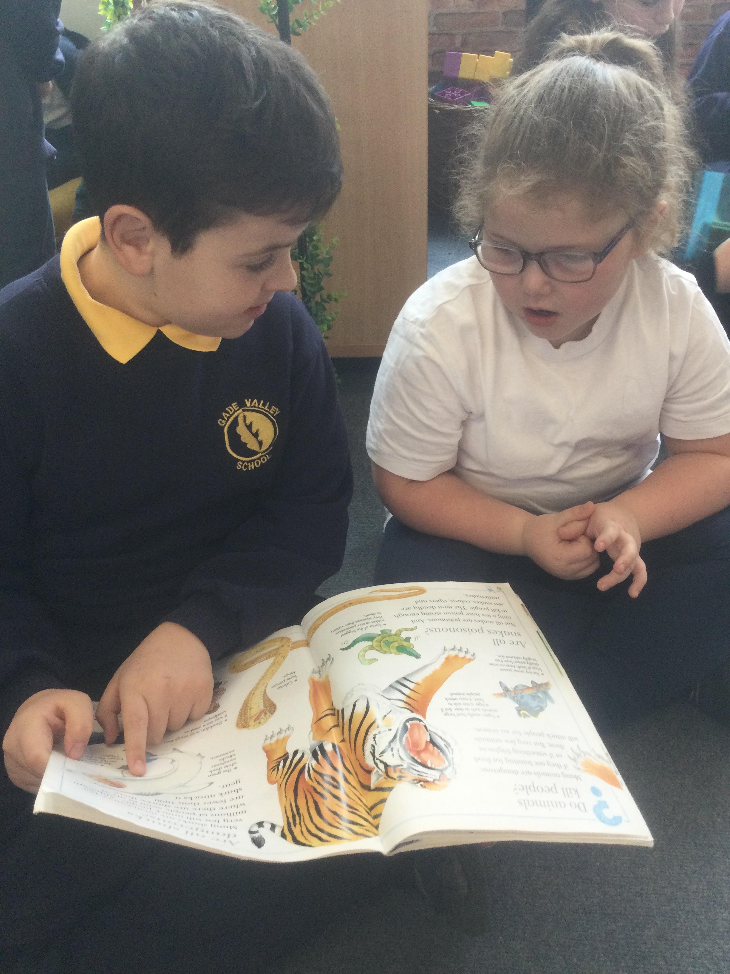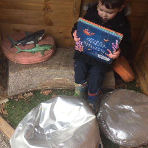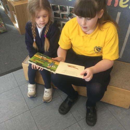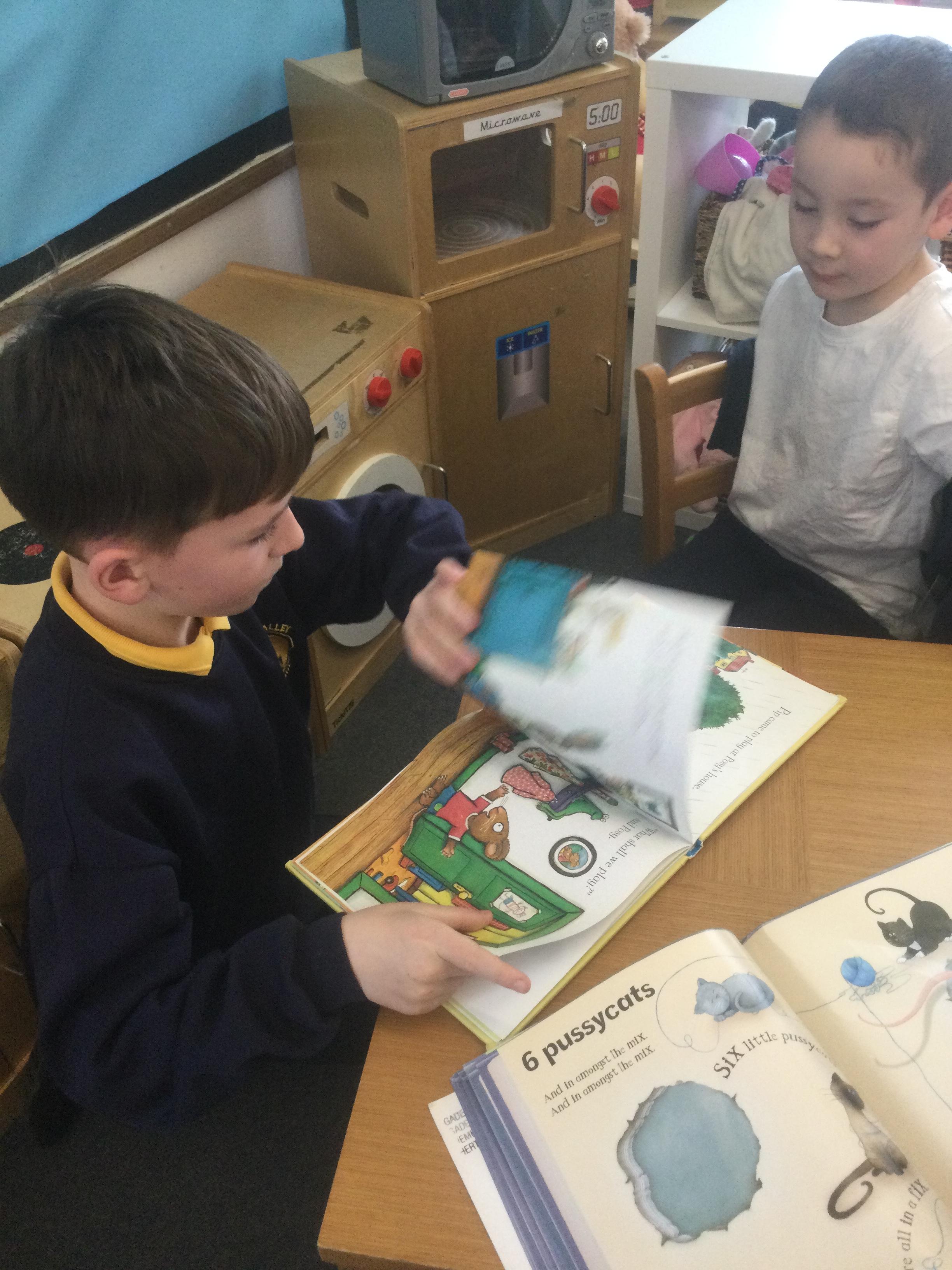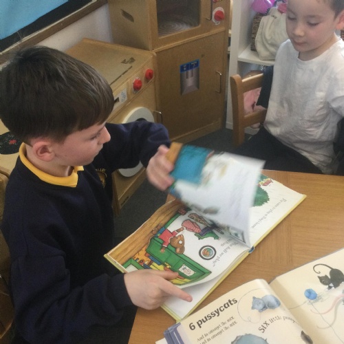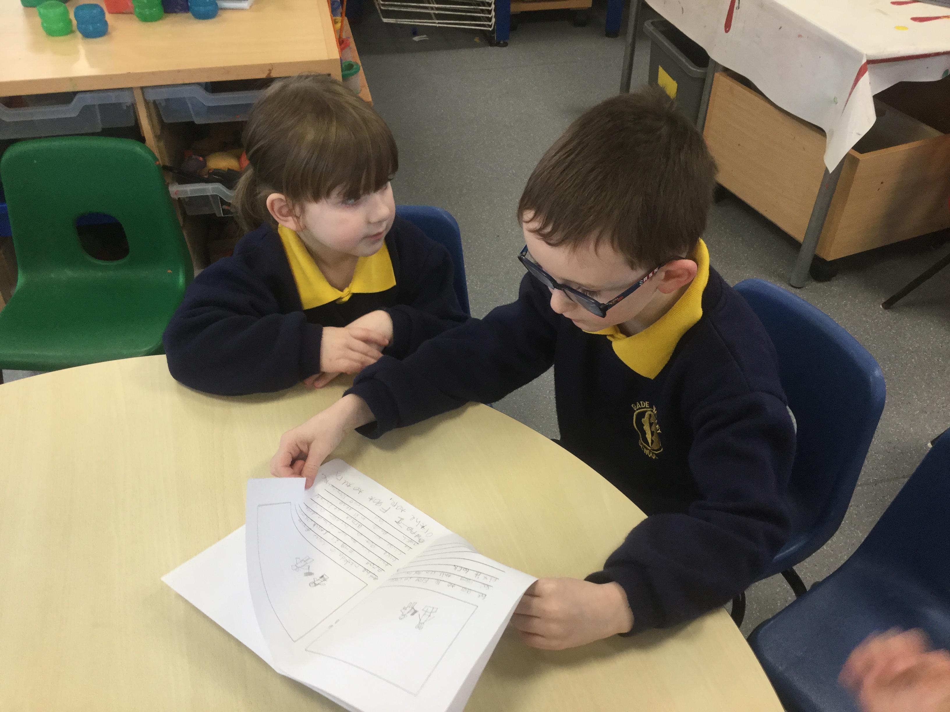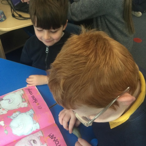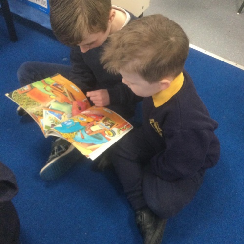 In Nursery, the pupils have enjoyed sharing books and stories with their friends and other year groups during Buddy Reading and DEAR.  They are also working really hard to write their names.
