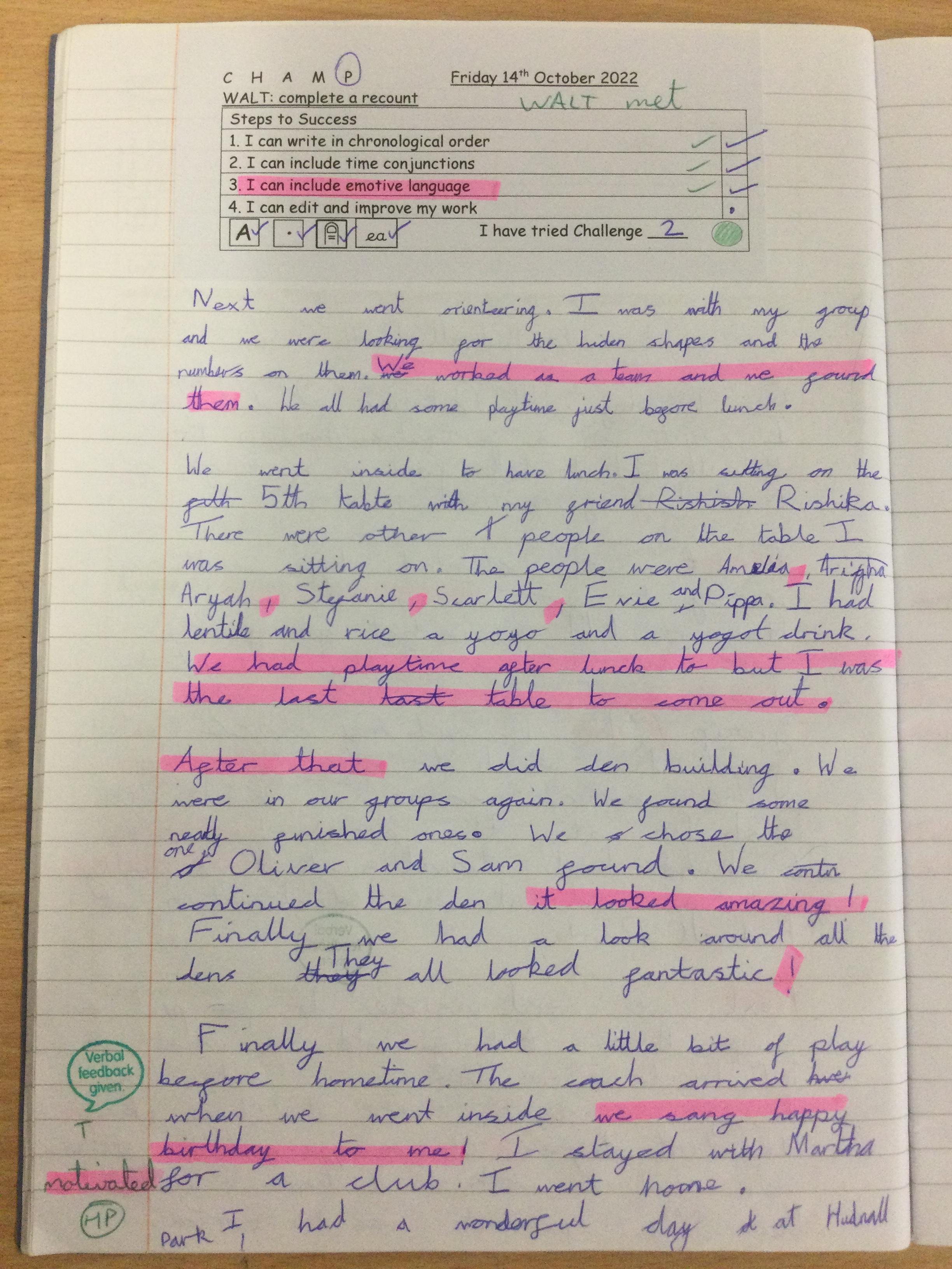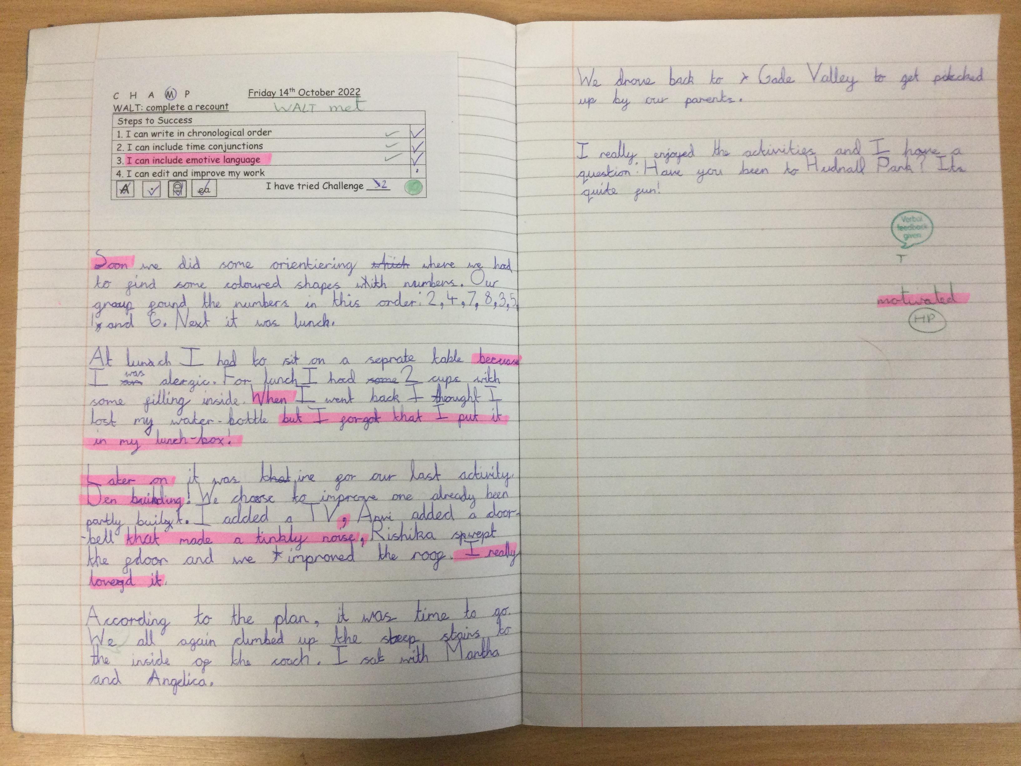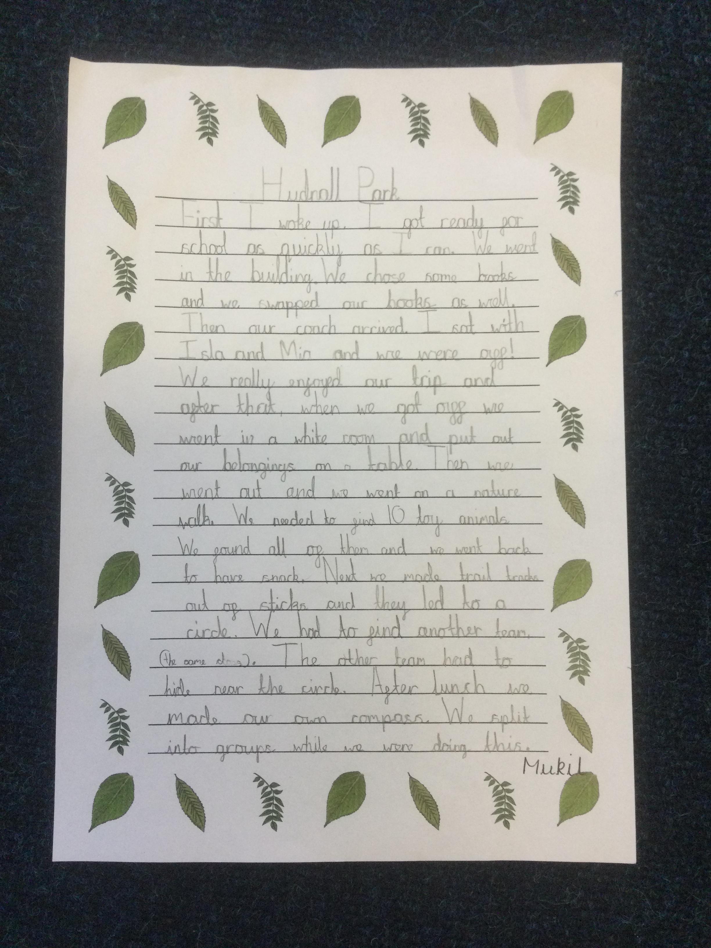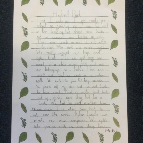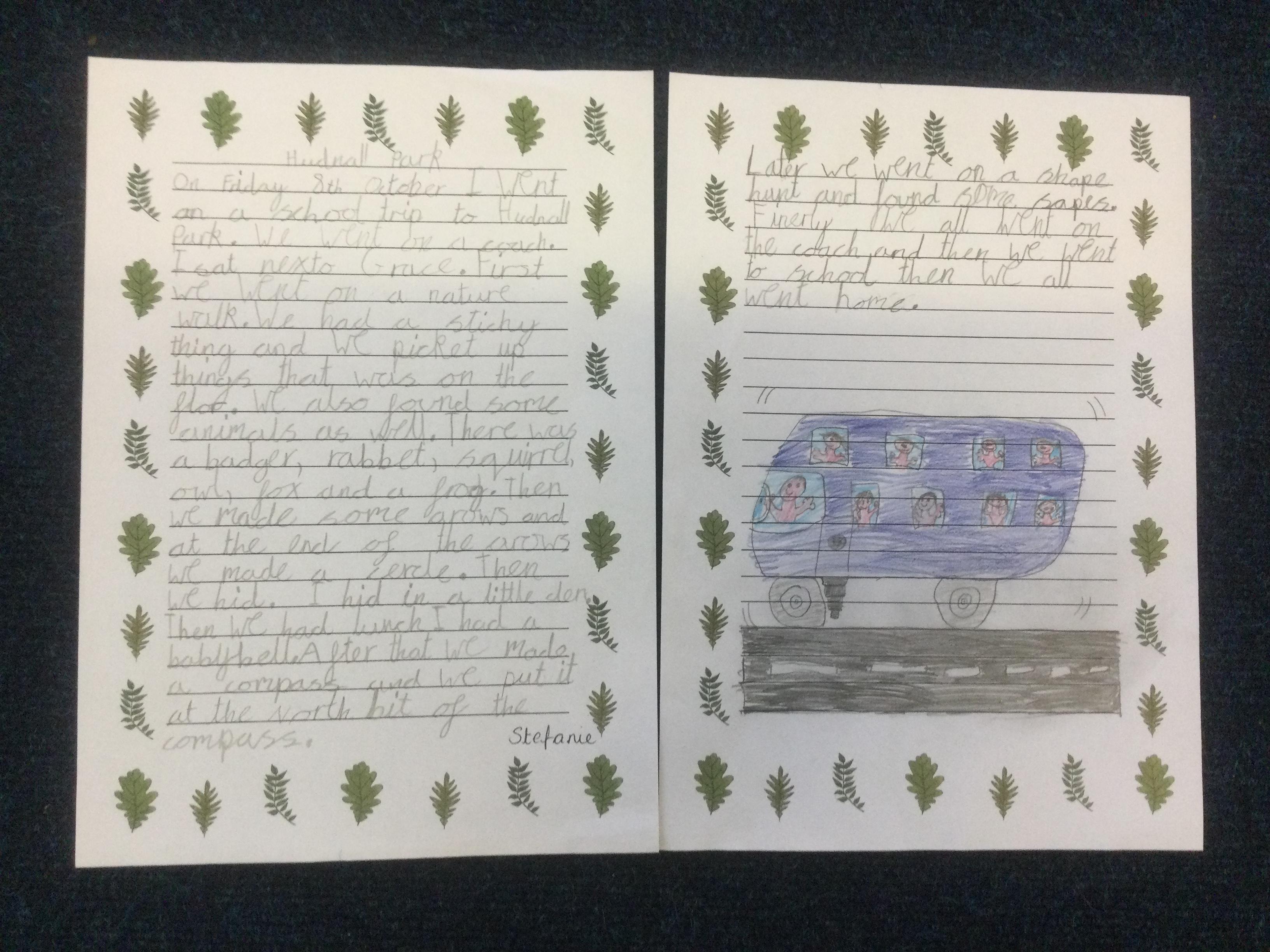 In Year 3, the pupils wrote recounts about their trip to Hudnall Park. They tried to use time conjunctions and emotive language in their writing.