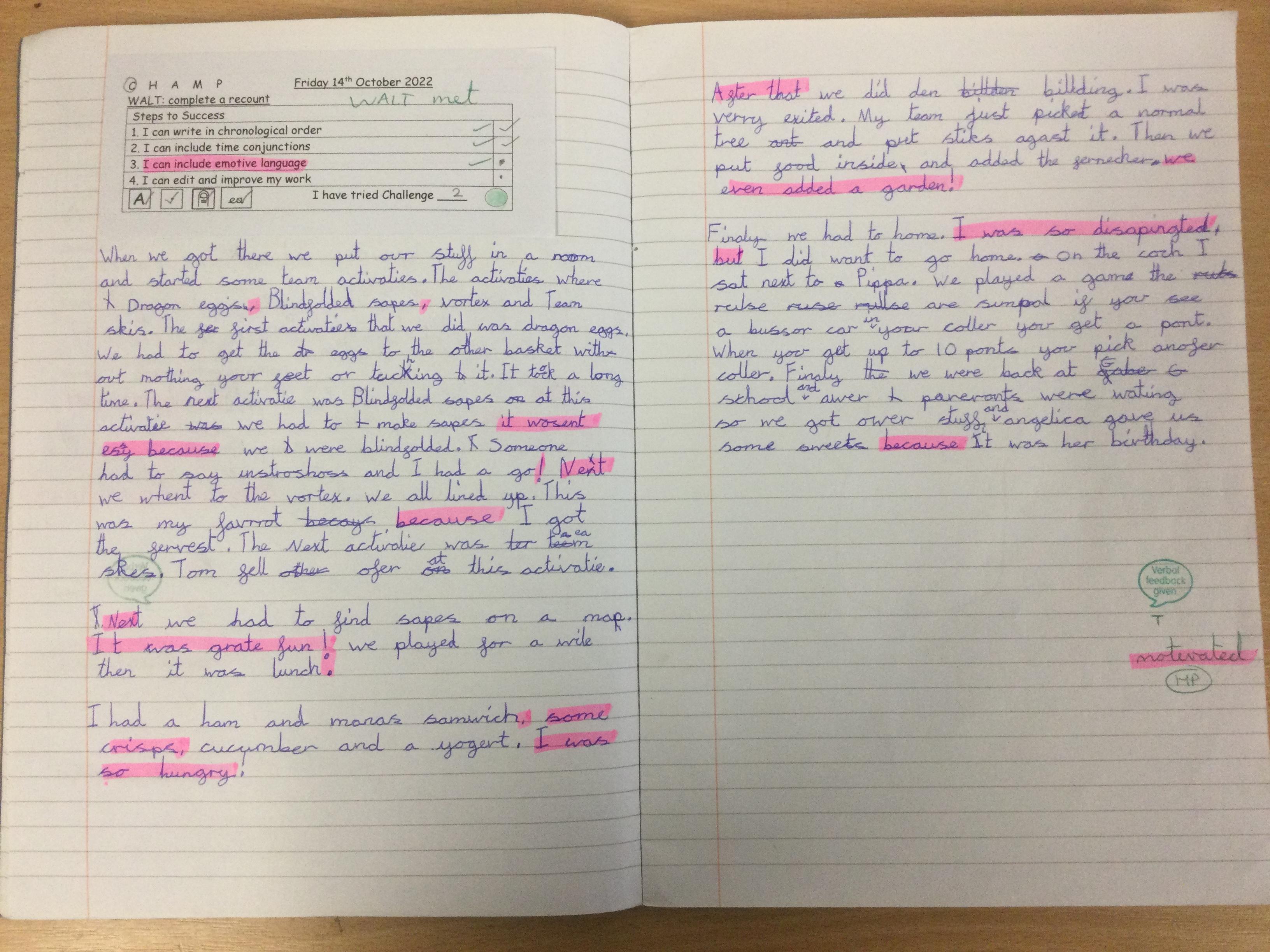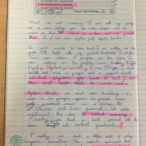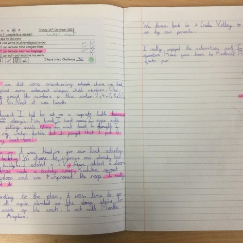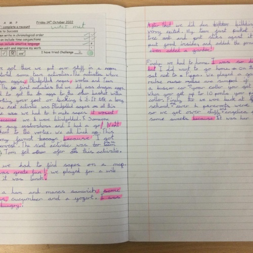 Following on from their fantastic Year 6 Camp Out Experience, the pupils wrote diary entries. They were really proud of their handwriting! They thought it was great having a record of what they did!