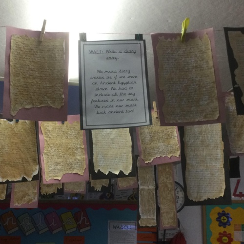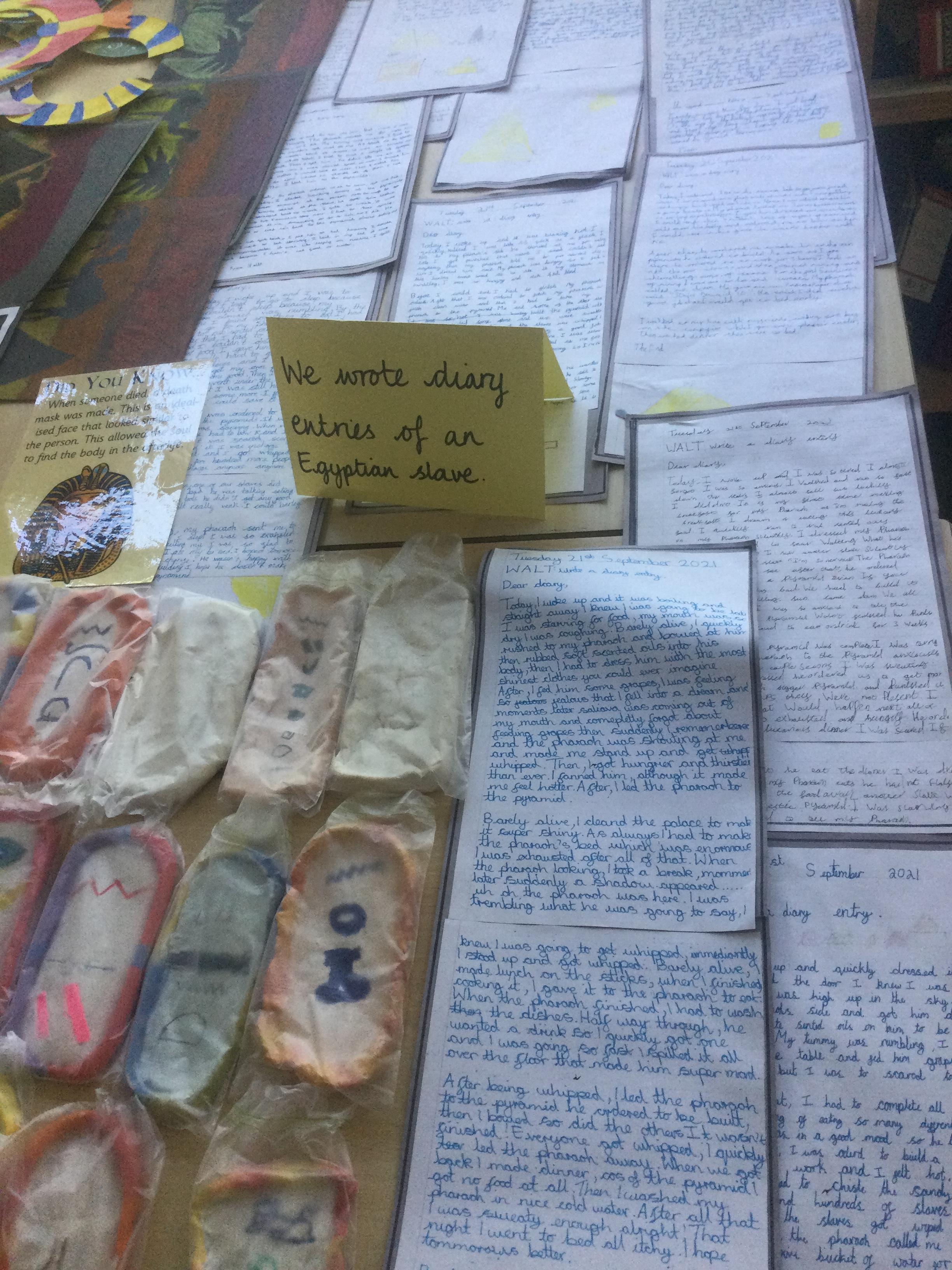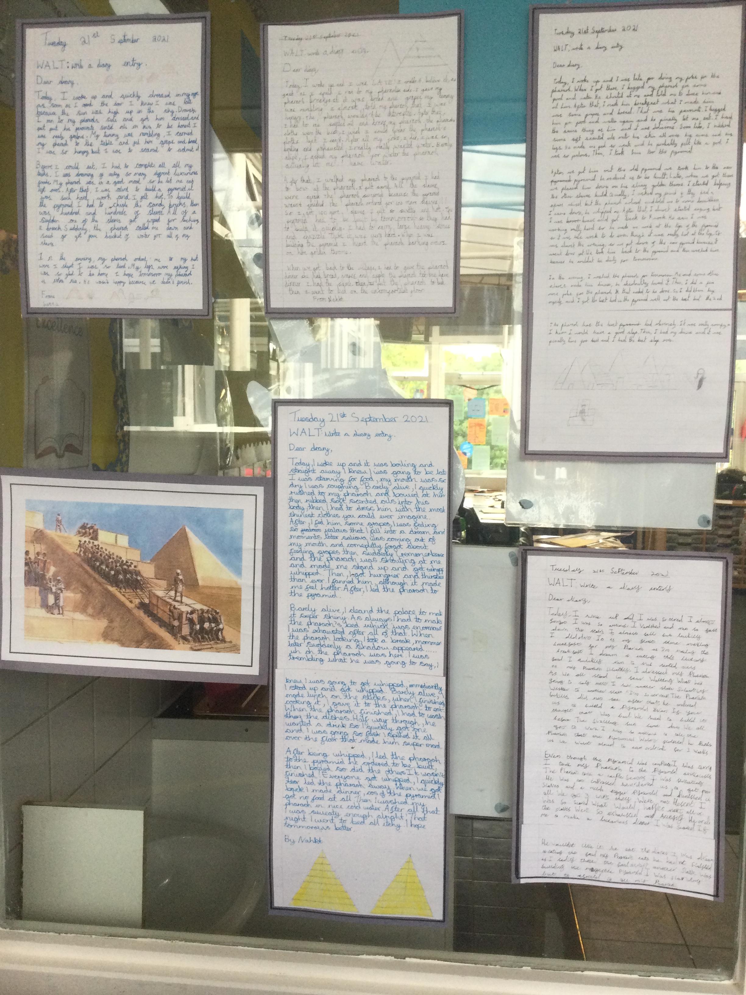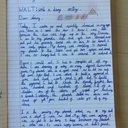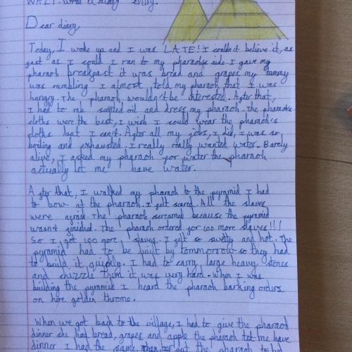 In Year 5, the pupils have written diary entries as an Egyptian slave based on the book ‘Egyptian Diaries’ by Richard Platt.