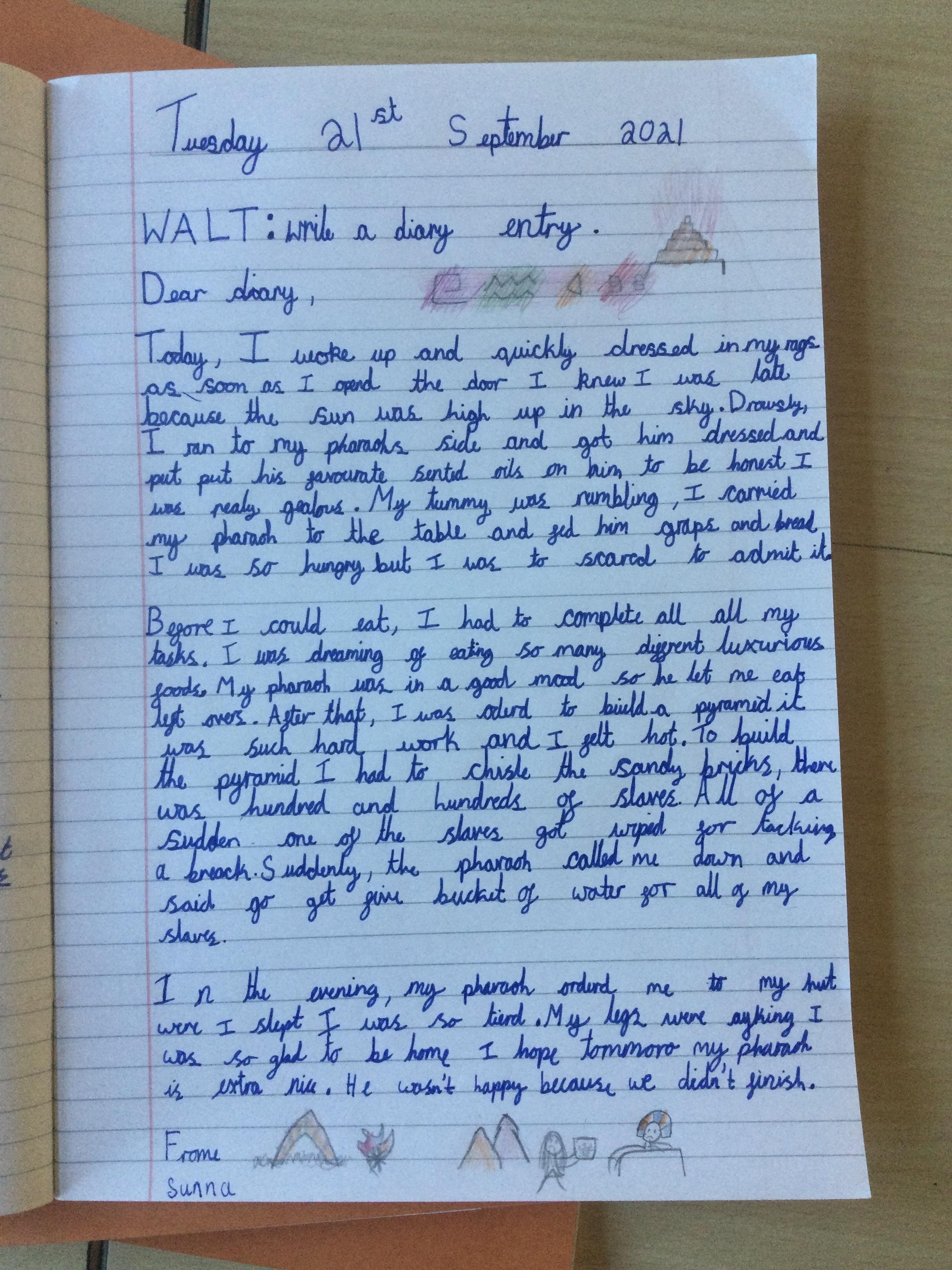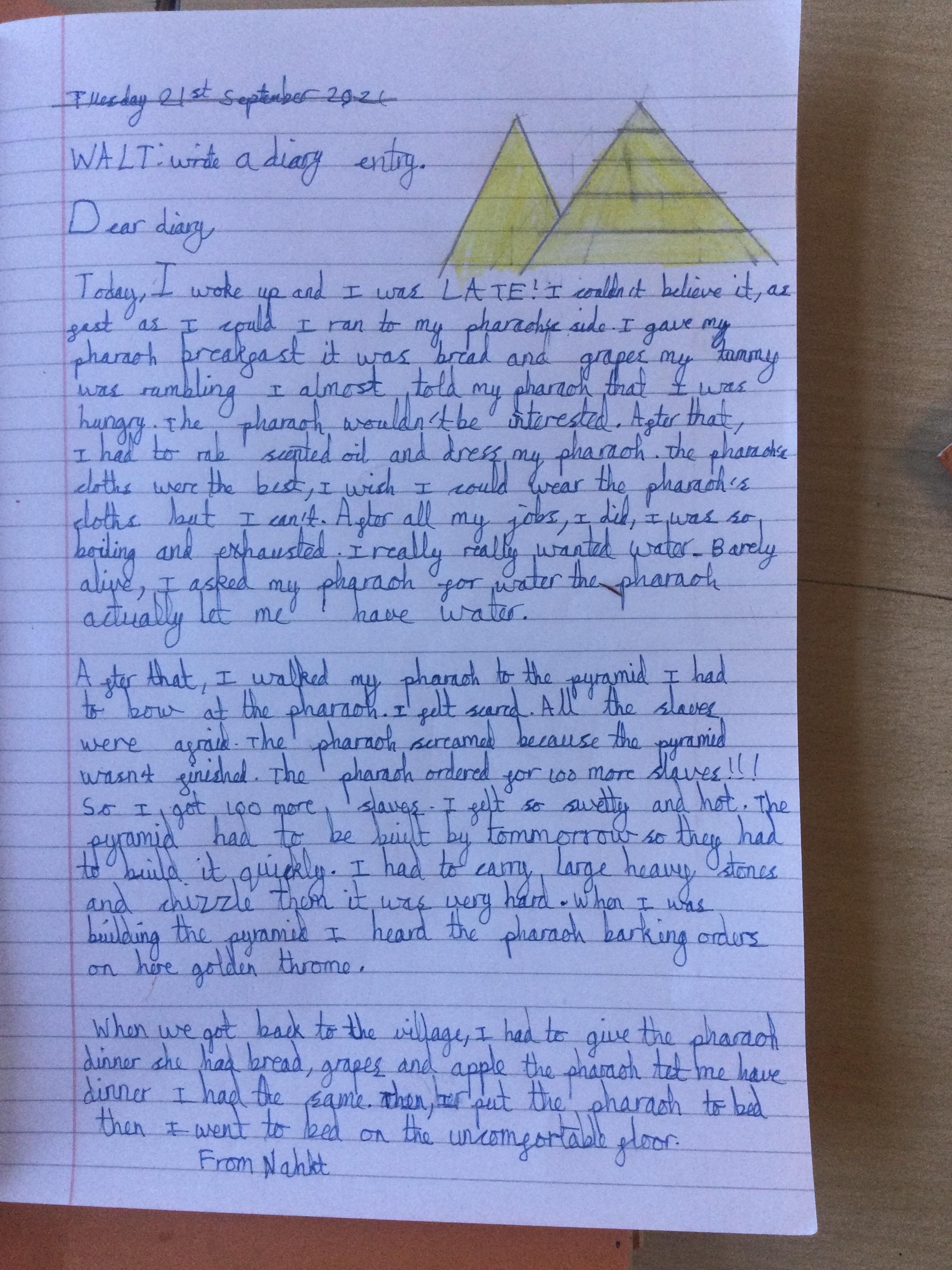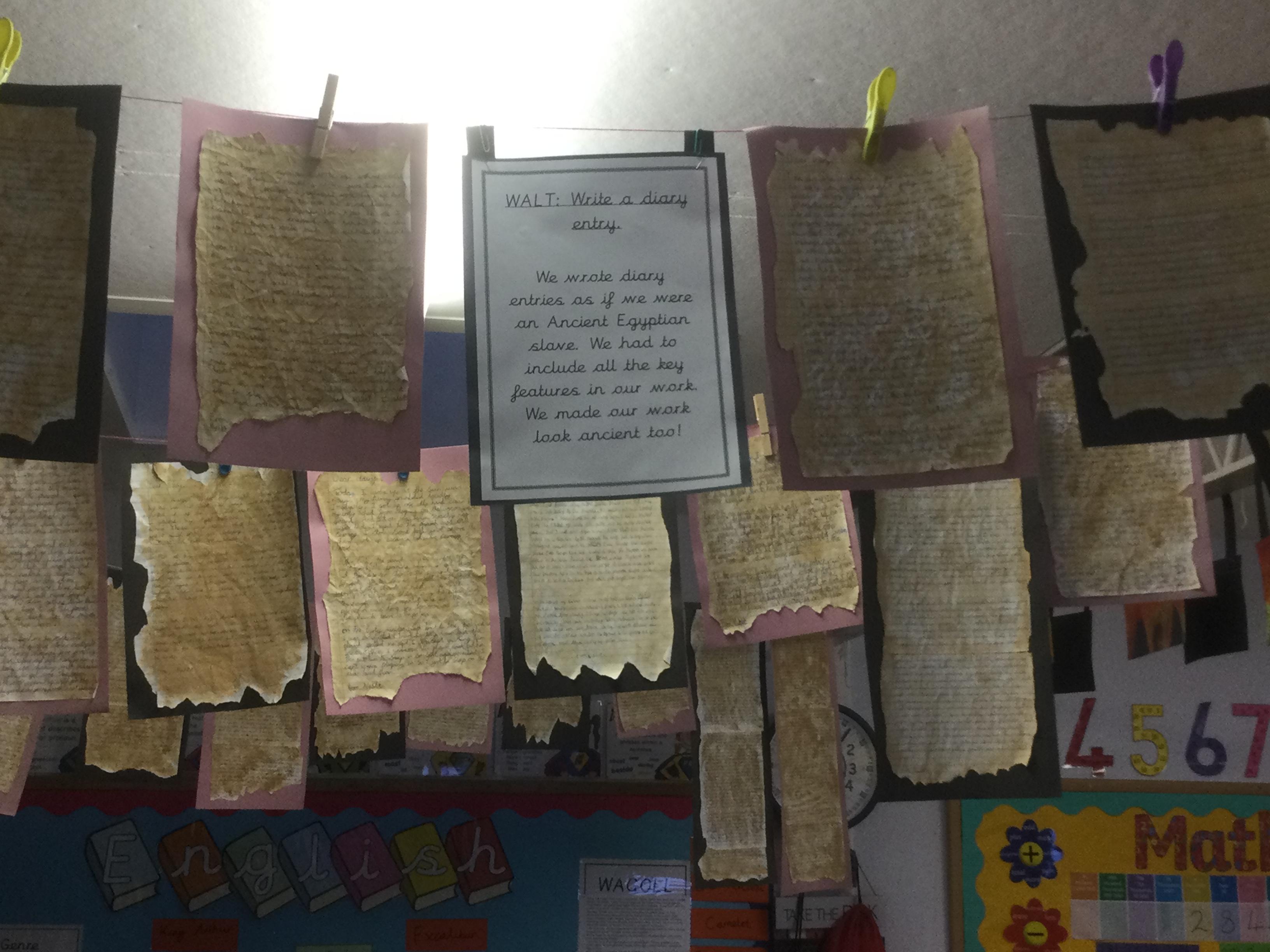 In Year 5, the pupils have written diary entries as an Egyptian slave based on the book ‘Egyptian Diaries’ by Richard Platt.
