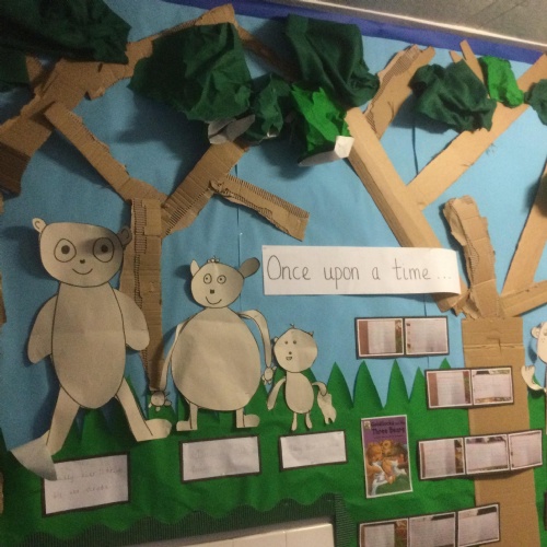 In Year 1 the pupils went round the school grounds acting out the story Goldilocks and the Three Bears. This helped them to sequence the story for their writing.