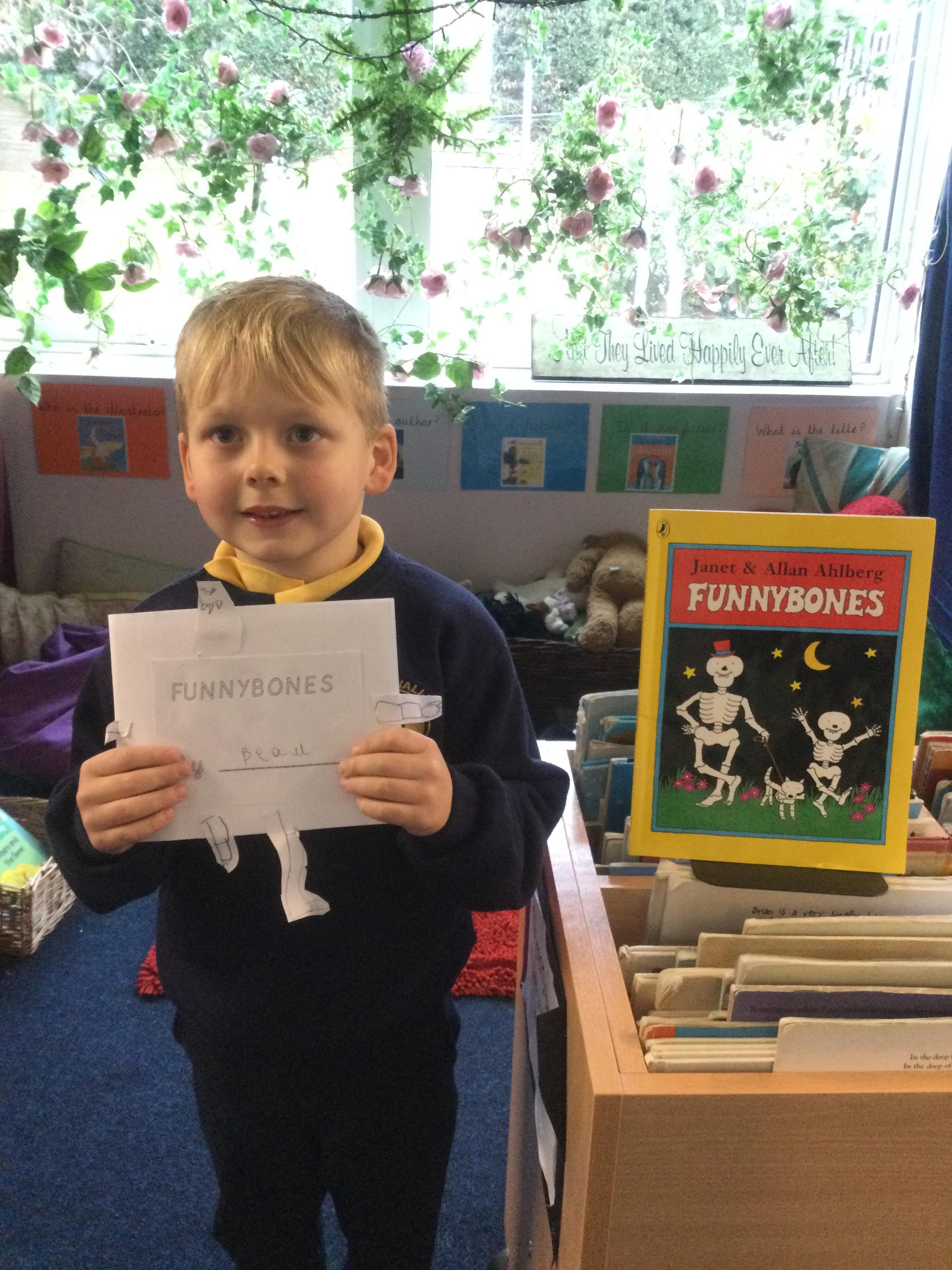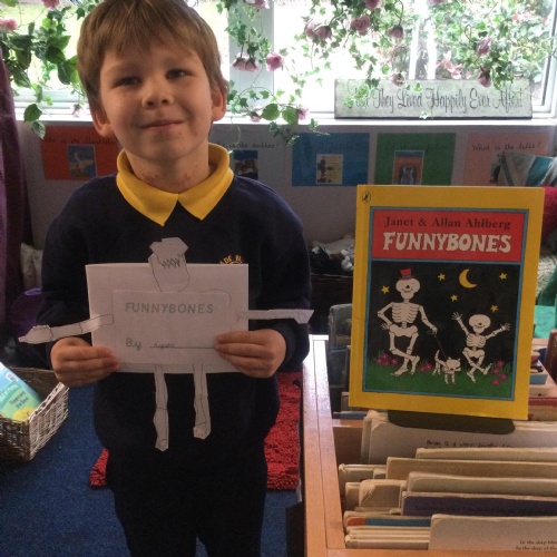 Pupils in Year 1 re-wrote the story of Funnybones. They had to identify repetitive text, use time words and adjectives.