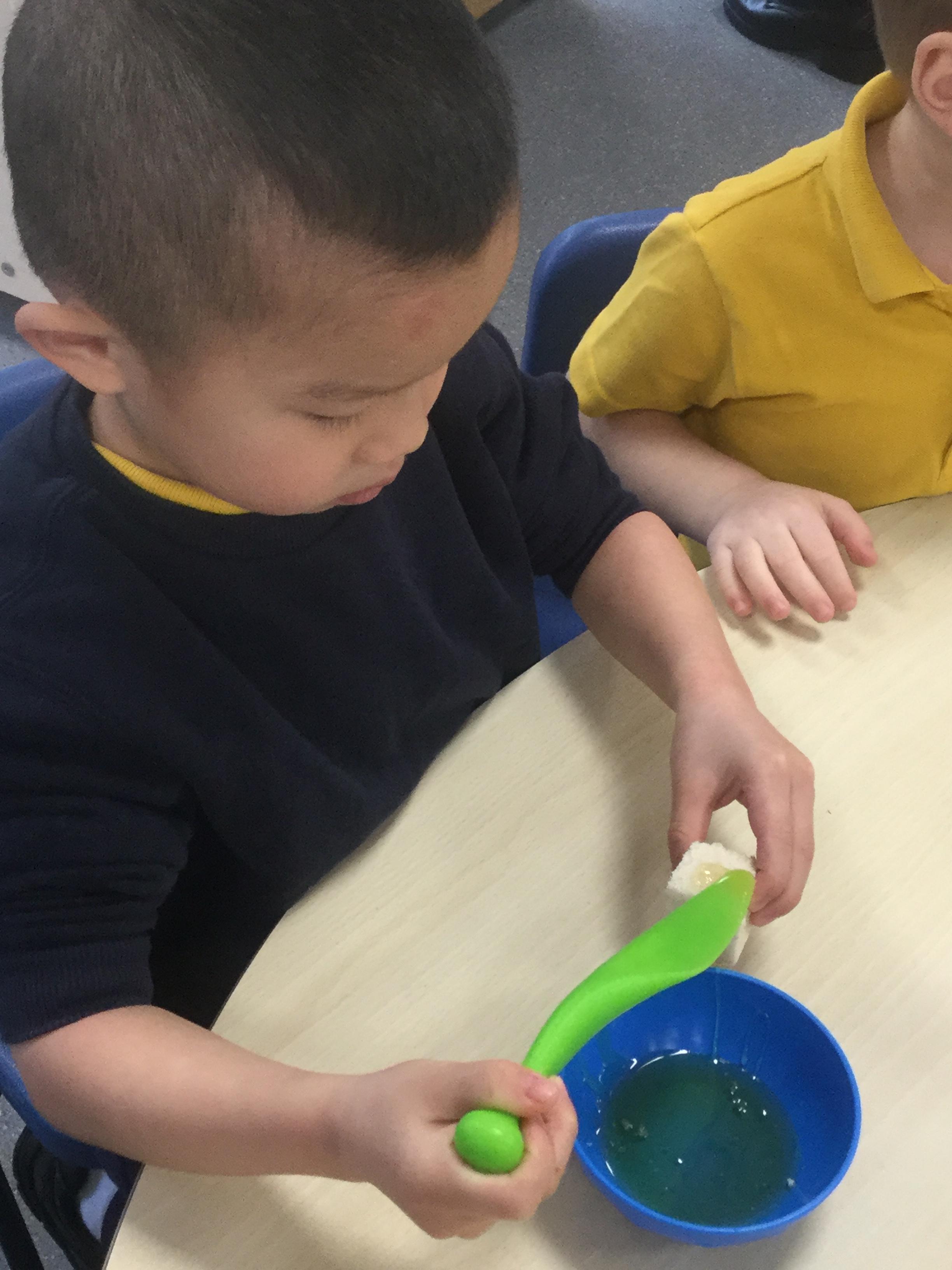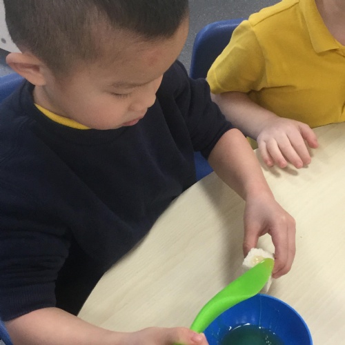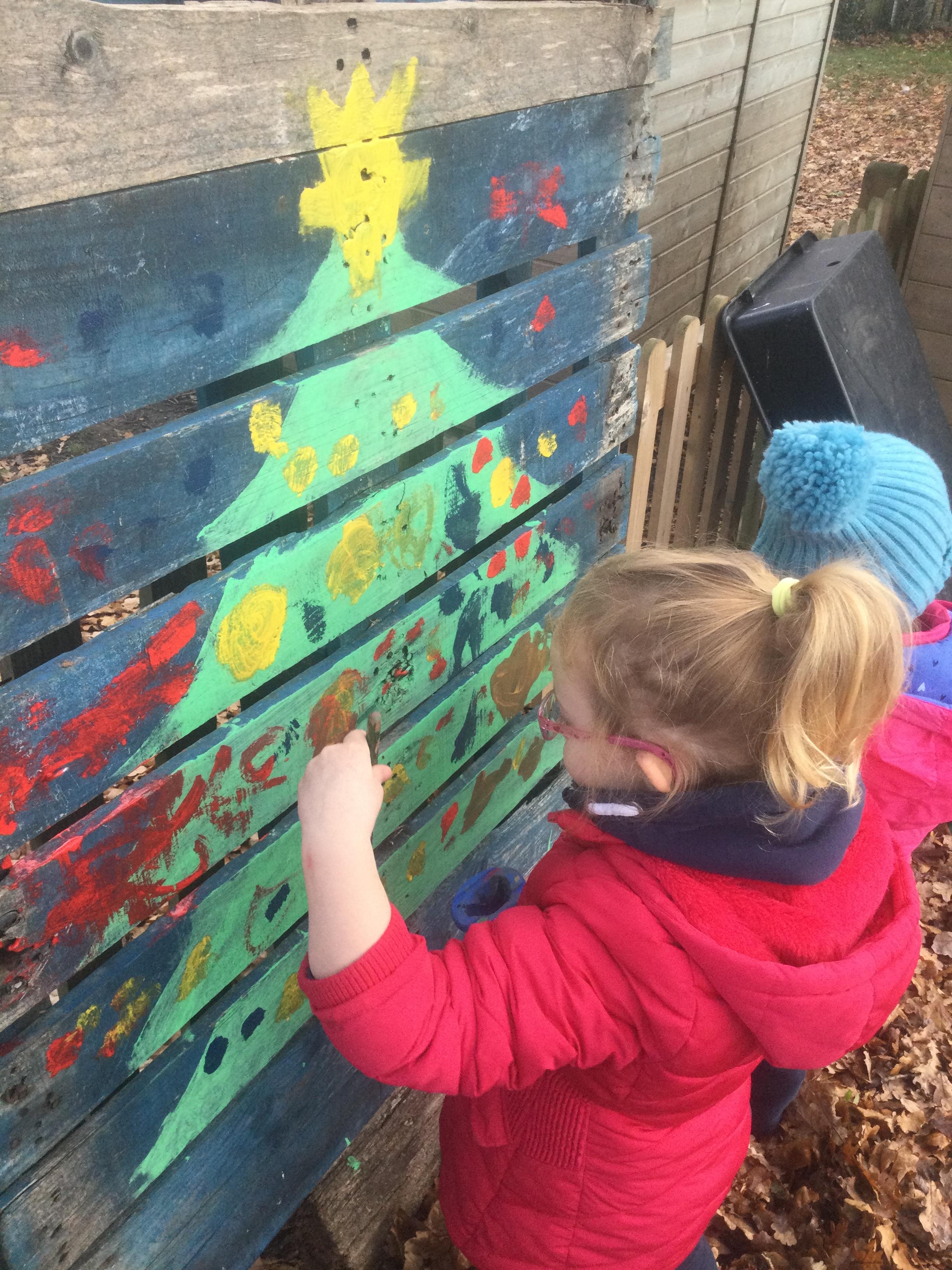 In Nursery, the pupils have been learning to make marks using different materials and equipment.