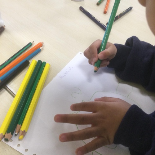 In Nursery, the pupils have been developing their fine motor skills to aid their early writing.