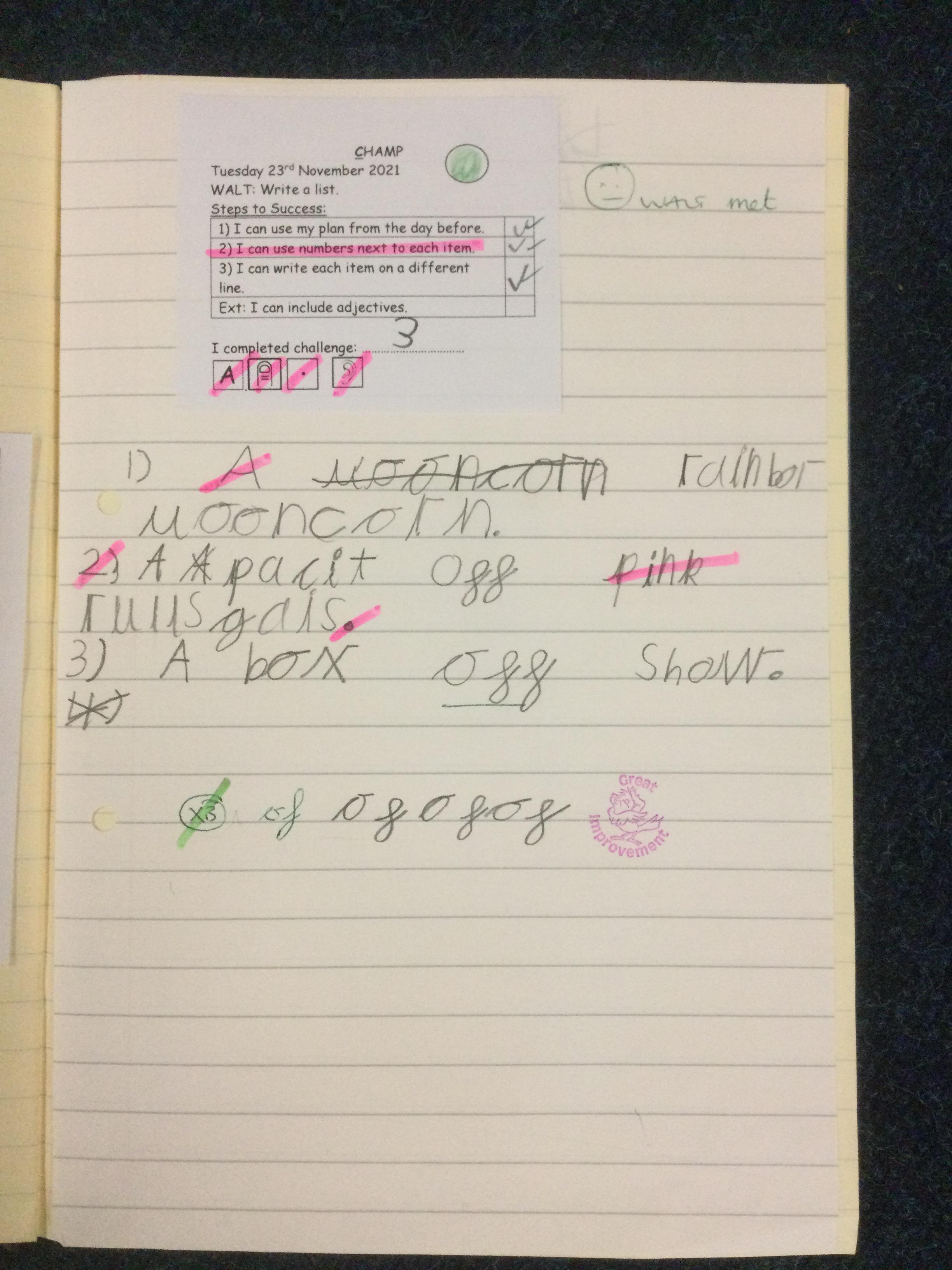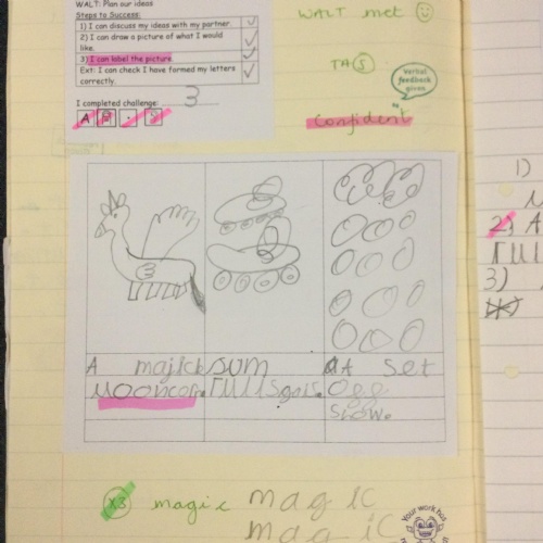 Here are some examples of early writing in Reception. The pupils have been practising writing some CVC words and phrases using their knowledge of the phase 2 phonemes.