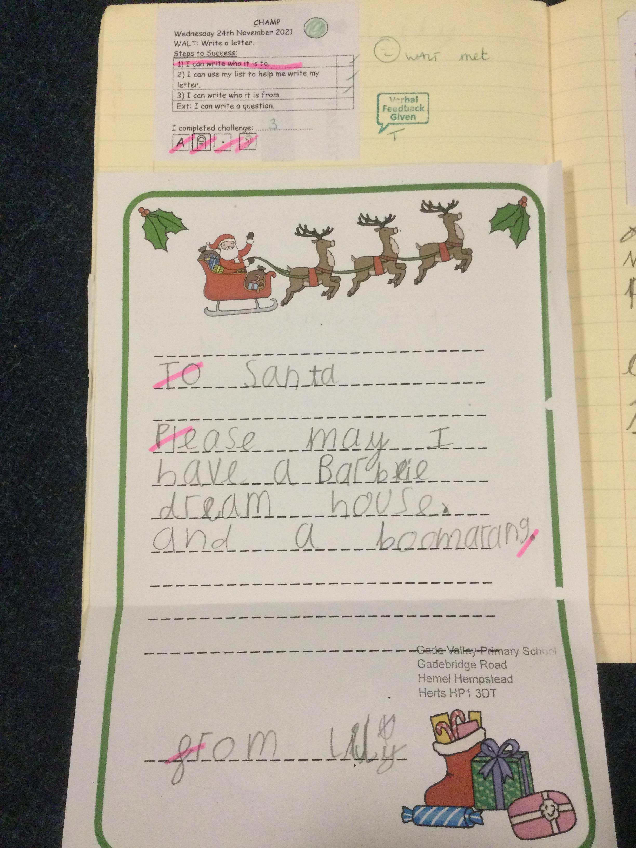 The Year 1 pupils have been writing letters to Father Christmas! Before writing their letters, they wrote a list and then planned their ideas.