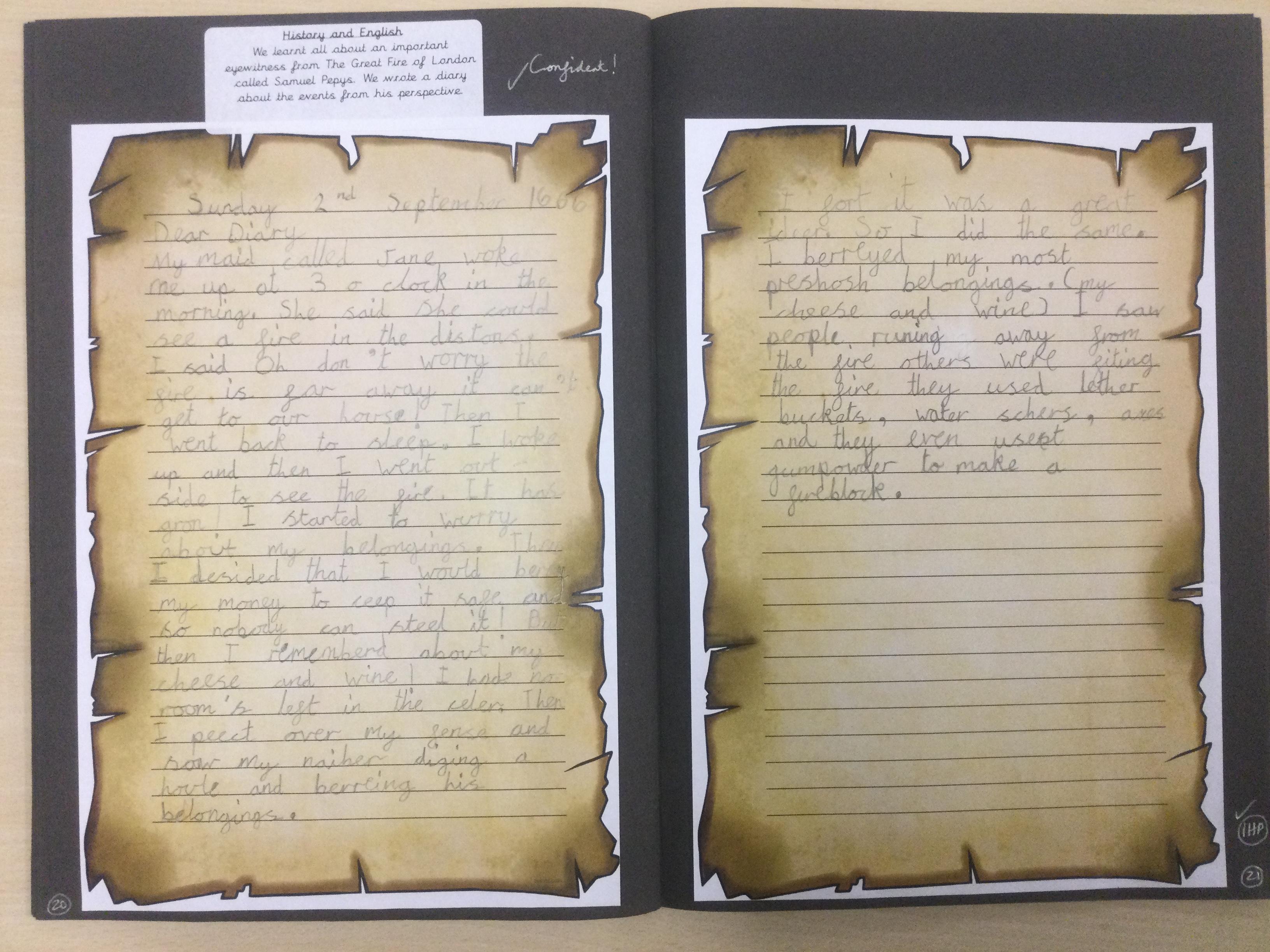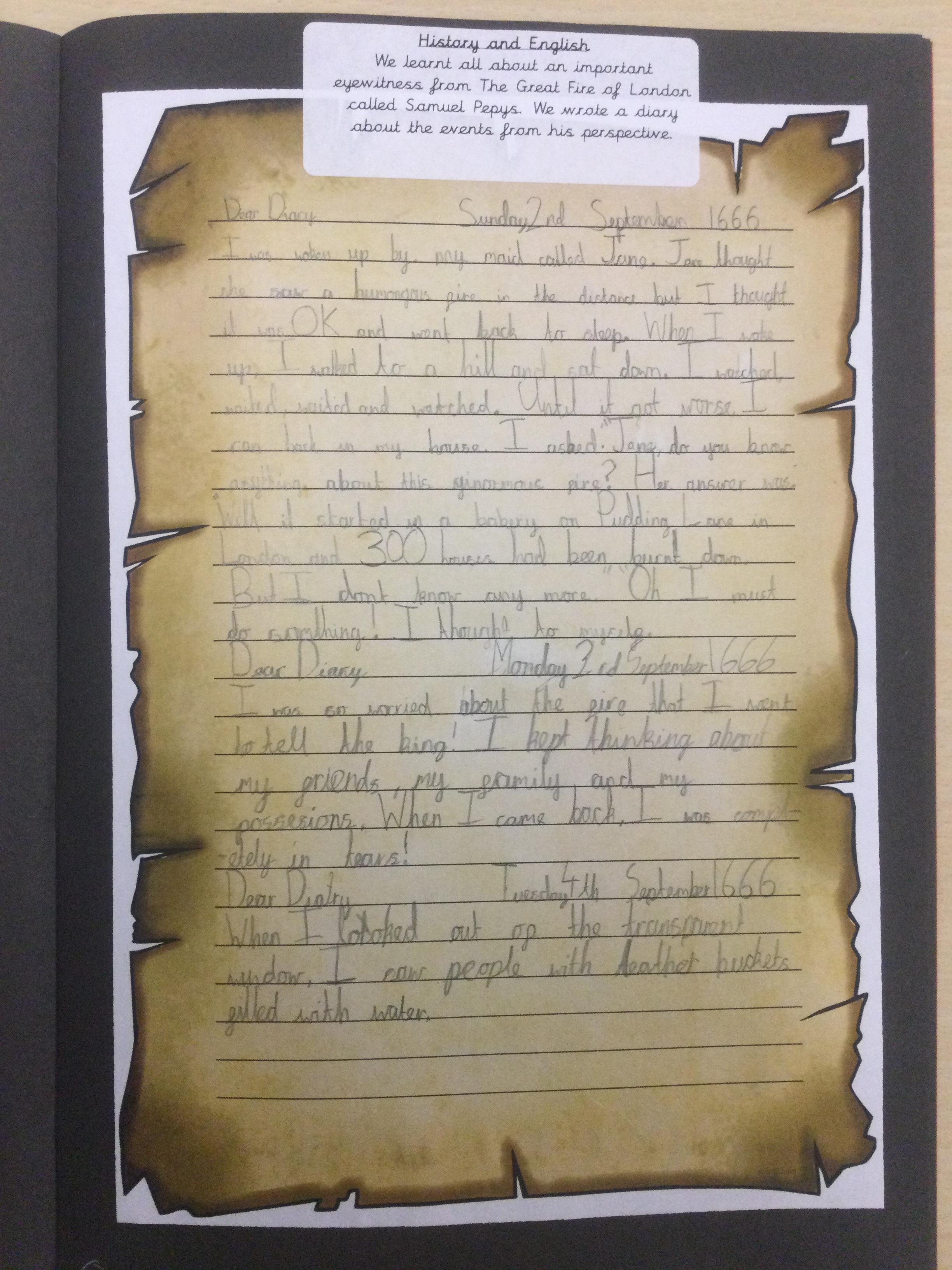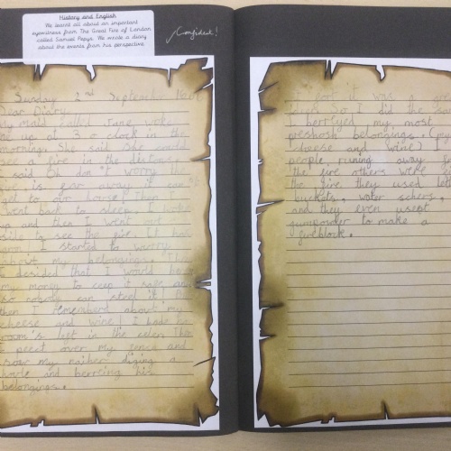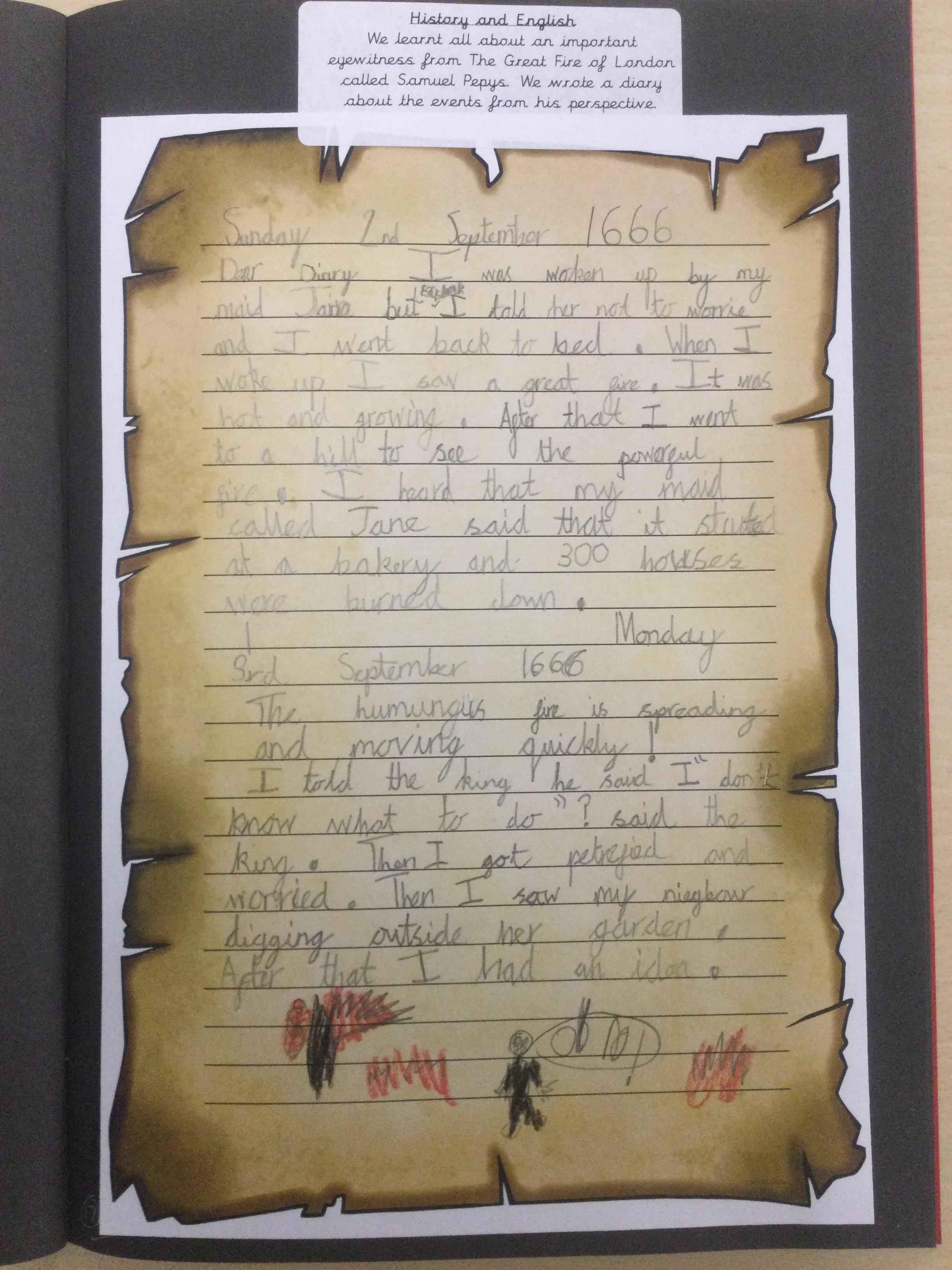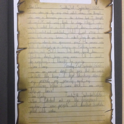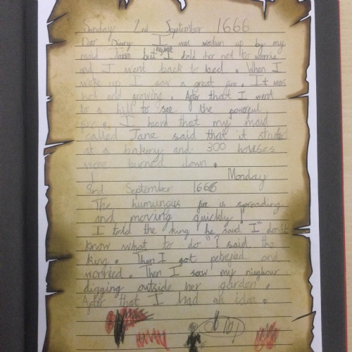 Year 2 have been writing recounts about The Great Fire of London from the perspective of Samuel Pepys. They wrote in the past tense and also used lots of descriptive language.