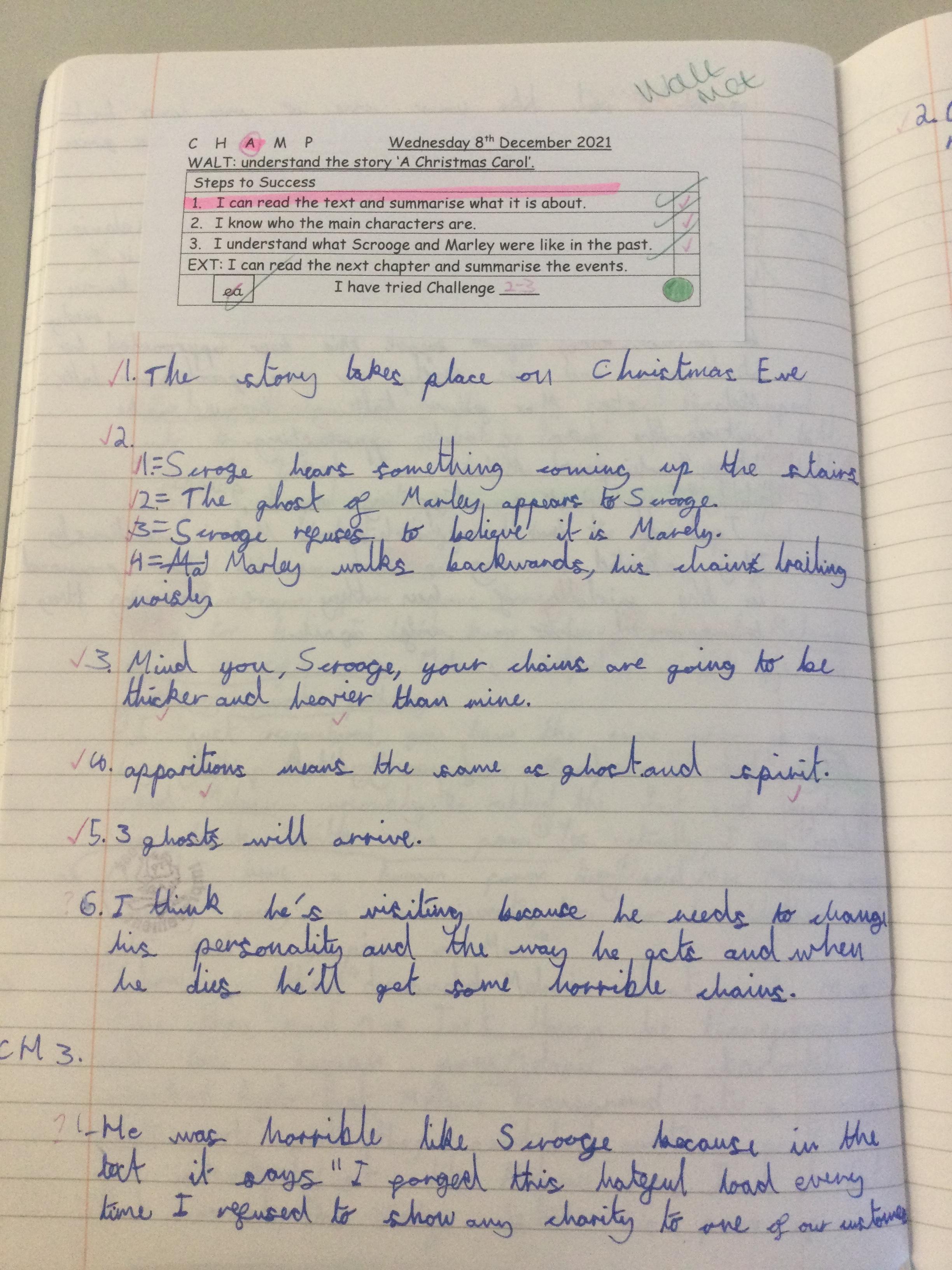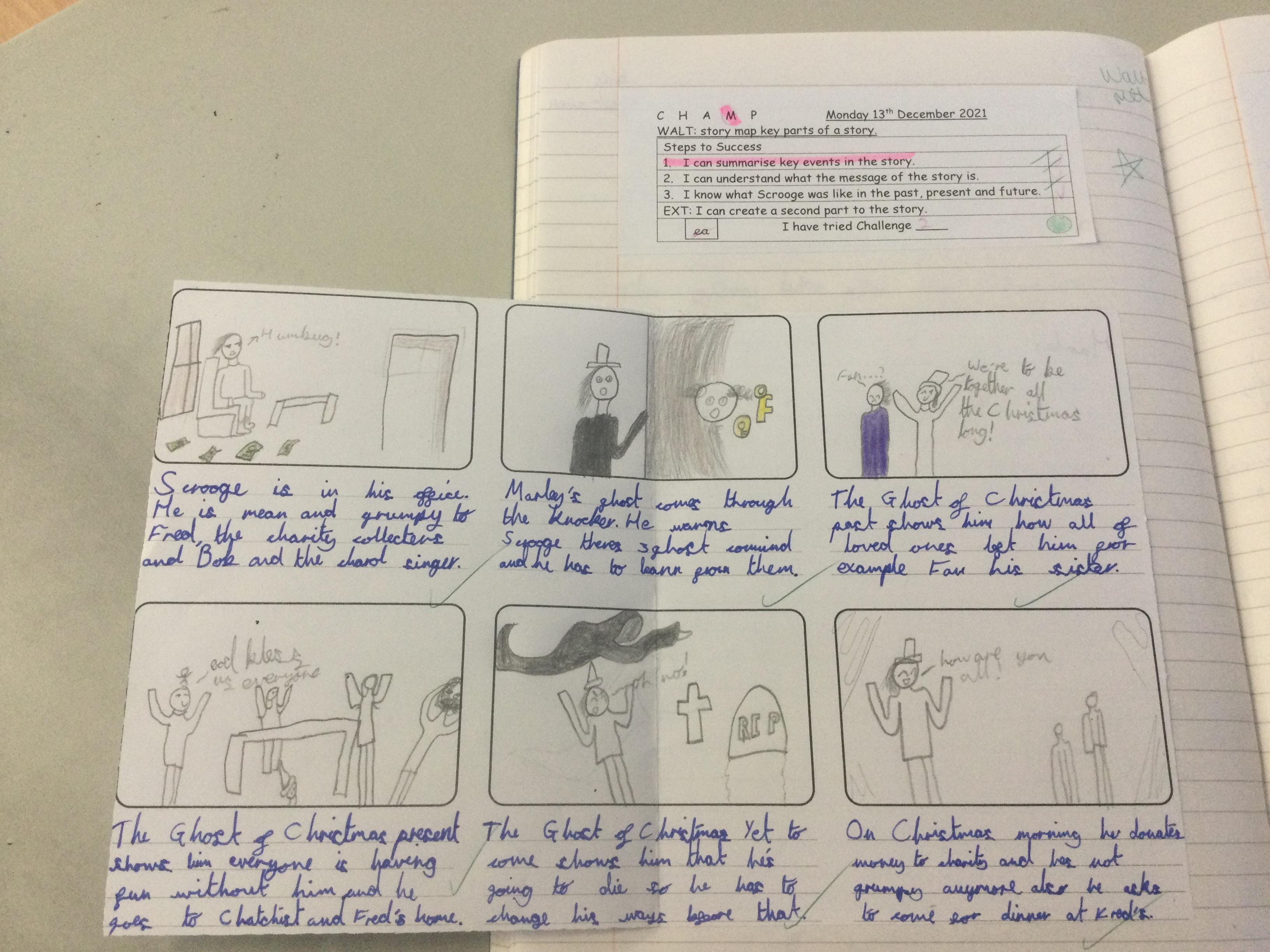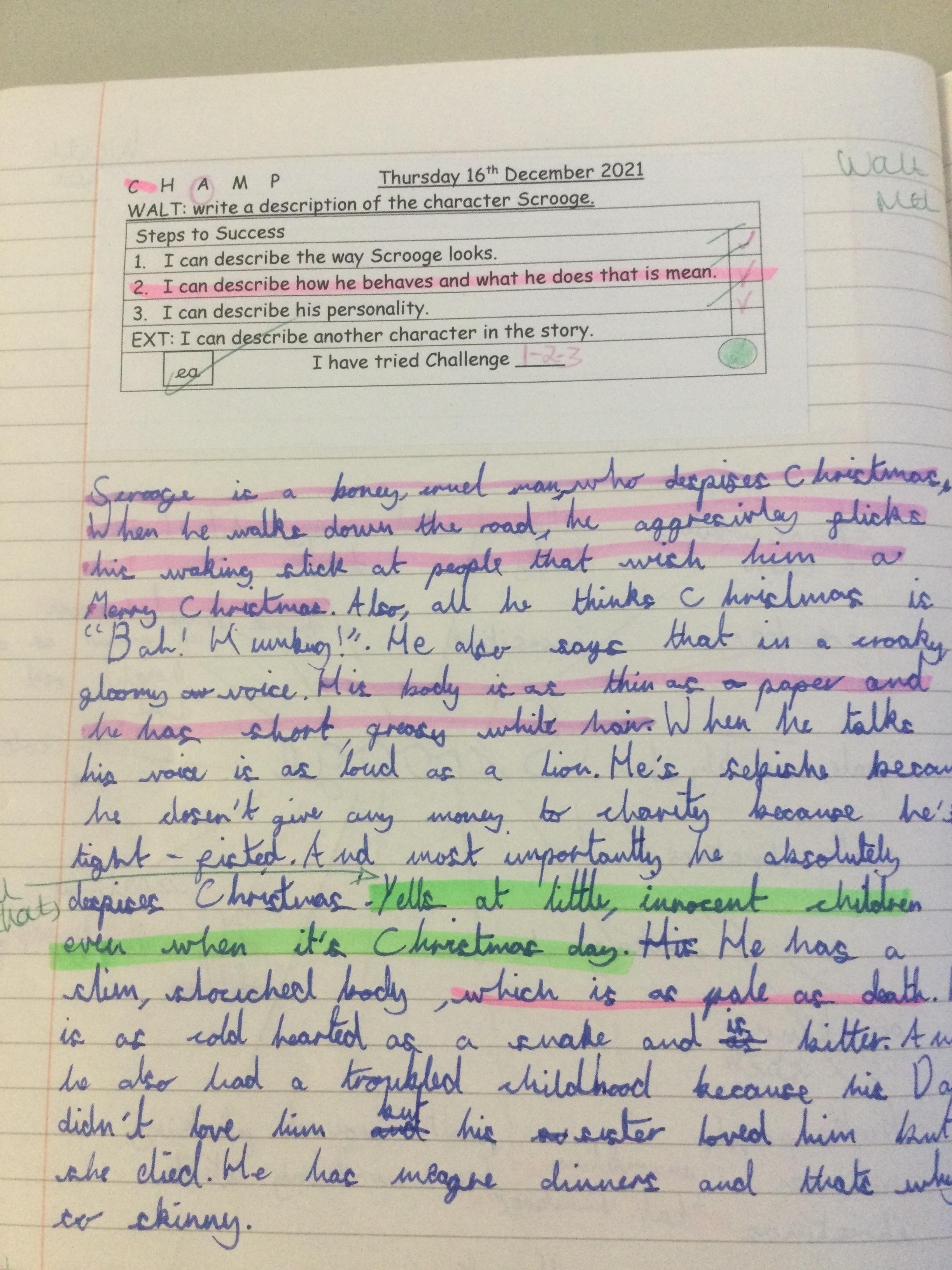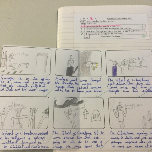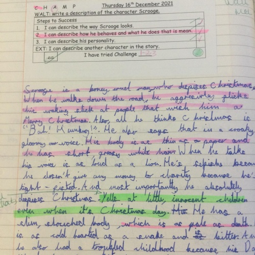 Year 5 have been studying the book ‘A Christmas Carol’ by Charles Dickens as part of their learning on fiction from our literary heritage. The class summarised the story and wrote a description of the character Scrooge.