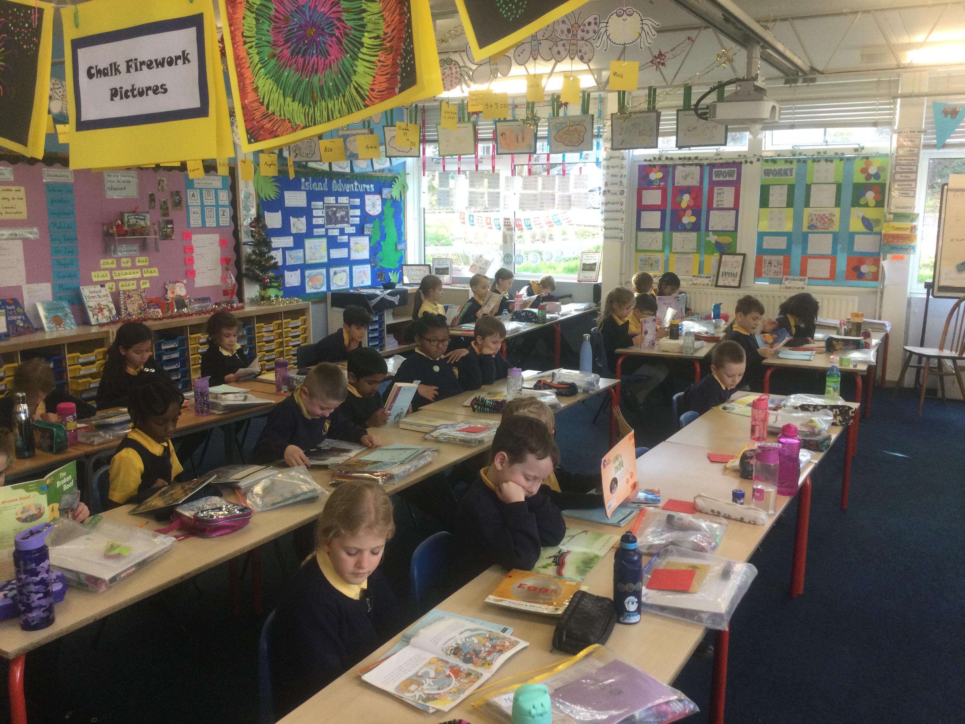 This week, the Eco-Council announced DEAR (Drop Everything And Read) by playing musical instruments around the school! All the pupils and adults stopped what they were doing and started to read. It was great fun!