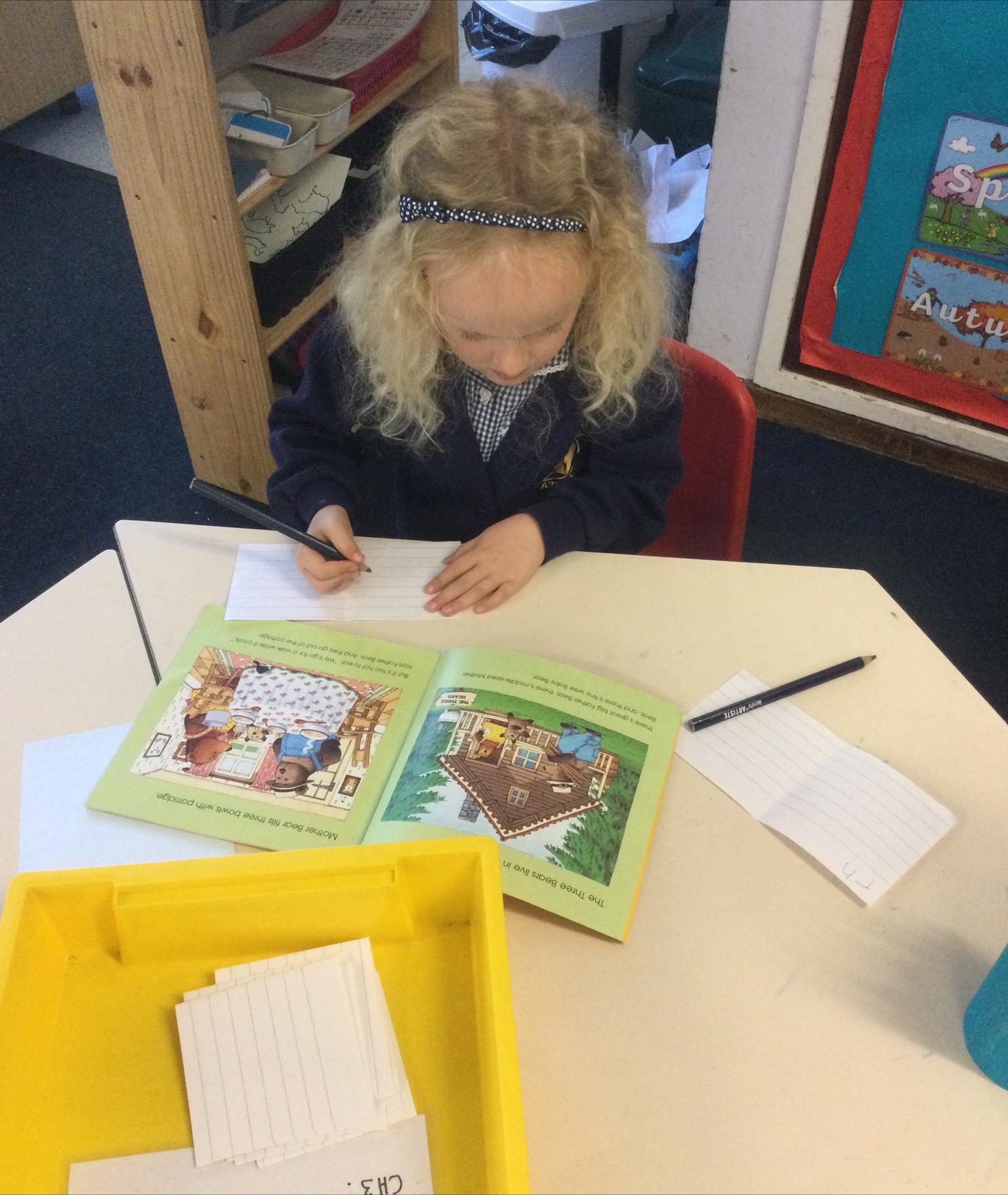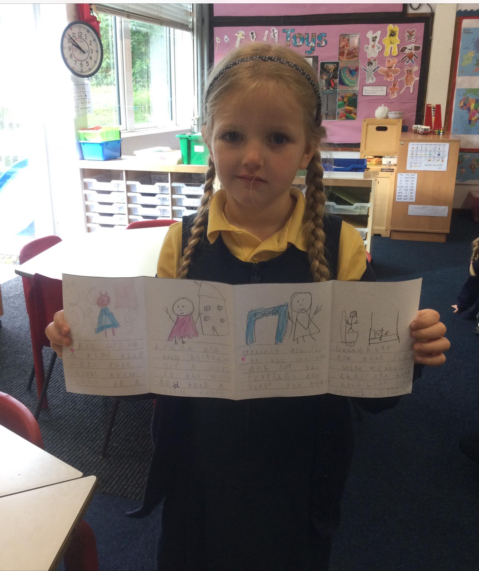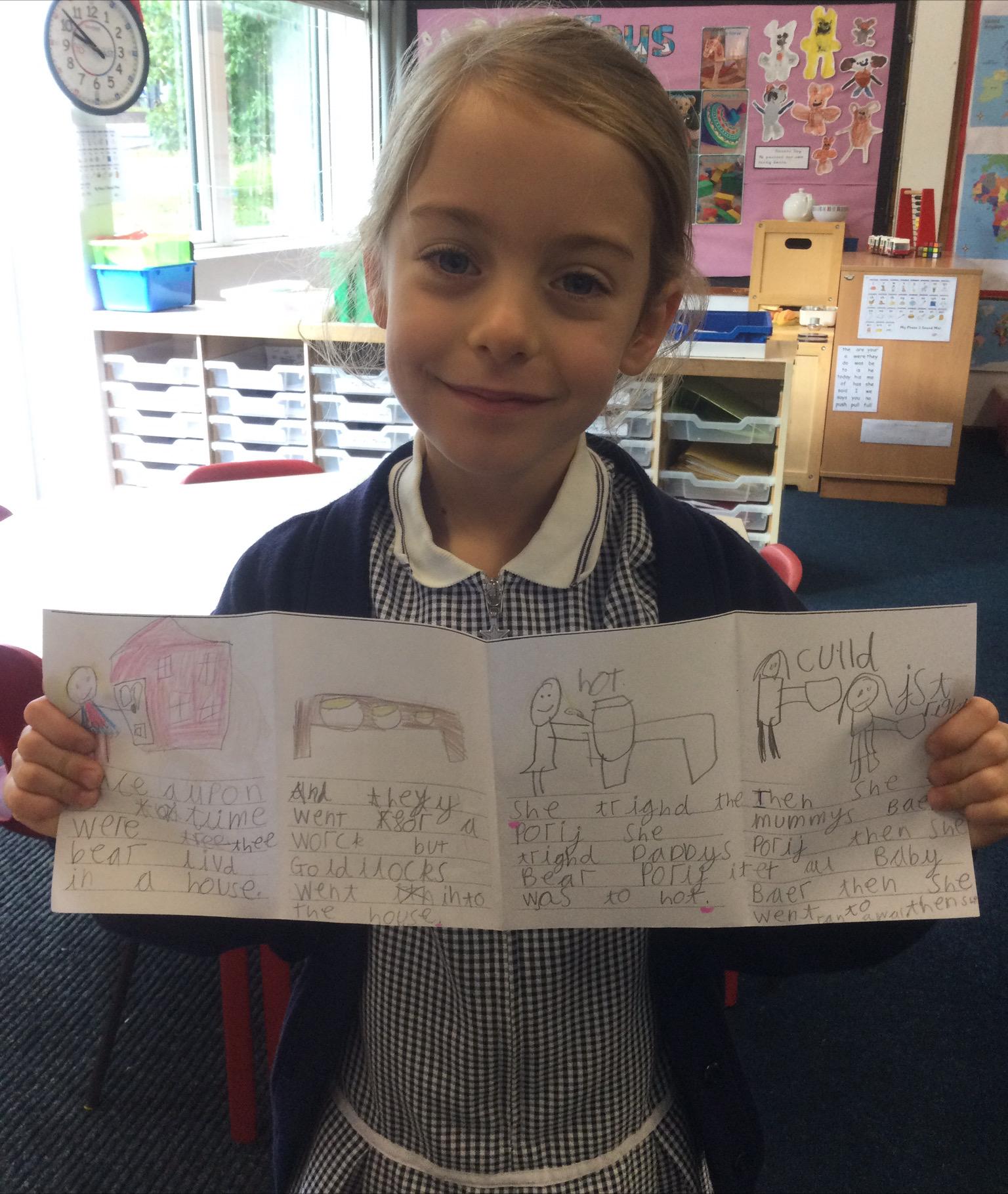 In Year 1, the pupils have been reading the story of Goldilocks and the Three Bears. Firstly, they sequenced the story and then re-wrote it using zig-zag books.