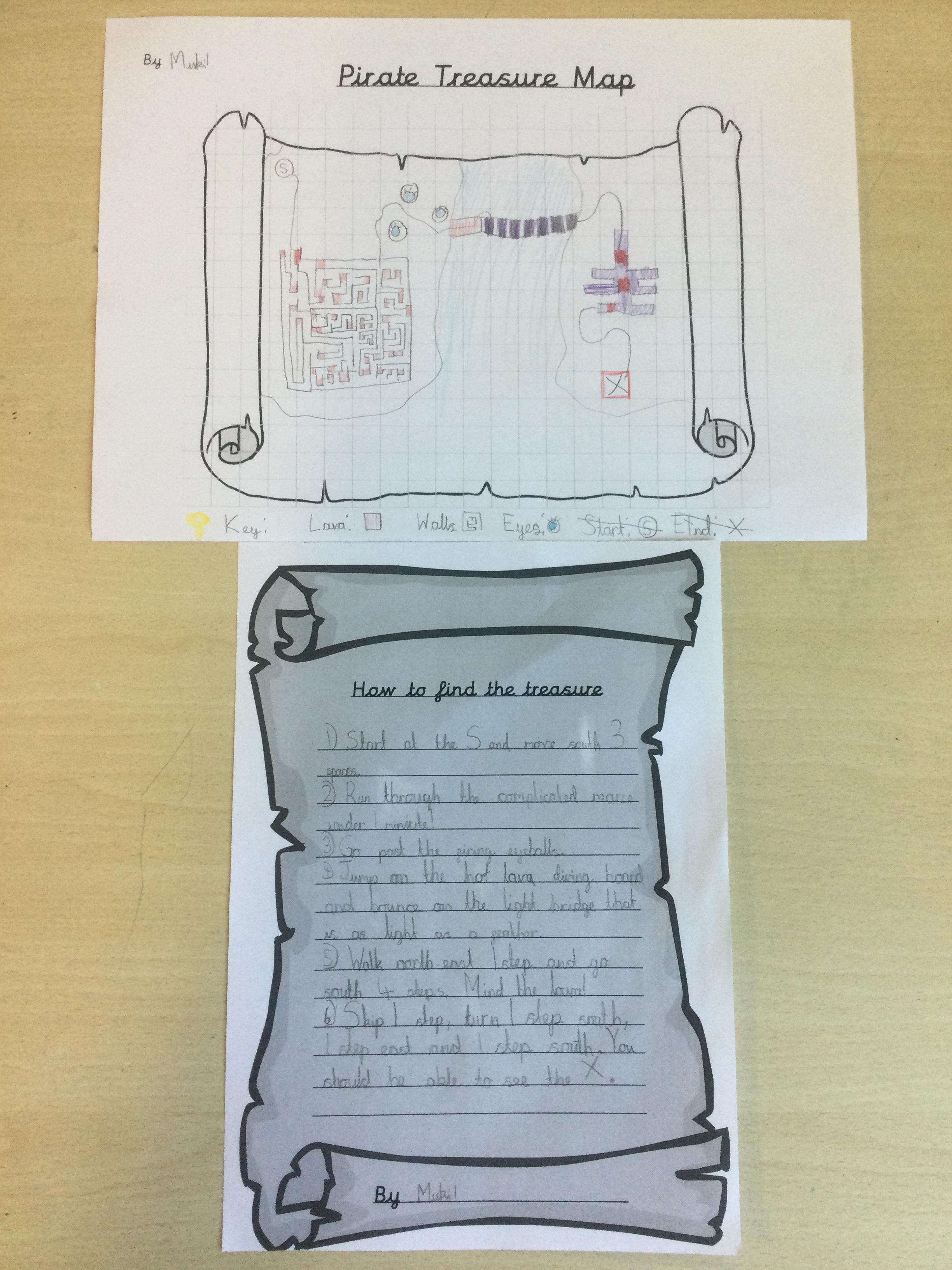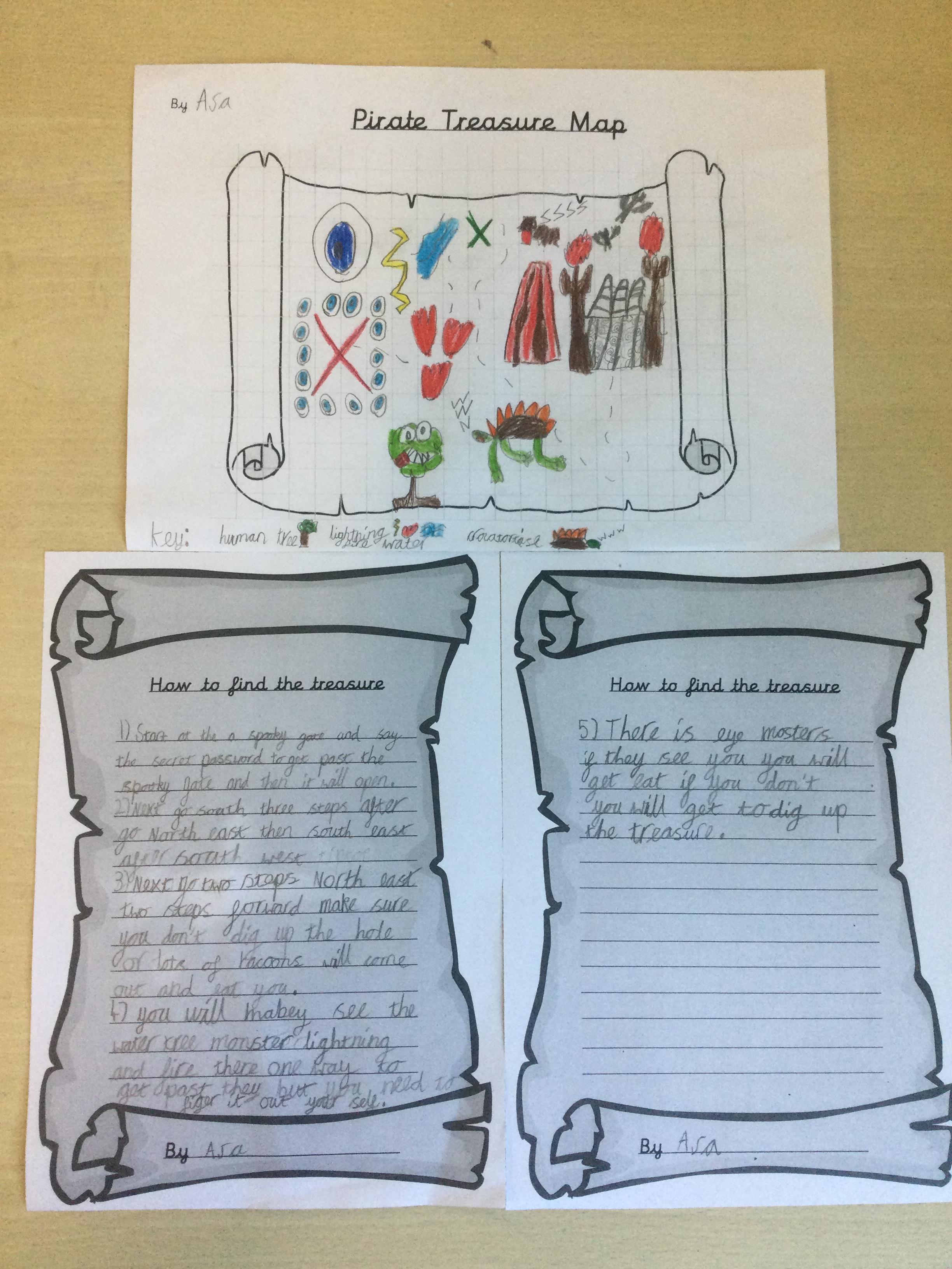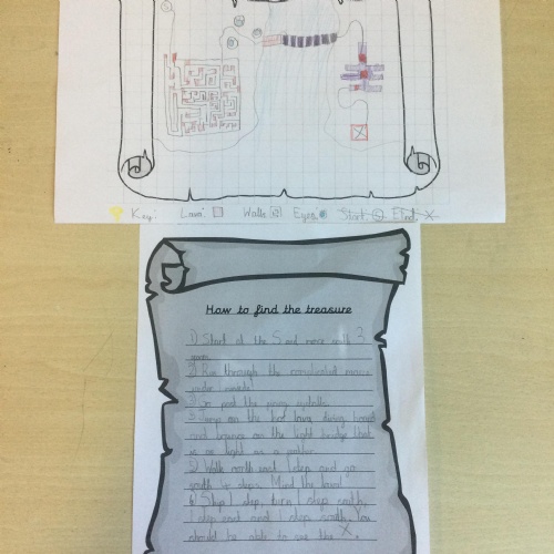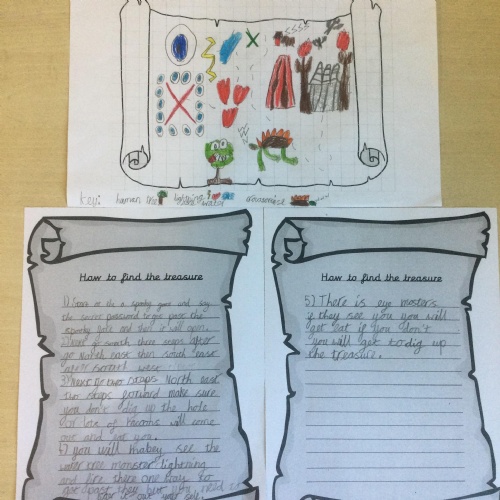 In Year 2, the pupils created treasure maps and then wrote instructions explaining how to find the treasure. They used directional language and imperative verbs in their sentences. After their exciting trip to Hudnall Park, they wrote recounts all about the day.