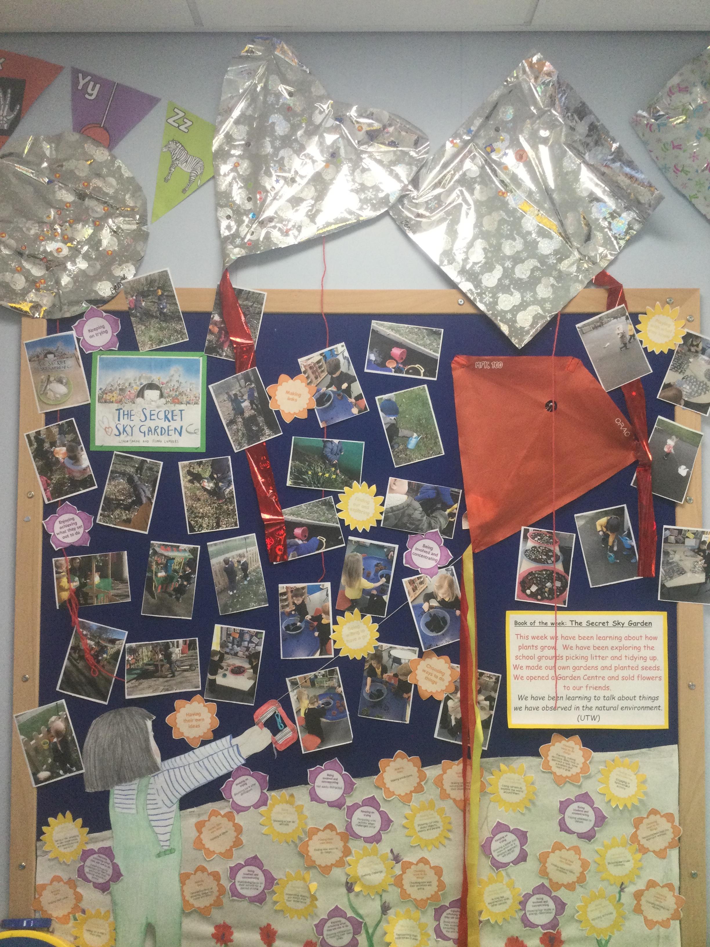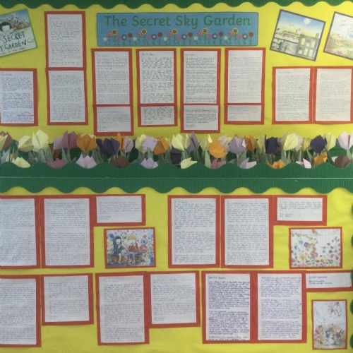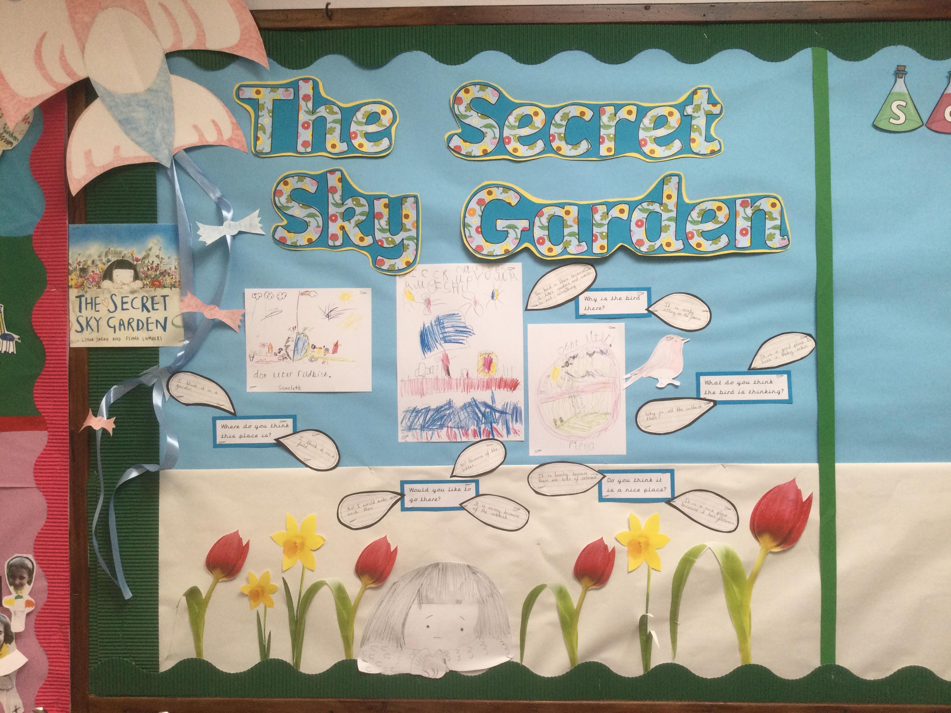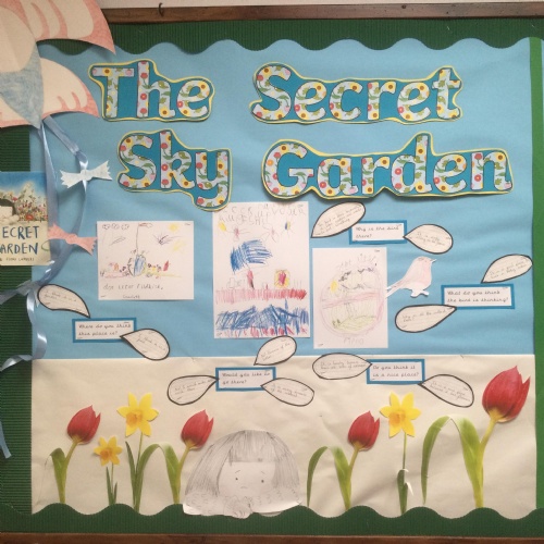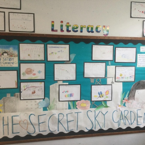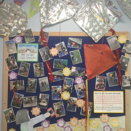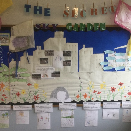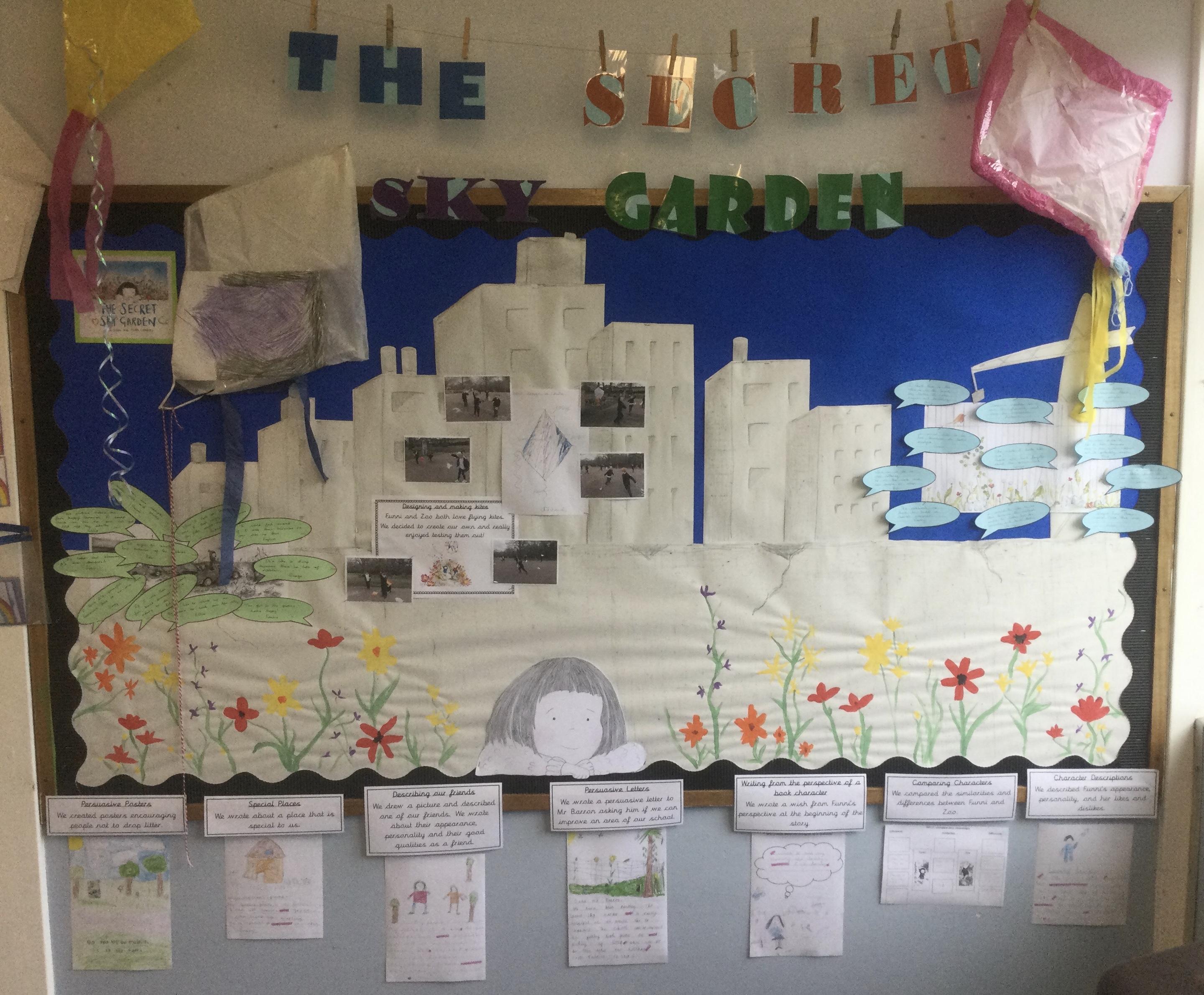 'The Secret Sky Garden' by Linda Sarah and Fiona Lumbers has inspired lots of cross-curricular learning throughout the whole school, including persuasive posters, character descriptions, persuasive letters, outdoor gardening projects, creating kites, and much more!