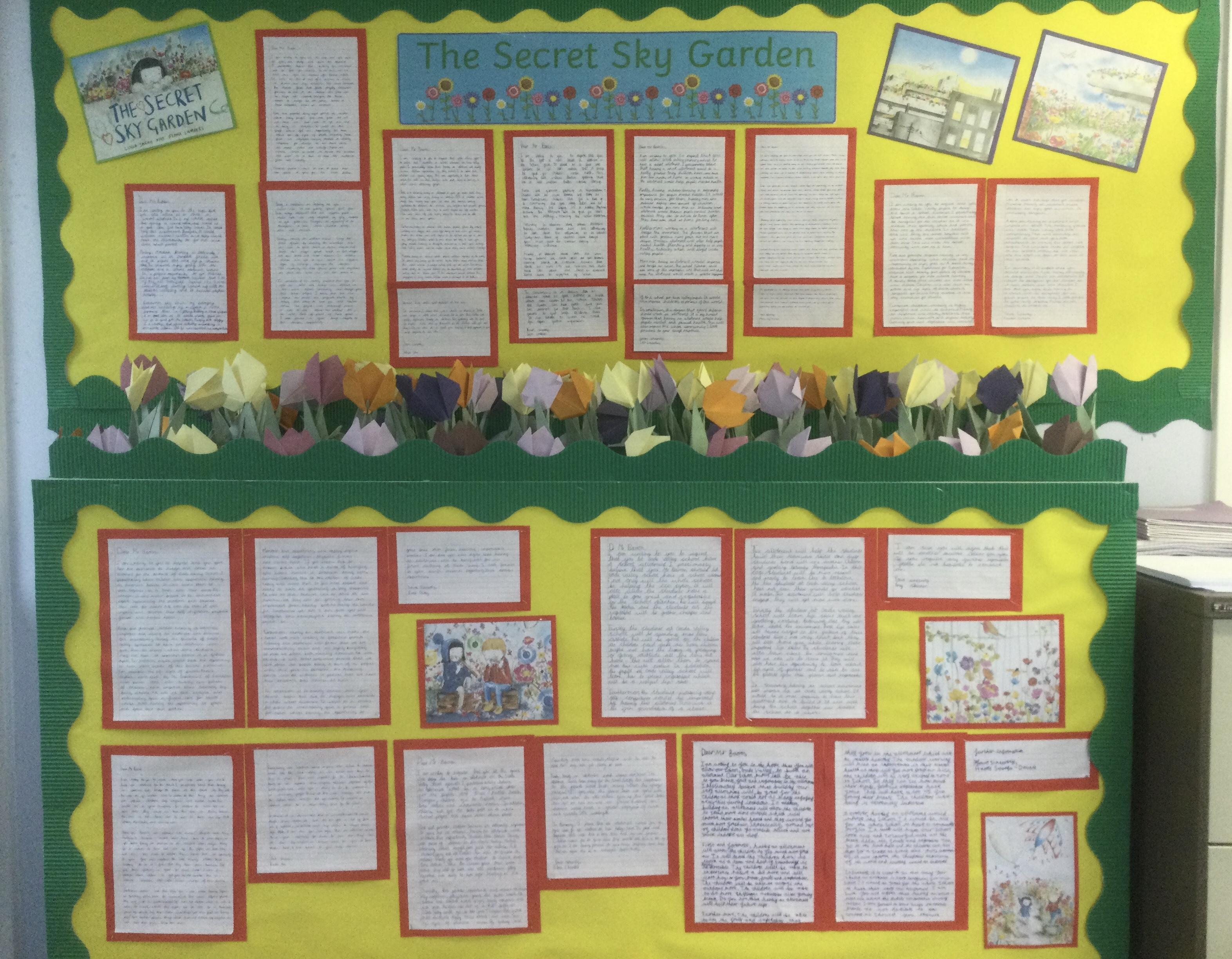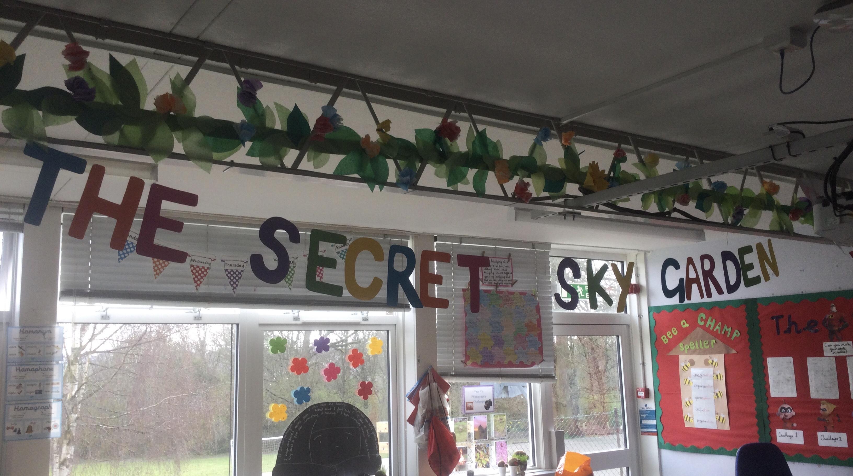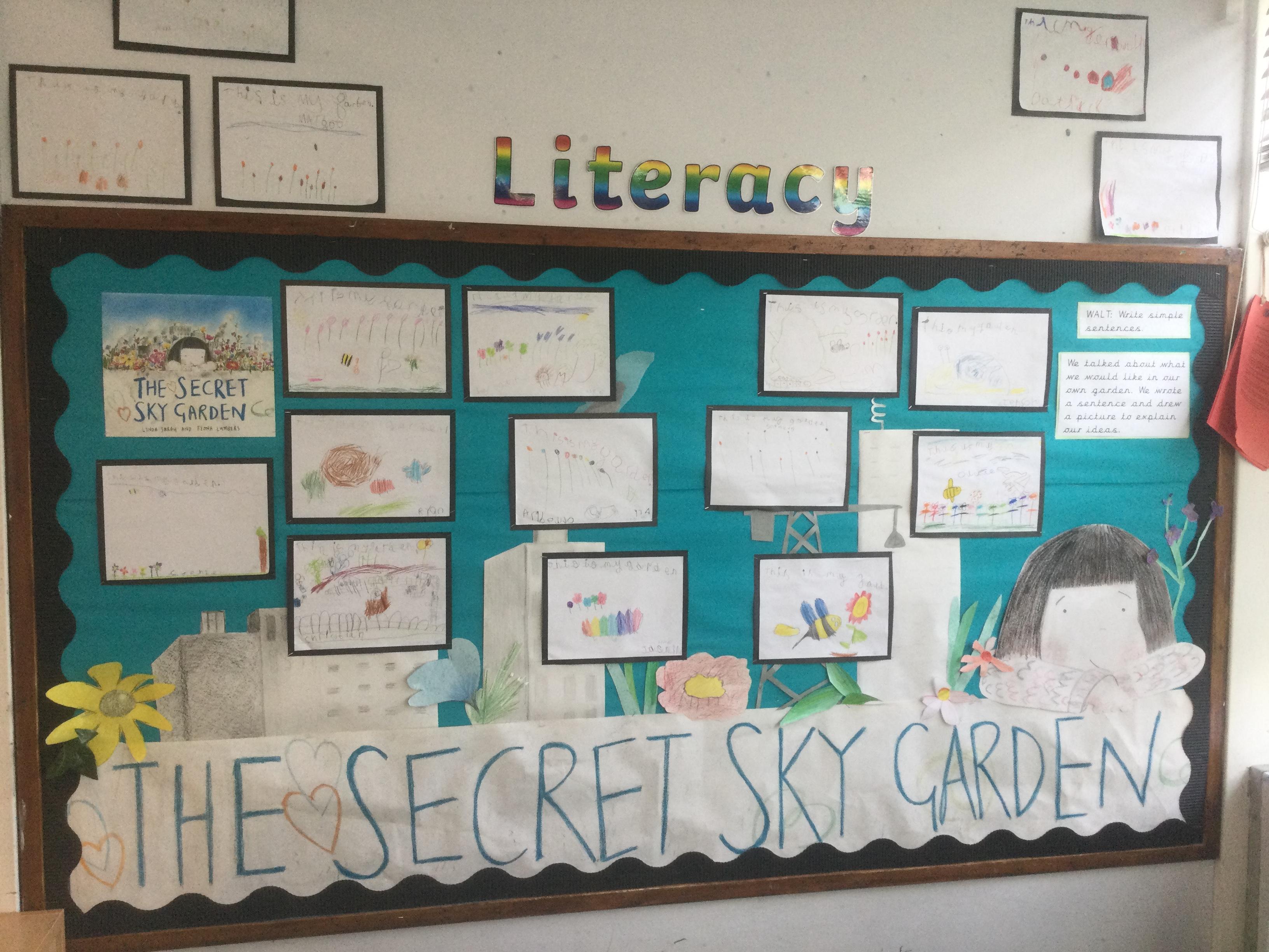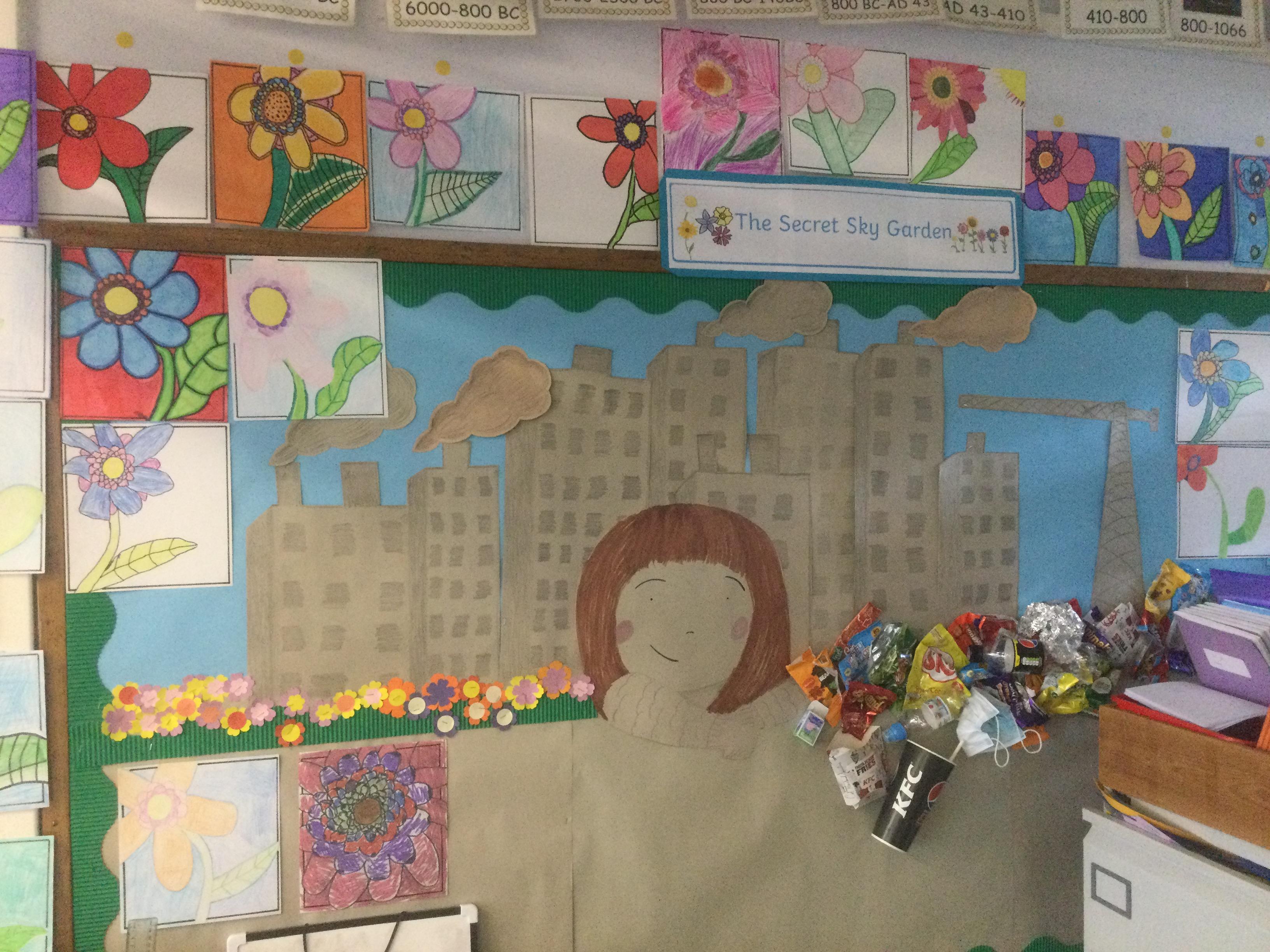 'The Secret Sky Garden' by Linda Sarah and Fiona Lumbers has inspired lots of cross-curricular learning throughout the whole school, including persuasive posters, character descriptions, persuasive letters, outdoor gardening projects, creating kites, and much more!