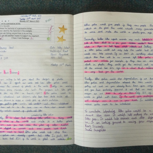 In Year 6, the pupils have written persuasive letters to Mr Barron about why school should not be opened on a Saturday. The Year 6 class was particularly keen on school not being opened for an extra day each week!