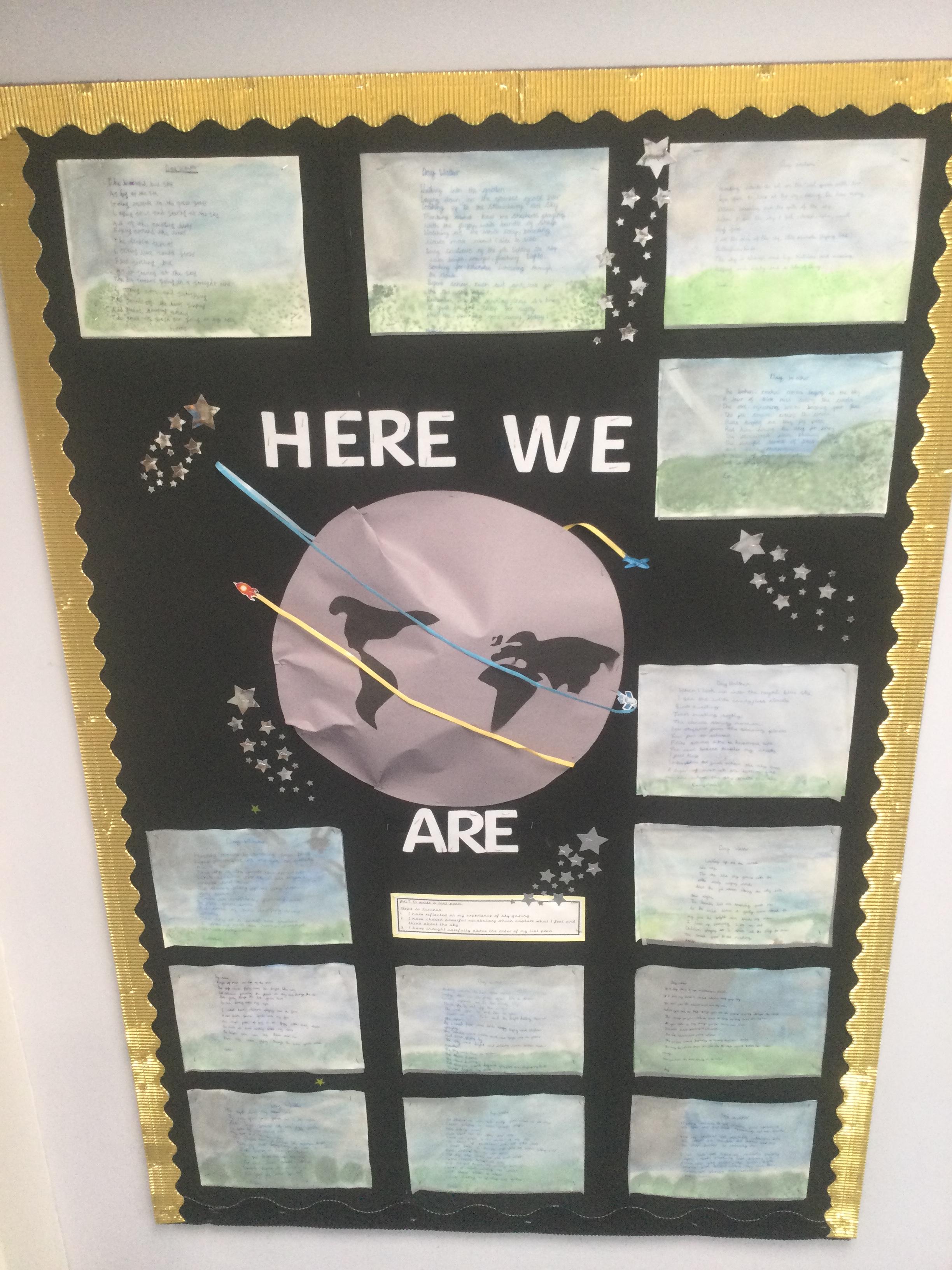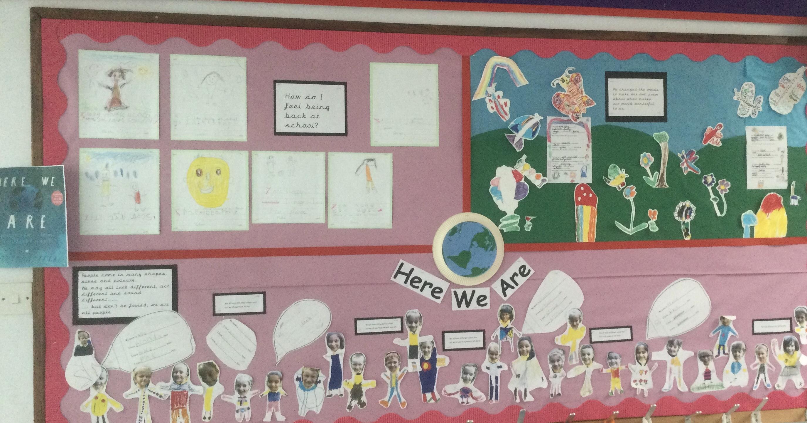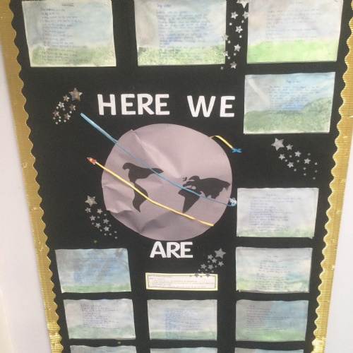 We have all thoroughly enjoyed reading and exploring the book 'Here We Are' by Oliver Jeffers. Here are some of the wonderful displays and children's work inspired by the book.