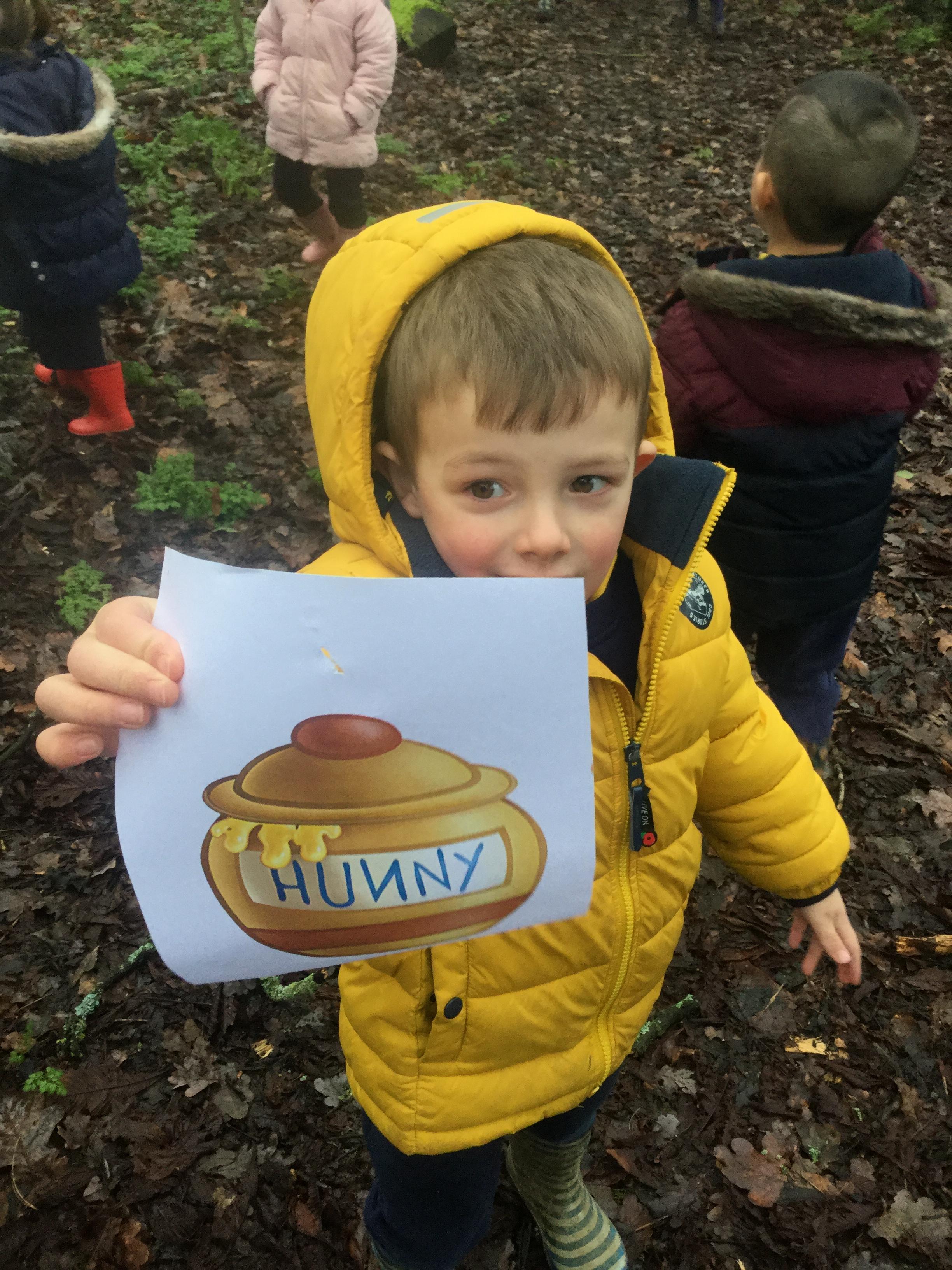 The children in the Nursery celebrated Winnie the Pooh Day.  They listened to stories, investigated honey and went looking for Winnie the Pooh's friends in the Hundred Acre Wood.