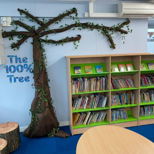 To celebrate books and reading, we organise many events throughout the school year. Some of these events include Roald Dahl Day, Book Week, World Book Day, Storytelling Week, drama workshops led by external companies, author visits and an annual summer holiday reading competition. We organise regular Buddy Reading sessions where classes are paired up from across the school to read together. In addition to this, we have surprise Drop Everything and Read (DEAR) sessions, which are announced by our Eco Council playing musical instruments around the school. Every year, the school enjoys a visit from the Scholastic Book Fair, which provides pupils with opportunities to discover new authors.