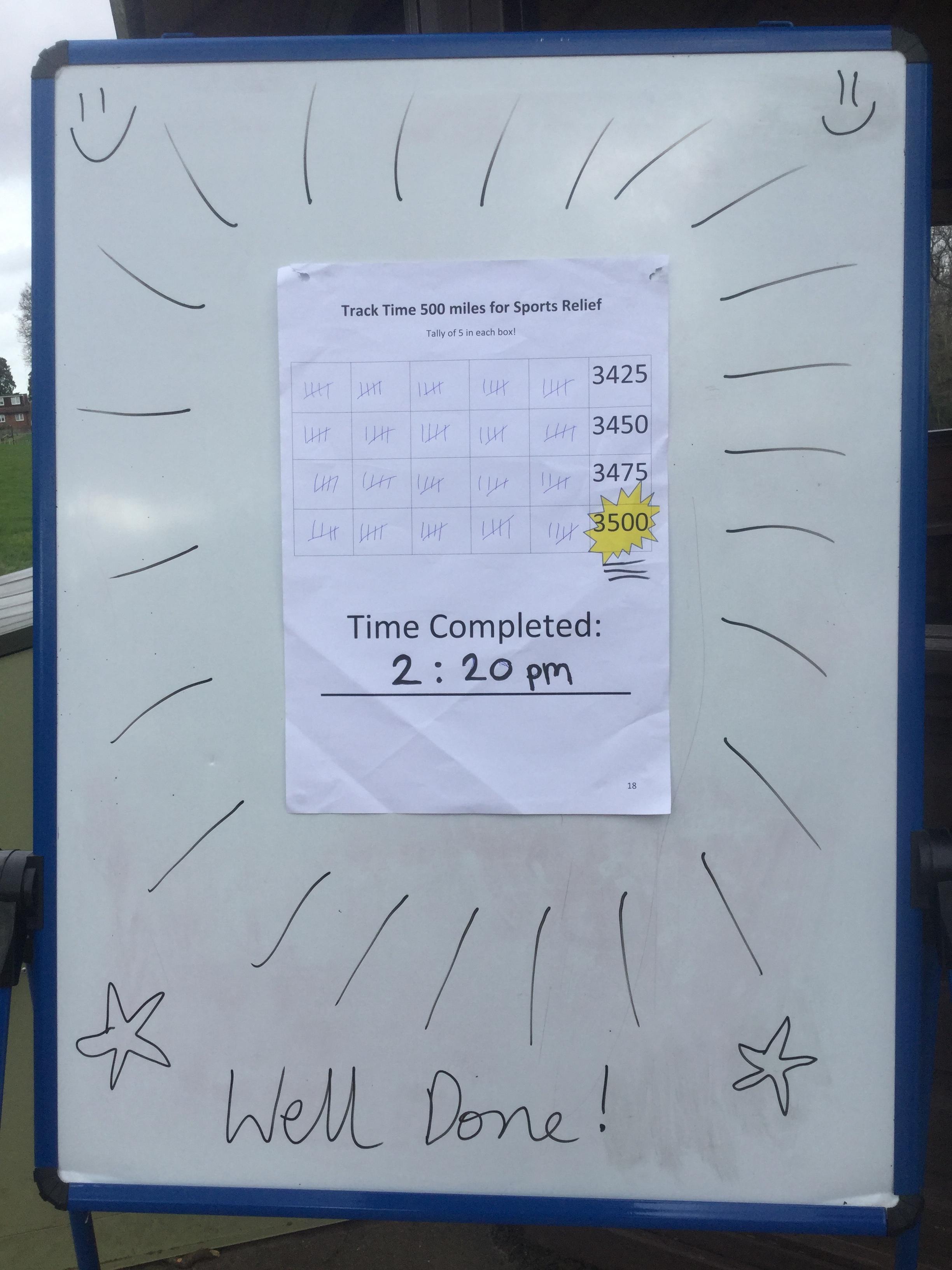 A massive congratulations and thank you to all pupils, staff and parents who contributed to the 500 miles for Sports Relief. We completed the 3500th lap at 2:45pm!!
