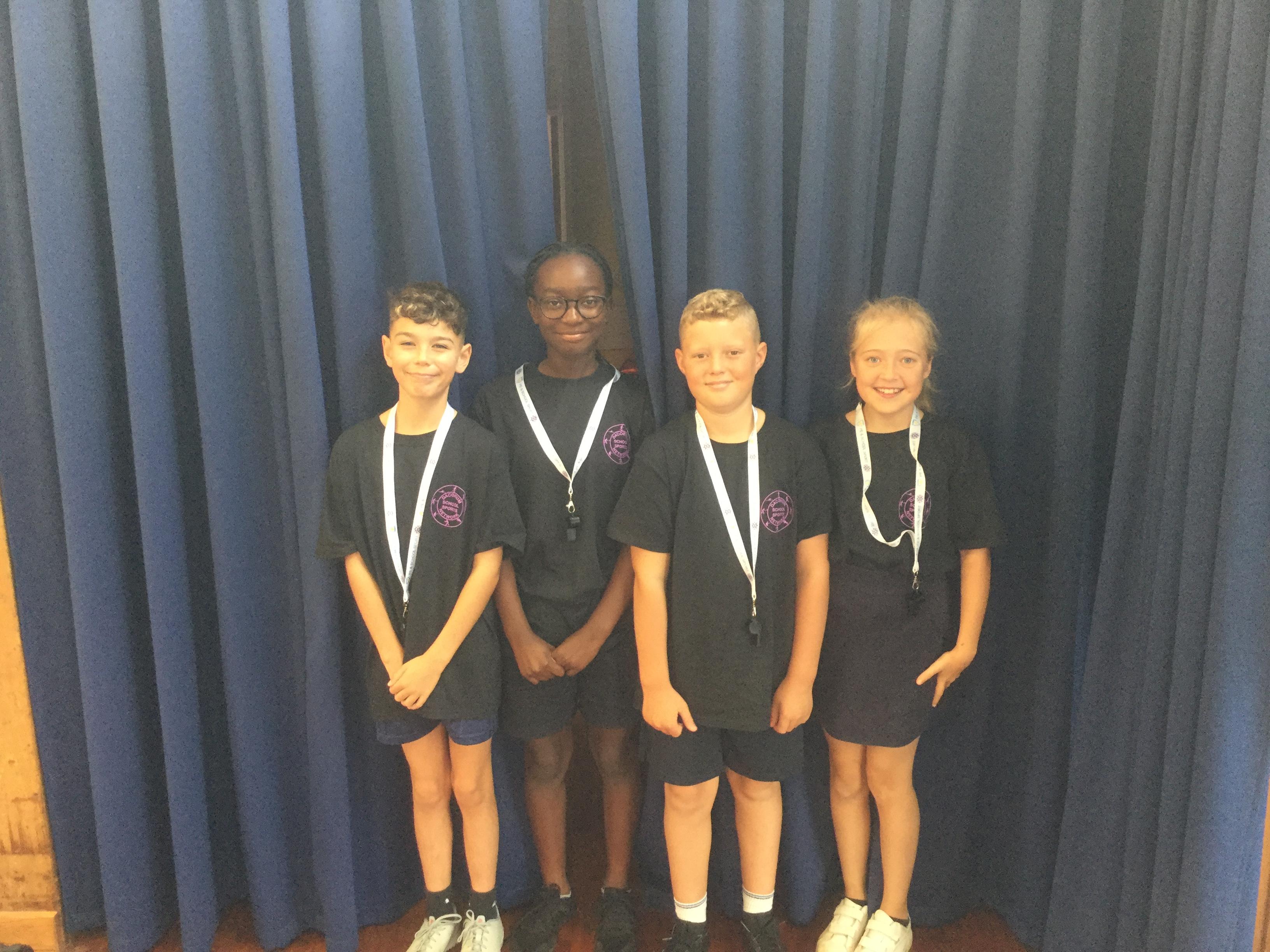 This year our new sports leaders are Isla, Liam, Megan and Oliver. They will be helping to run sports clubs as well as sorting out the PE notice board and PE cupboard/equipment.