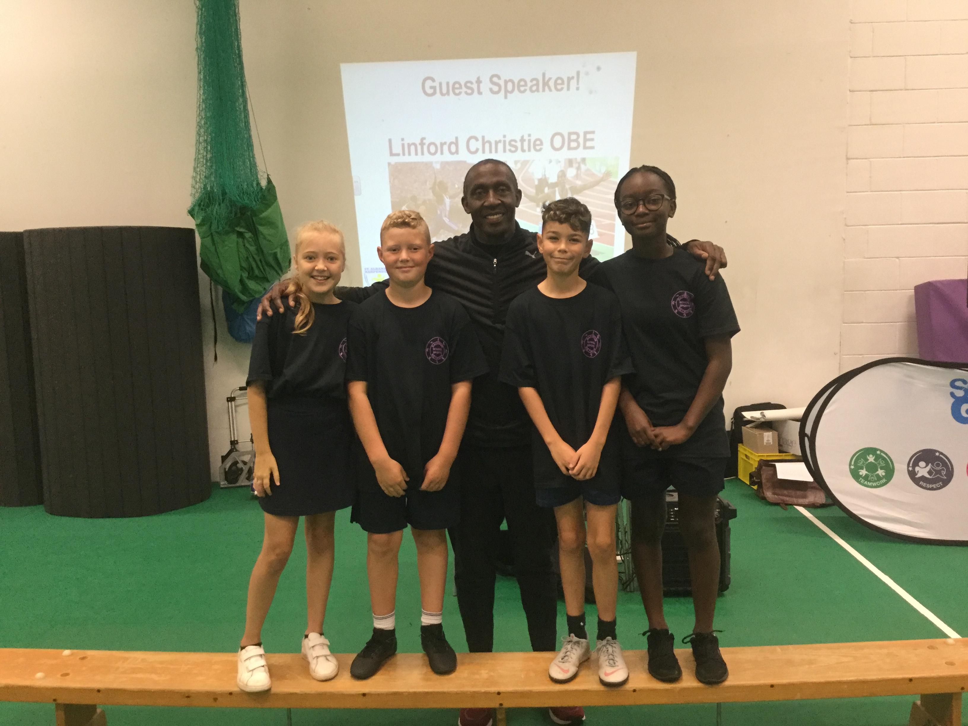 Sports Ambassadors. On Tuesday 1st October they took part in a training day at Hatfield Uni learning how to be a good leader. They also met Linford Christie!